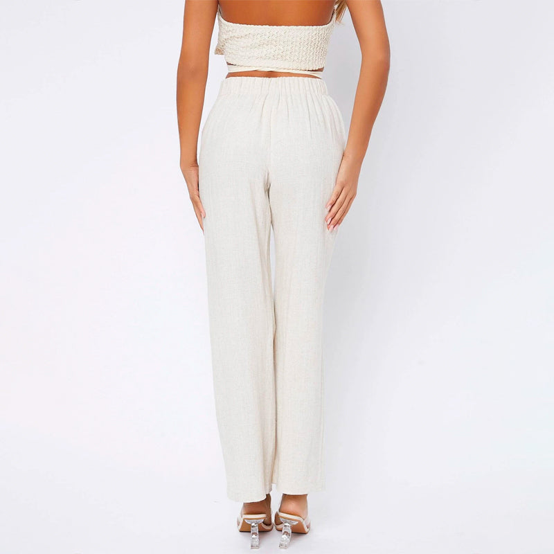 Elastic Waist Wide Leg Cargo Pants are the perfect choice for a casual outing or weekday brunch, this pair of trousers features a high waist and side pockets. It features a sleek silhouette that flatters every body type and gives you movement in all of your moves. The buttons and zipper front makes them perfect for even fancy outings.