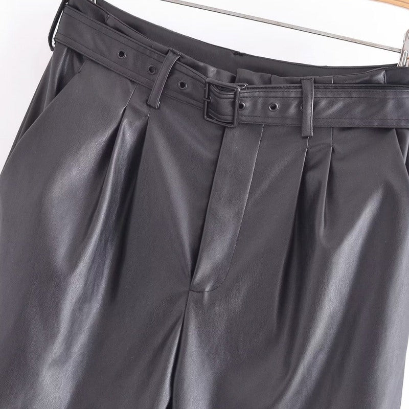 Faux Leather High Waist Pants For Women