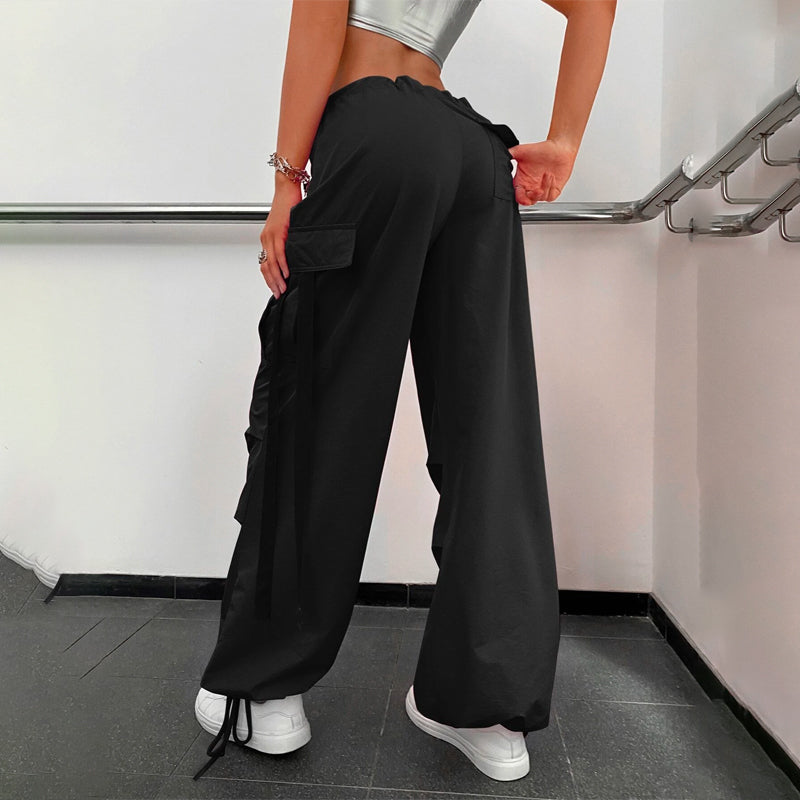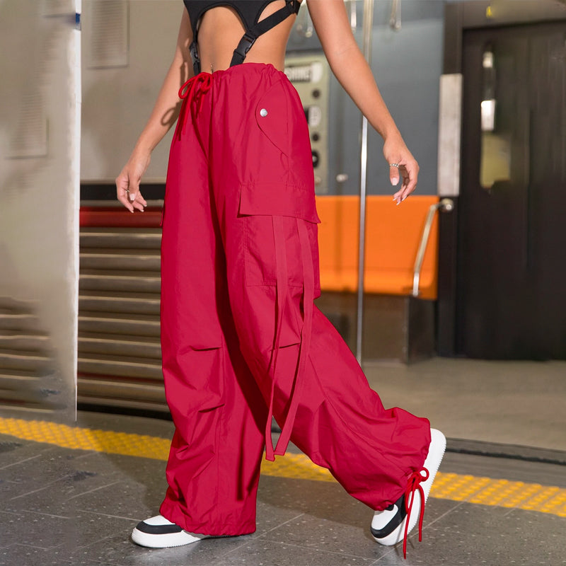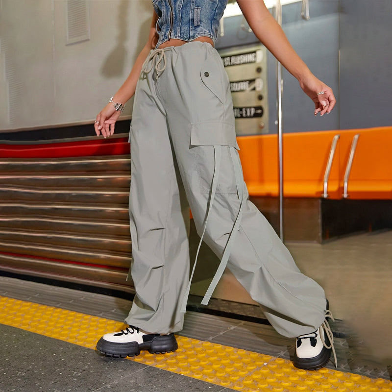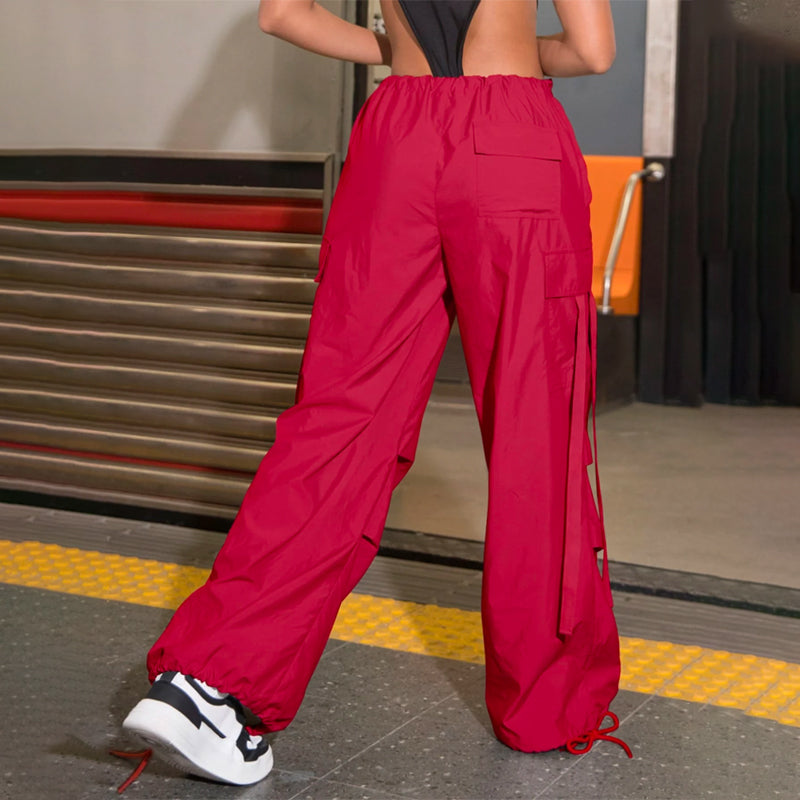Flap Pocket Drawstring Hem Cargo Parachute Pants