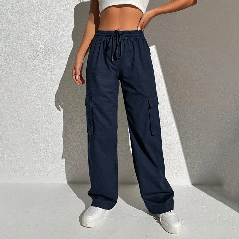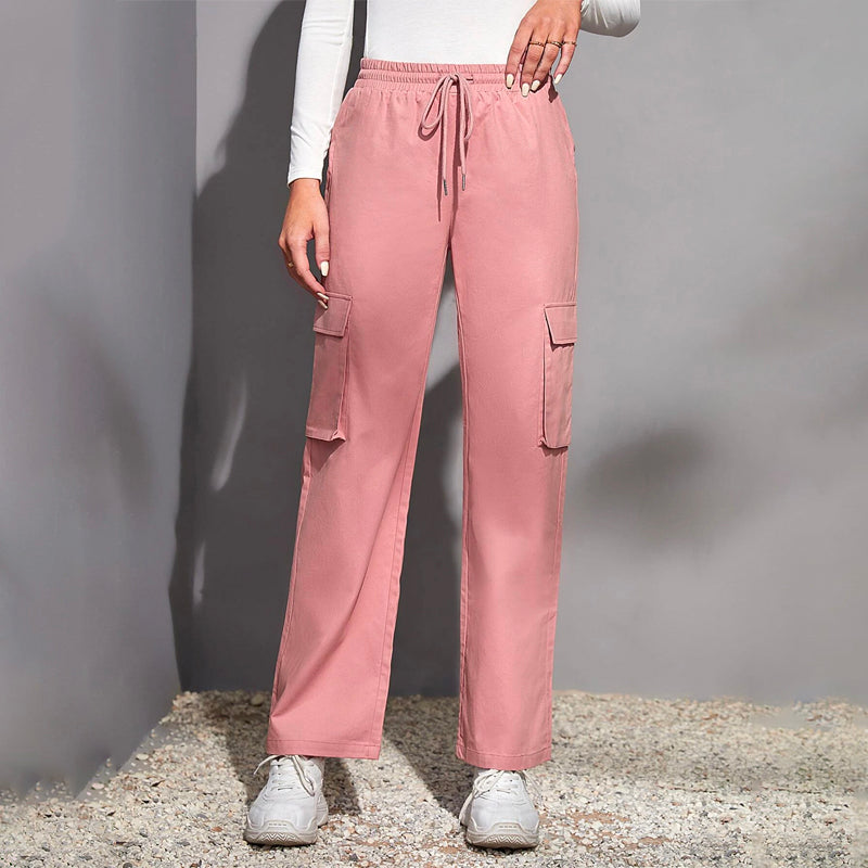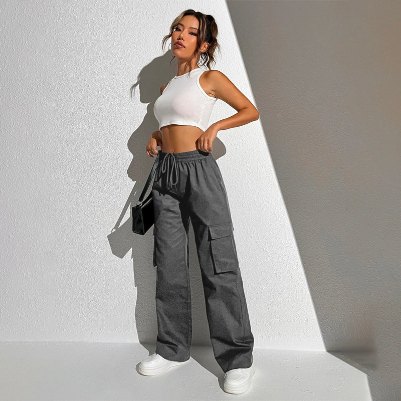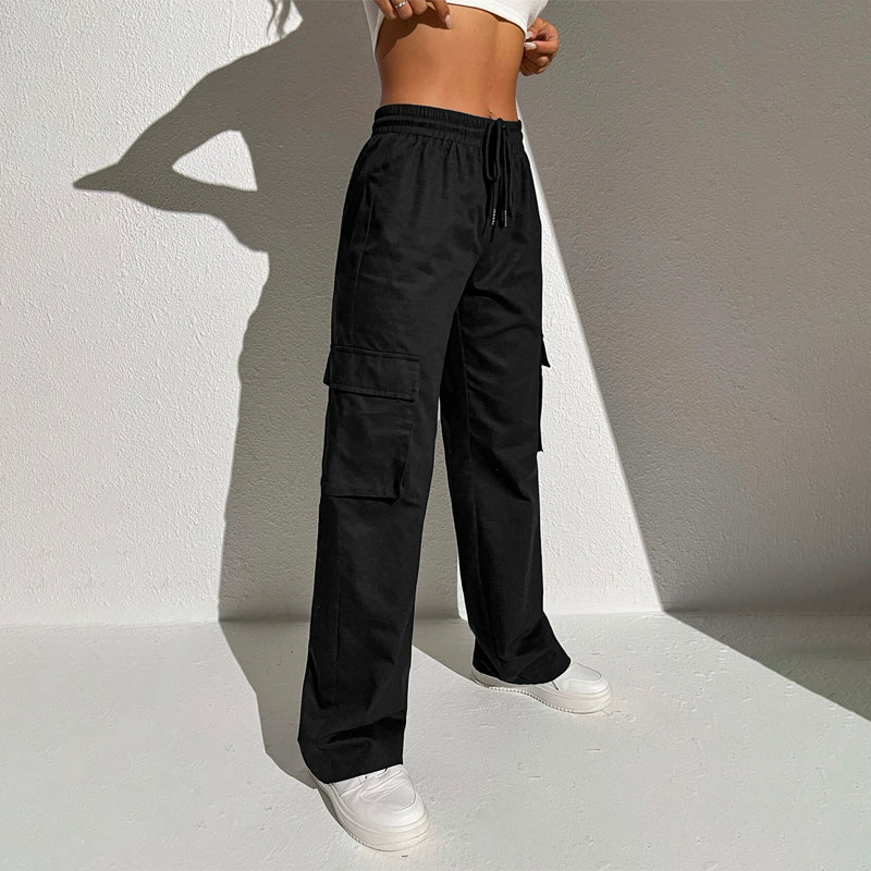 Flap Pocket Drawstring Waist Cargo Pants