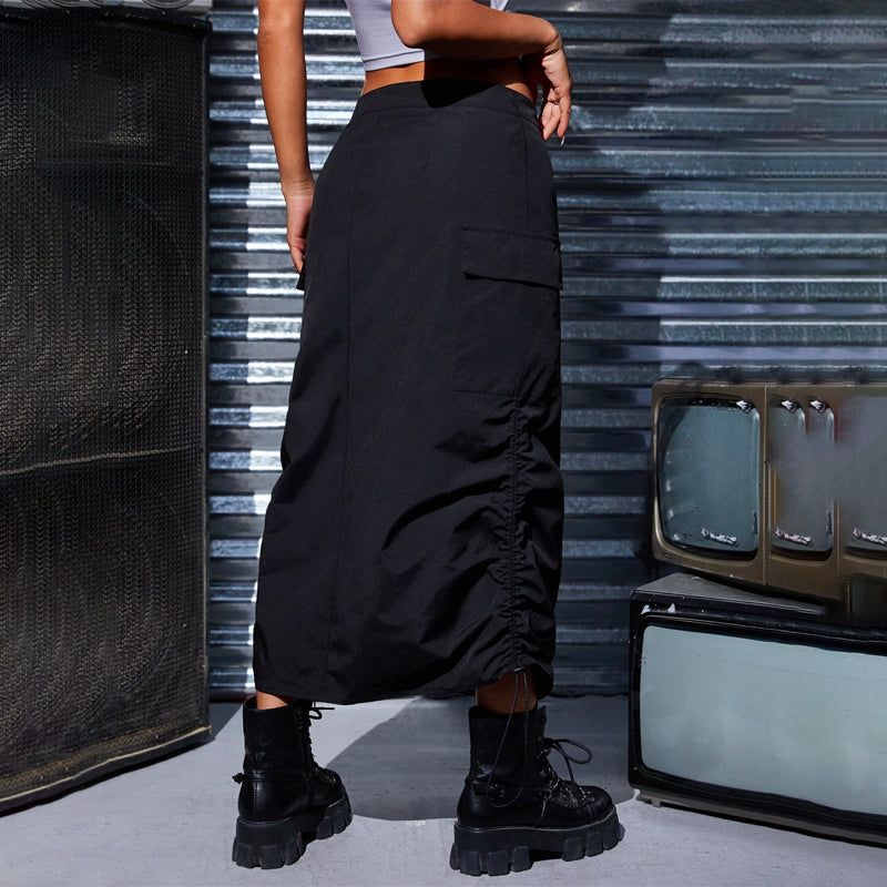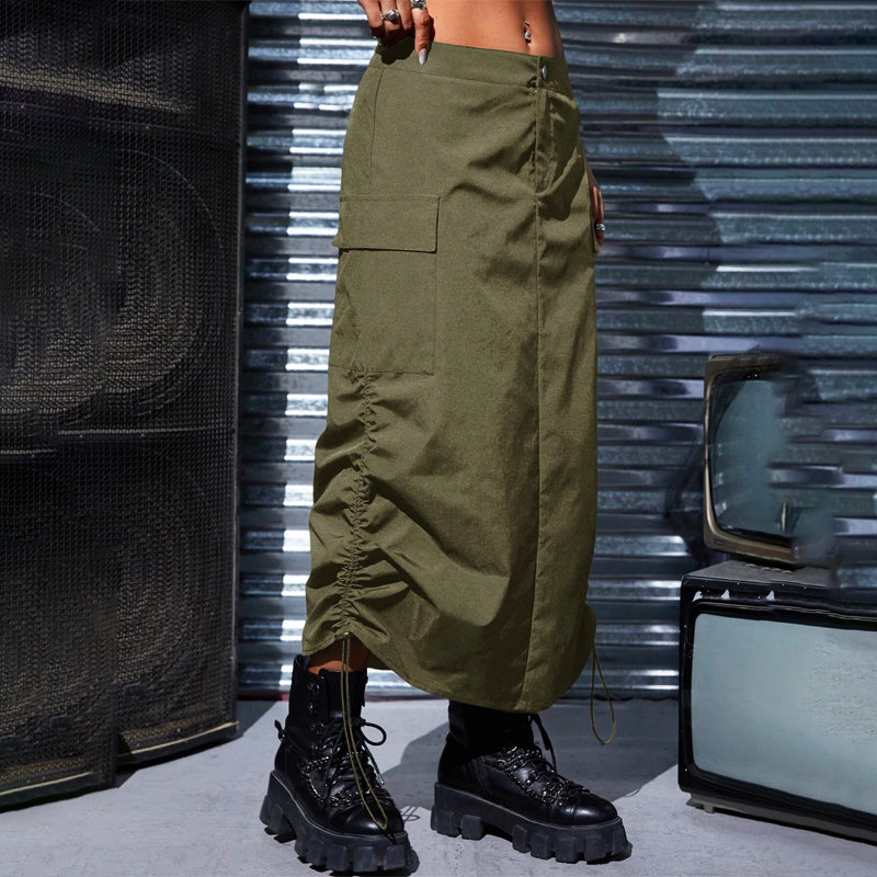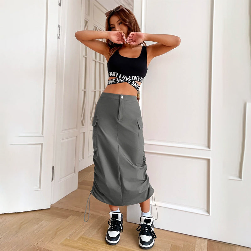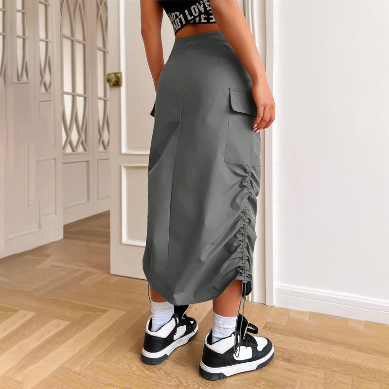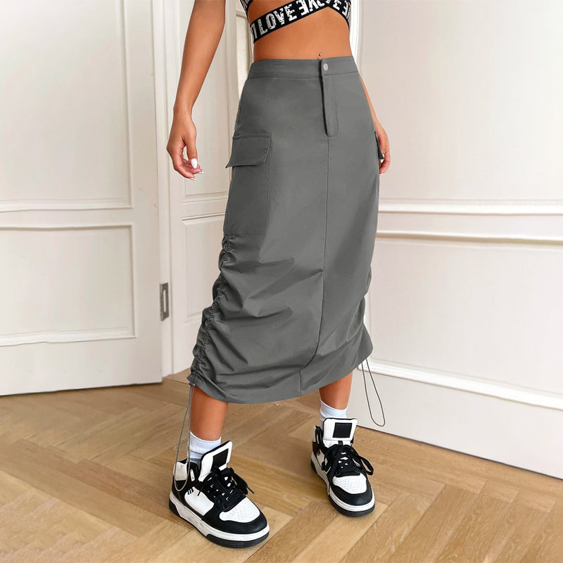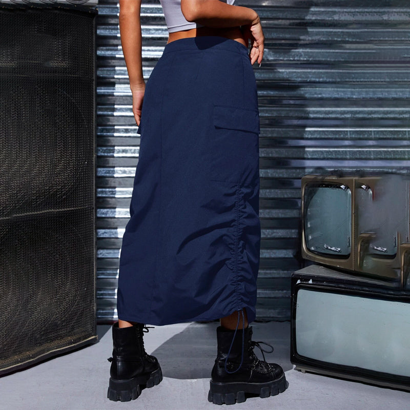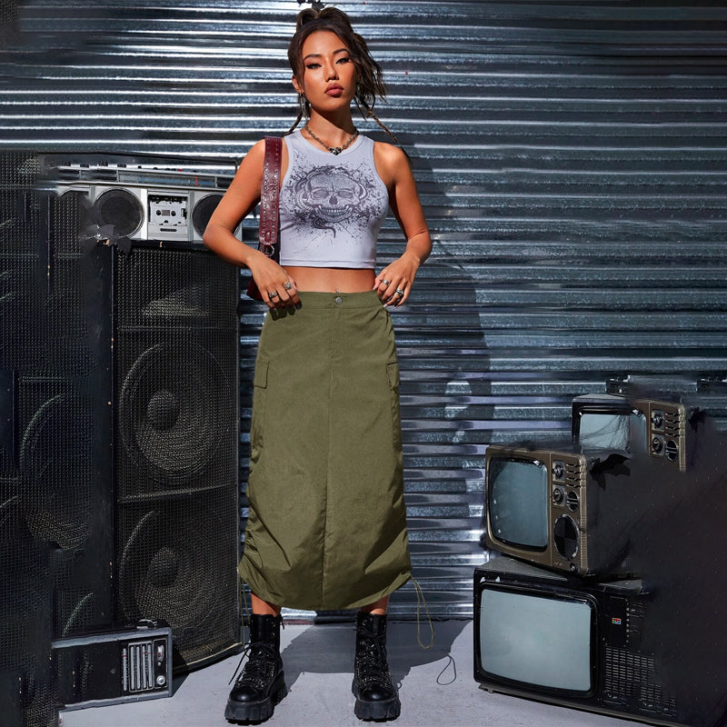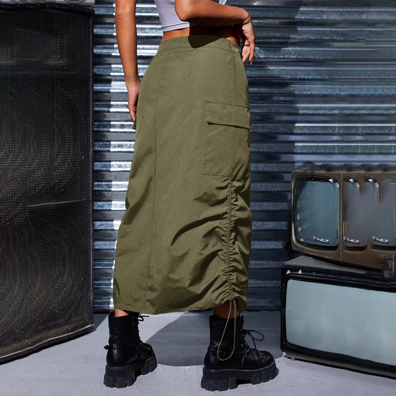 Flap Pocket Drawstring Waist Cargo Skirt