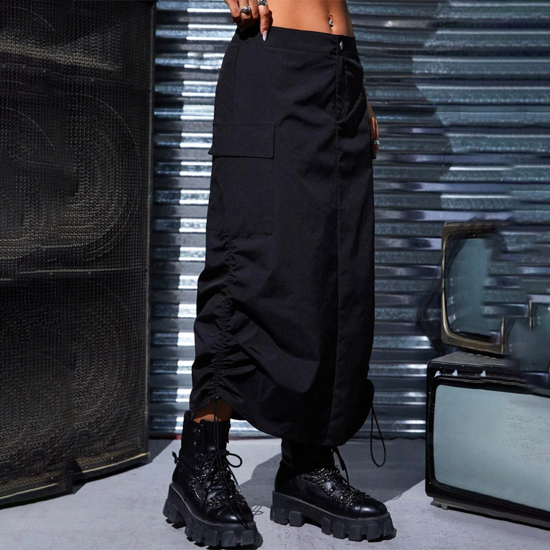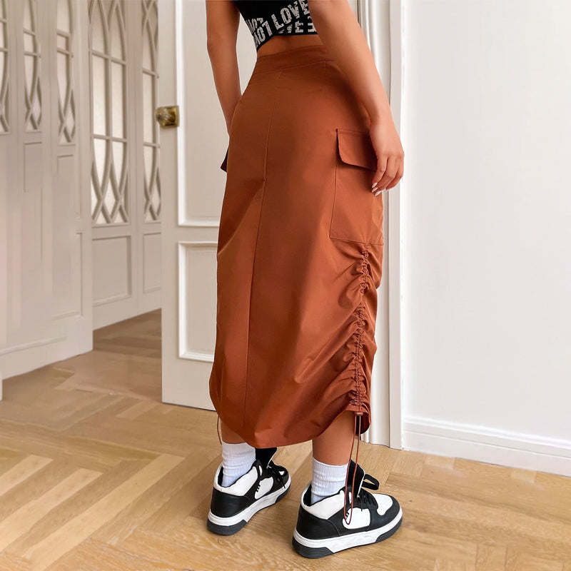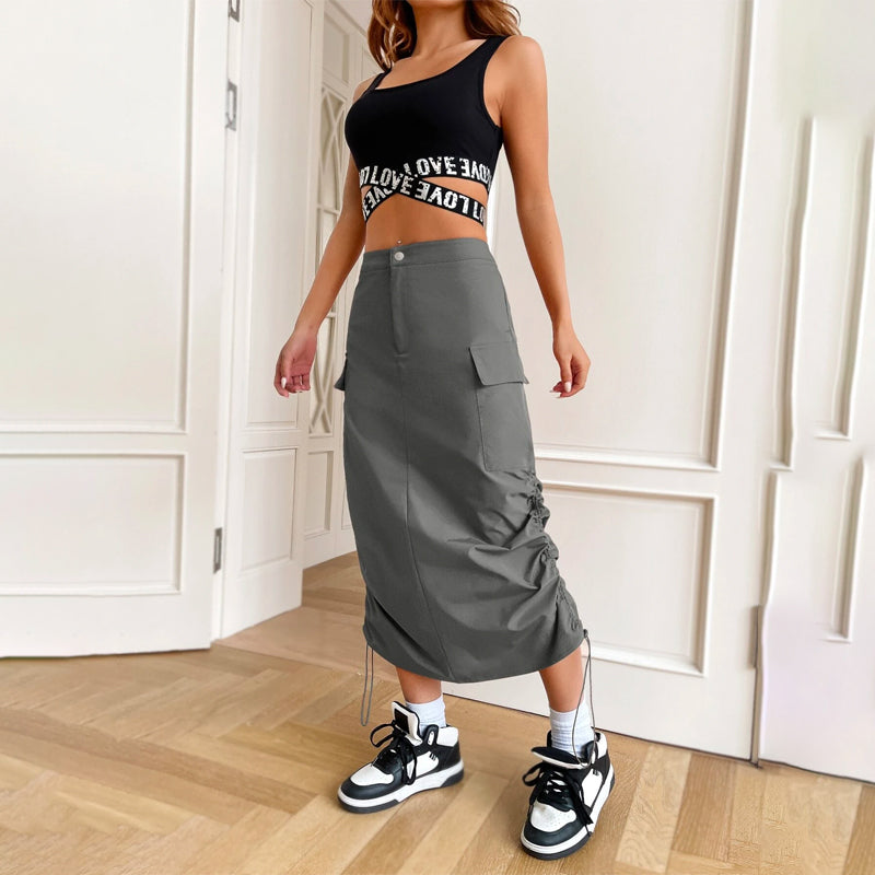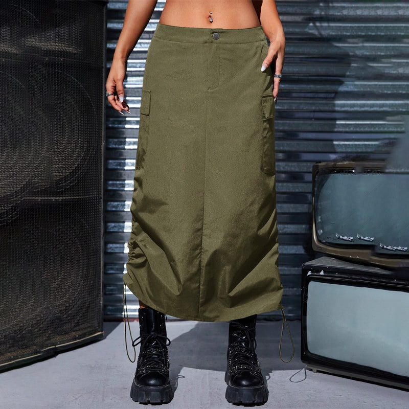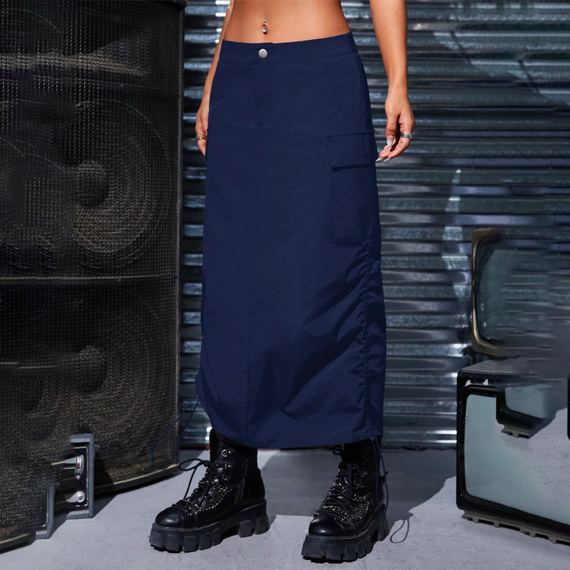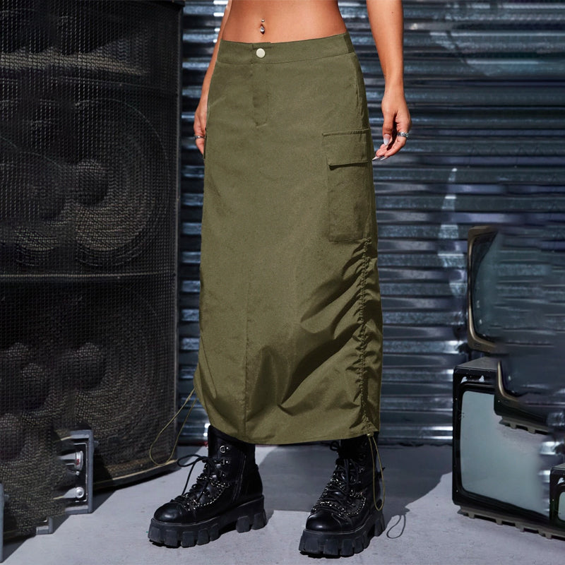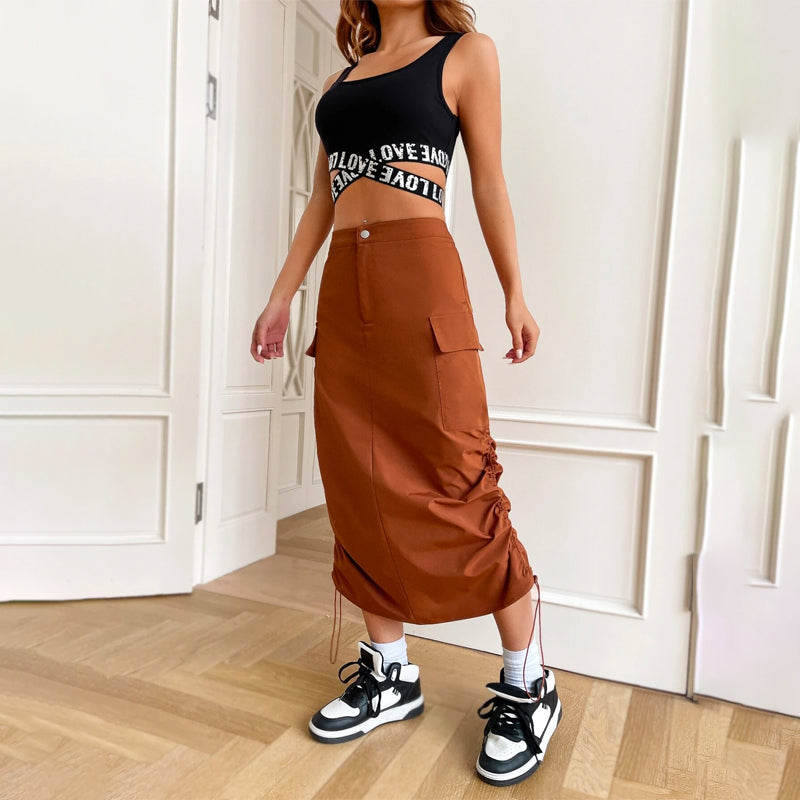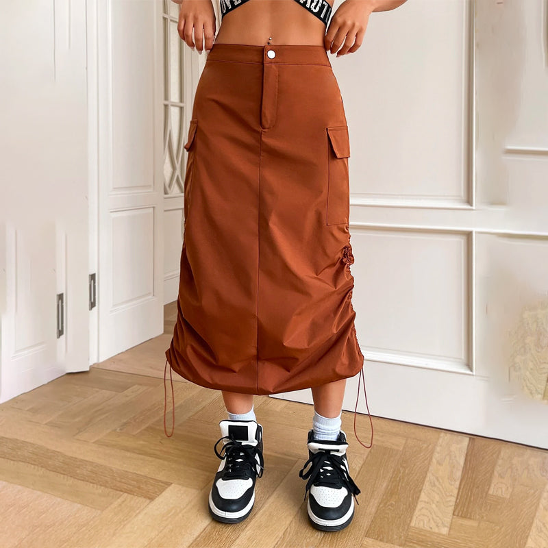 Flap Pocket Drawstring Waist Cargo Skirt