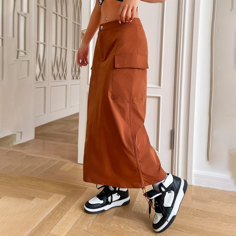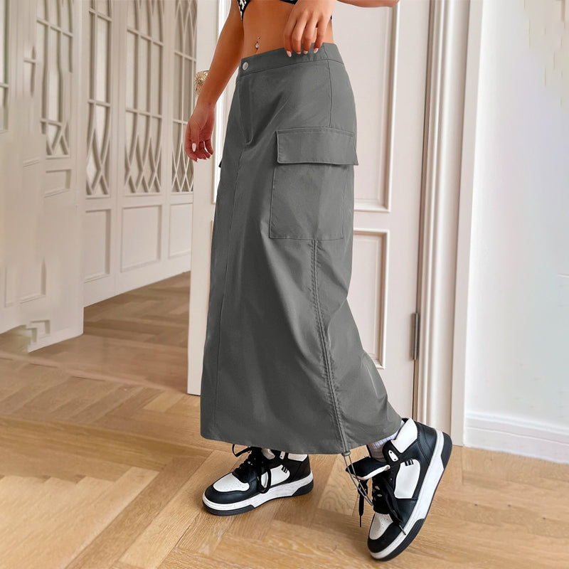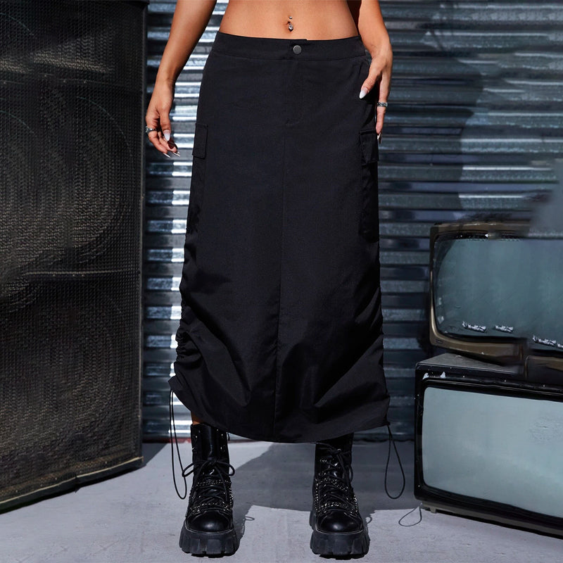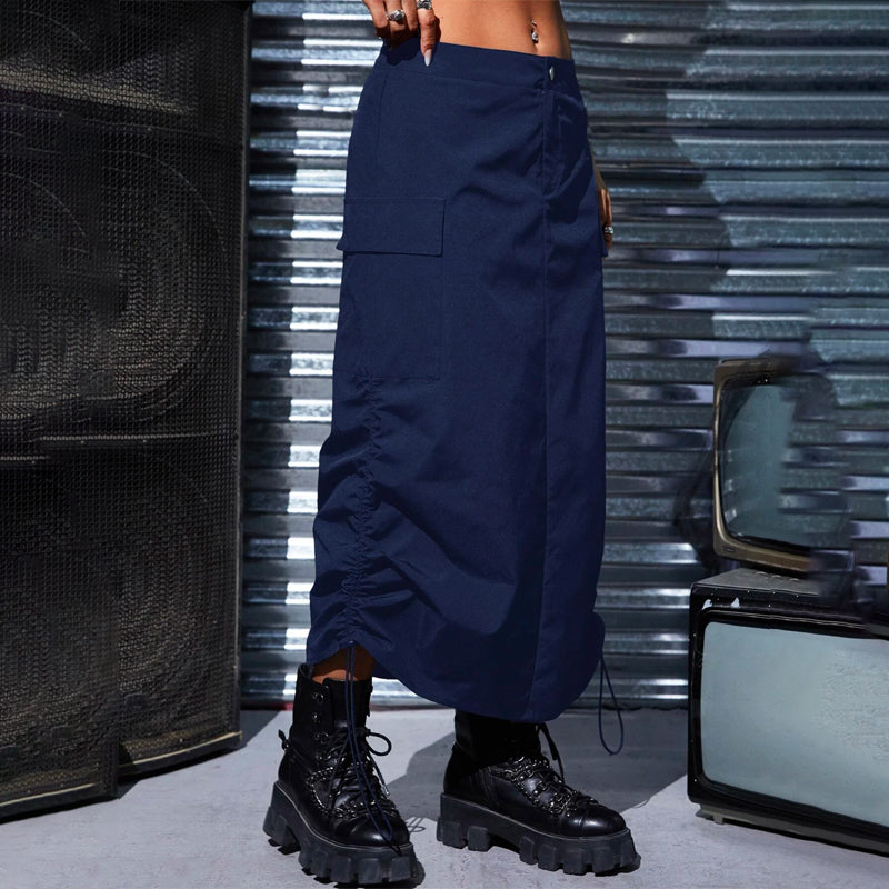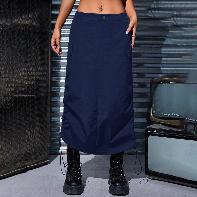 This Flap Pocket Drawstring Waist Cargo Skirt is a stylish and practical addition to any wardrobe. The skirt has a drawstring waist, giving you the perfect fit and making the skirt incredibly comfortable. It also has two large flap pockets, perfect for storing all your important items. The skirt is made of lightweight and breathable material, making it perfect for the warmer months. The skirt is perfect for a casual but stylish look and is a great way to show off your unique style.