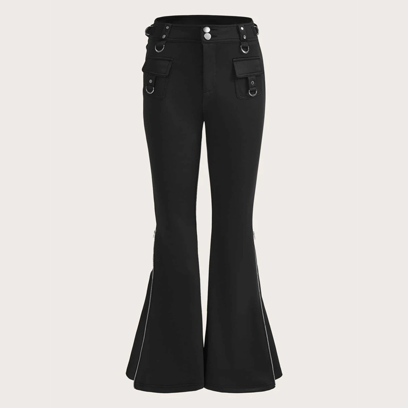 Flap Pocket Flare Leg Pants are made from high-stretch fabric and feature long lengths, these will make you look stylish at all times of the day. The drop waistband ensures they stay up on your waistline whilst you’re busy working. The zipper closure makes them easy to remove and put on so you don't have to worry about it when you are in rush.