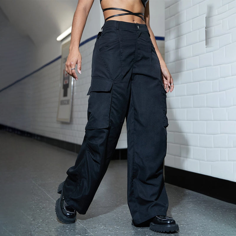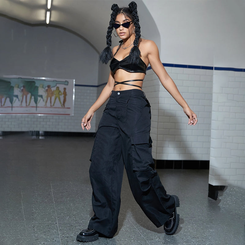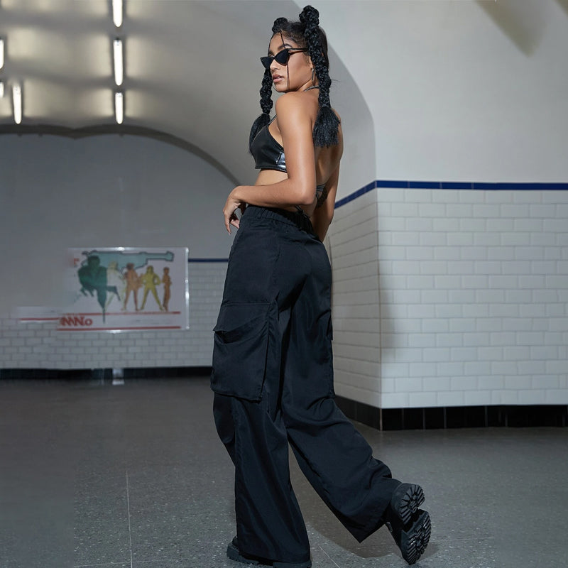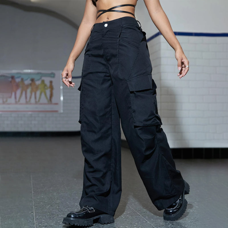 Flap Pocket Ruched Wide Leg Cargo Pants