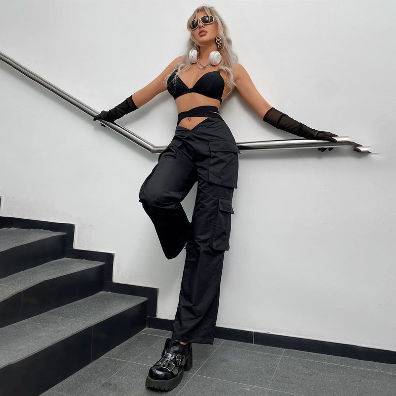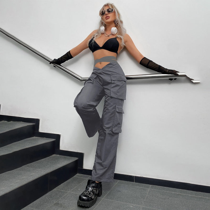 Flap Pocket Side Cargo Parachute Pants feature a plain pattern and elastic waistband for easy comfort. These versatile pants are made of polyester and cotton, offering plenty of stretch and durability. The asymmetrical design and pocket details make these pants stand out and the high waist makes them comfortable.