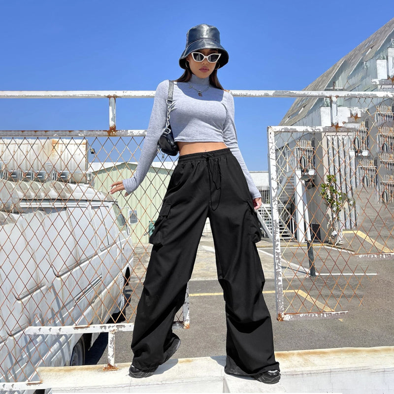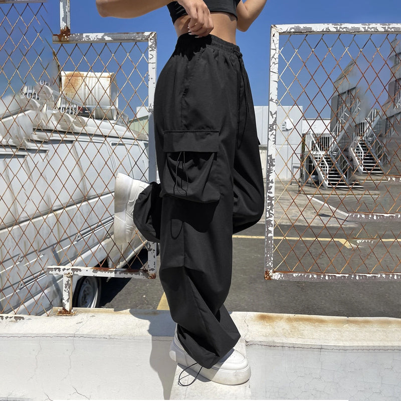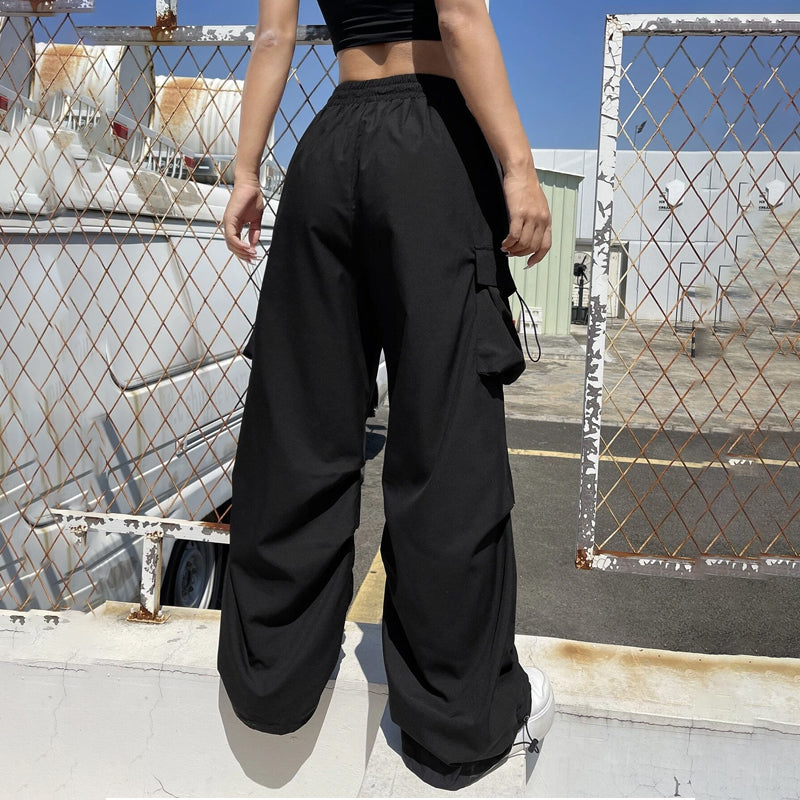 Flap Pocket Side Drawstring Waist Cargo Pants