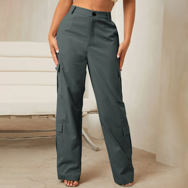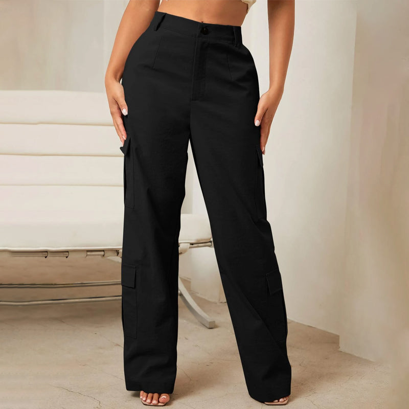 Wear these stylish Flap Pocket Side Zipper Cargo Pants with the perfect fit to entertain your morning and casual outings with grace. They feature a soft, relaxed fit that is perfectly comfortable for any occasion. This high-rise pair of pants is made from fabric and is ready to go out with ease. The button front and pockets add a unique flair.