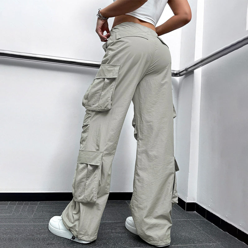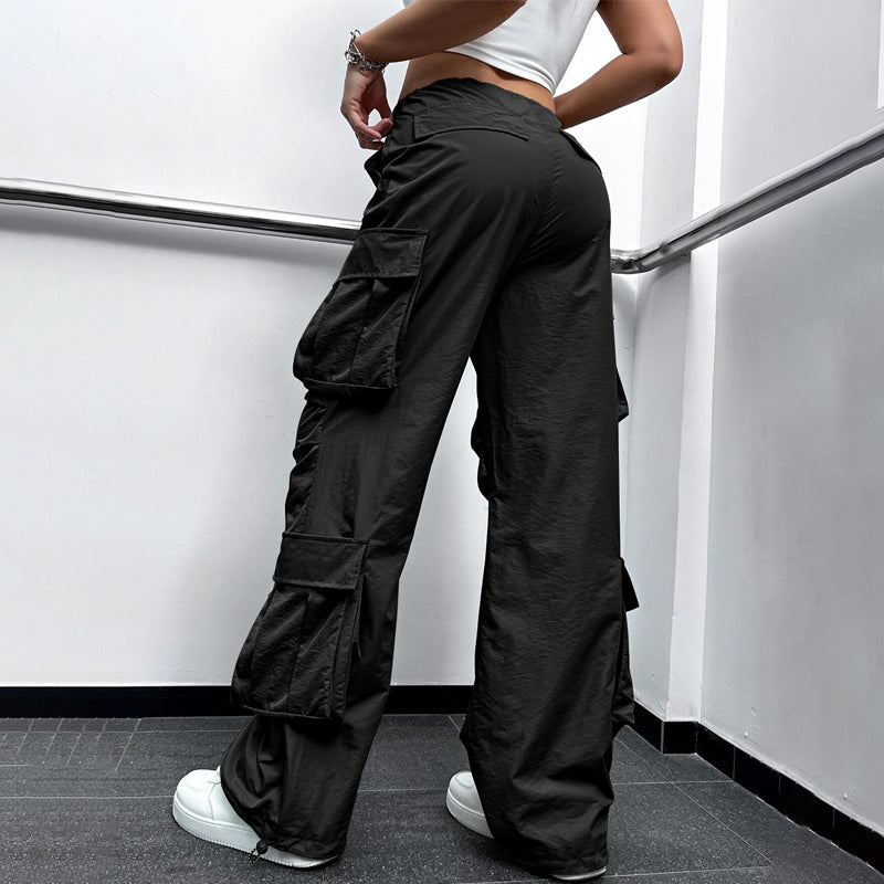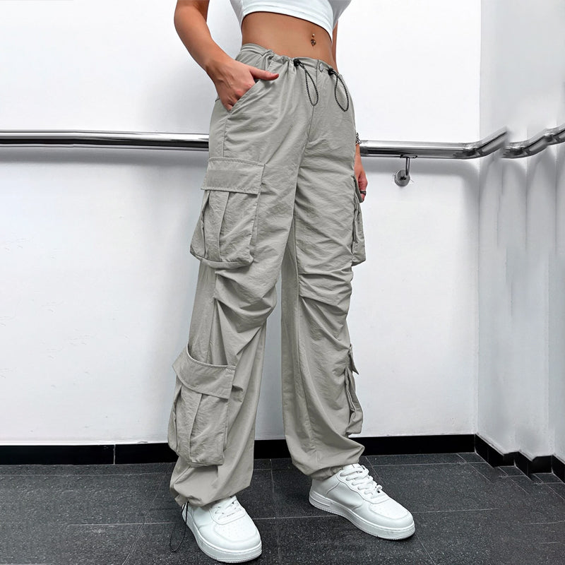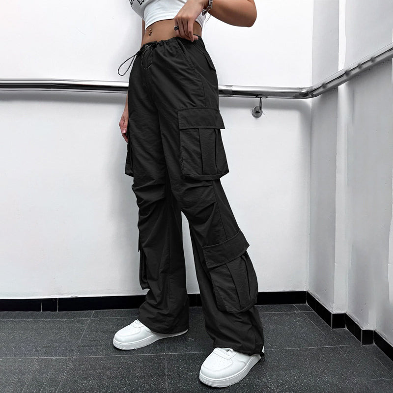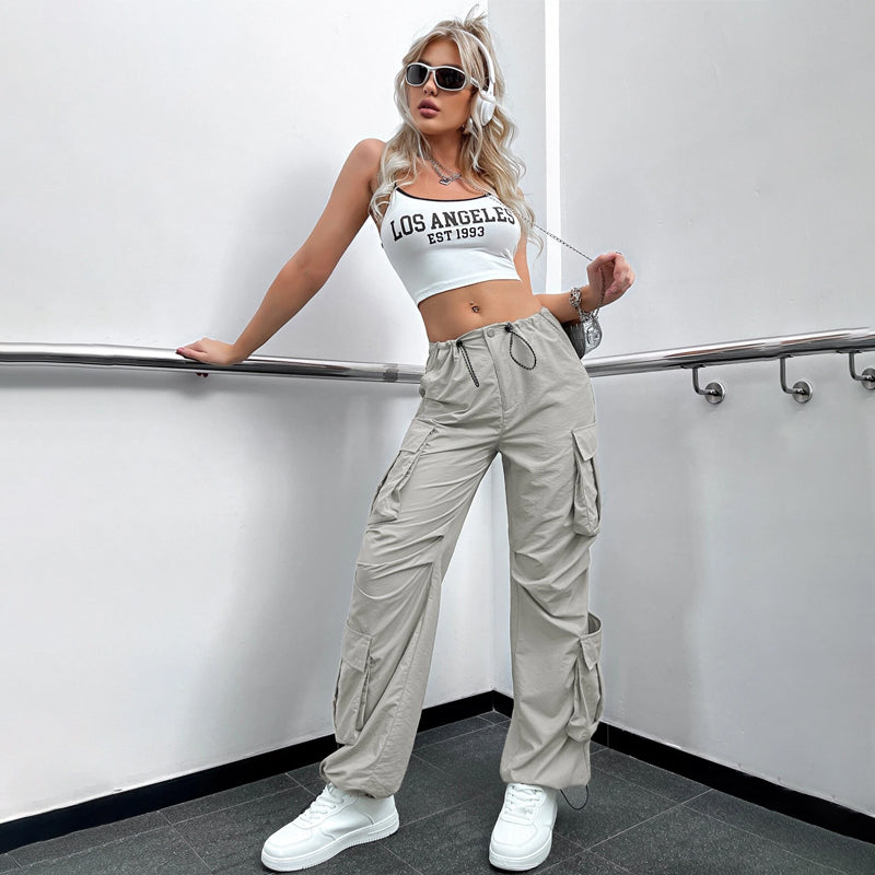 Flap Pockets Drawstring Cargo Pants are perfect for your everyday look. It features a high waist and a regular fit. The fabric is made of high-stretch polyester which makes it easy to move around without restriction. The plain design and long length make them suitable to be worn when going for exercise.