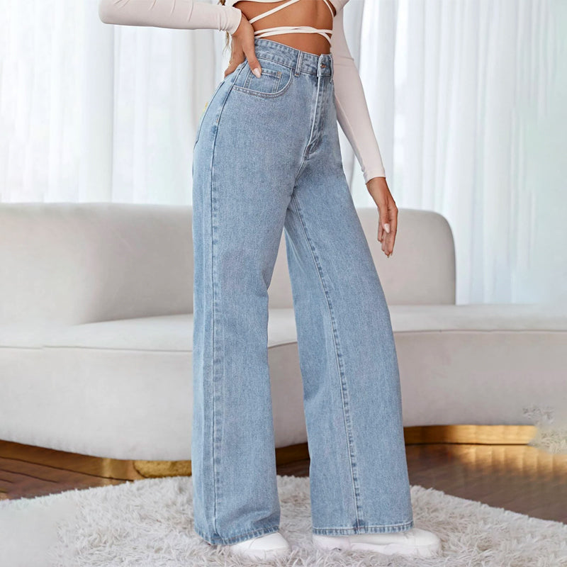 Floral Embroidery Wide Leg Jeans have a very classy look and offer a loose fit. It is easy to maintain, you can easily wash it in the machine without damaging the color. The composition of cotton, polyester, and rayon gives it a very fine texture. You can pair it with anything and attend any occasion.