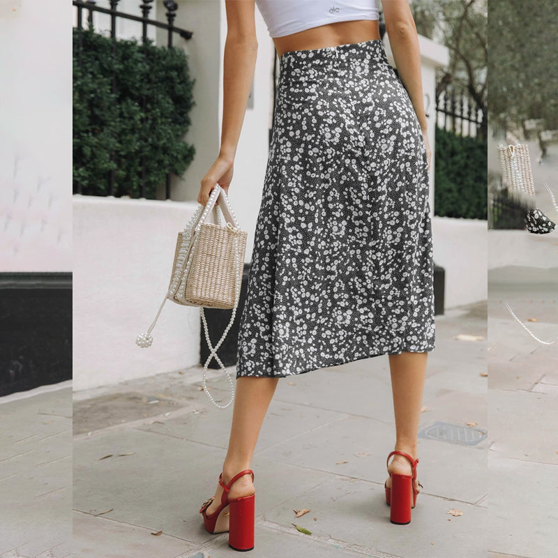 This Floral Midi Slit Skirt is a stunning piece for any wardrobe. Crafted from a lightweight and breathable fabric, this skirt is perfect for hot summer days. The midi length and slit cut allow for a comfortable fit and free movement. The beautiful floral print will add a feminine touch to any outfit. Pair it with a simple white top and sandals for a casual daytime look, or dress it up with a fitted blouse and heels for a night out.