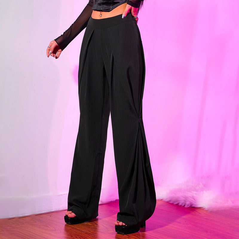 Fold Pleated Detail Zip Side Wide Leg Pants