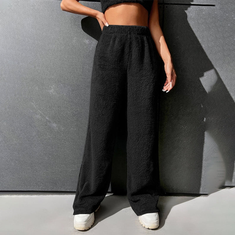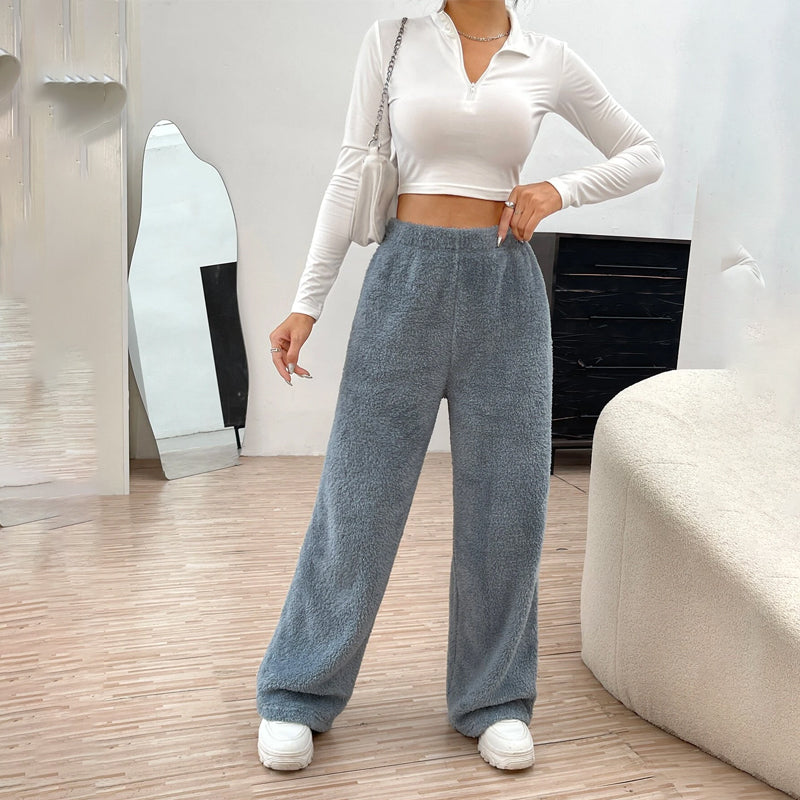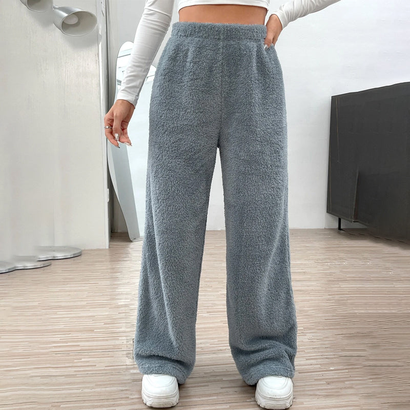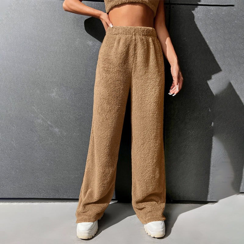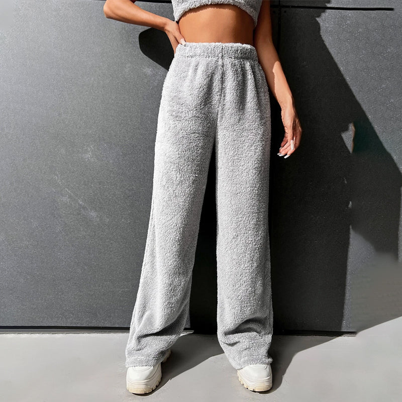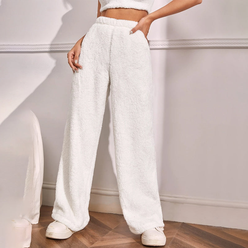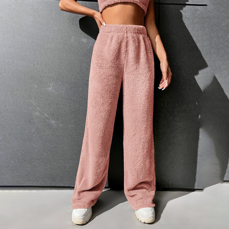 Fur High Waist Straight Leg Pants