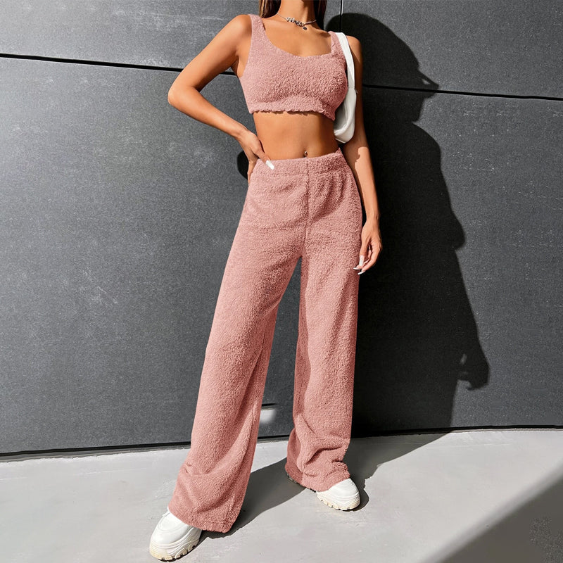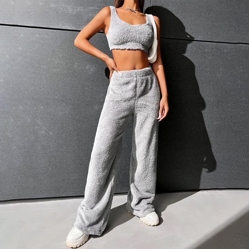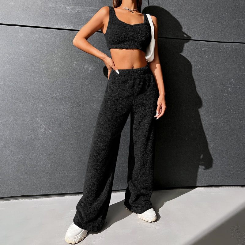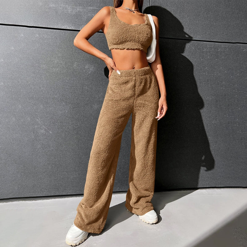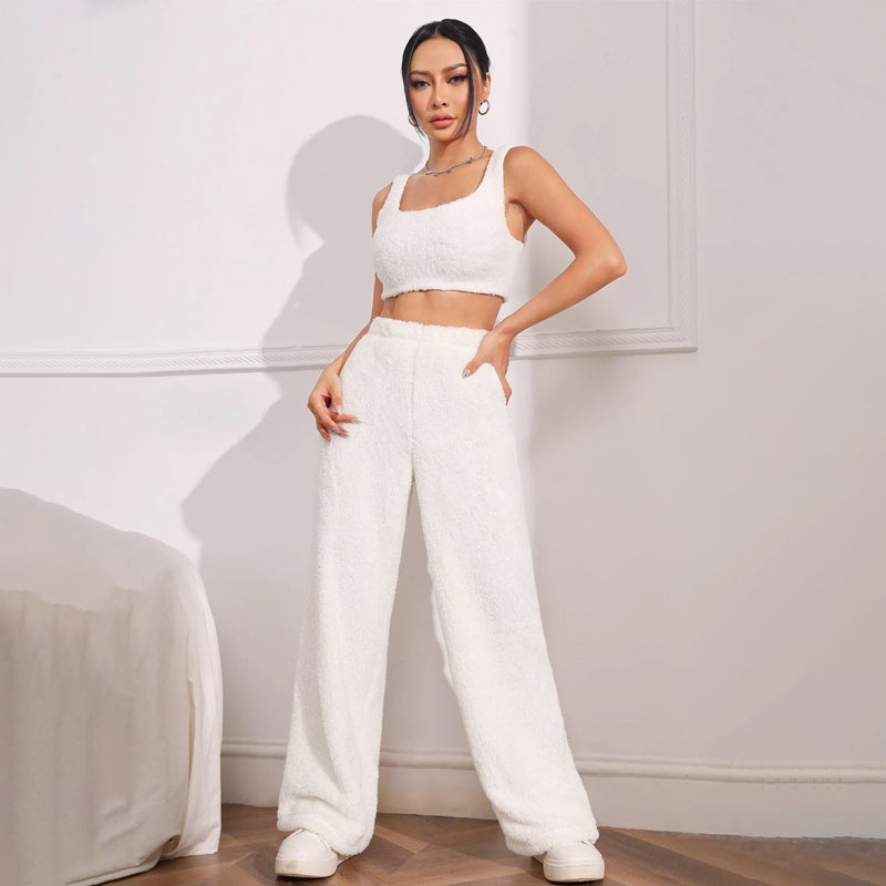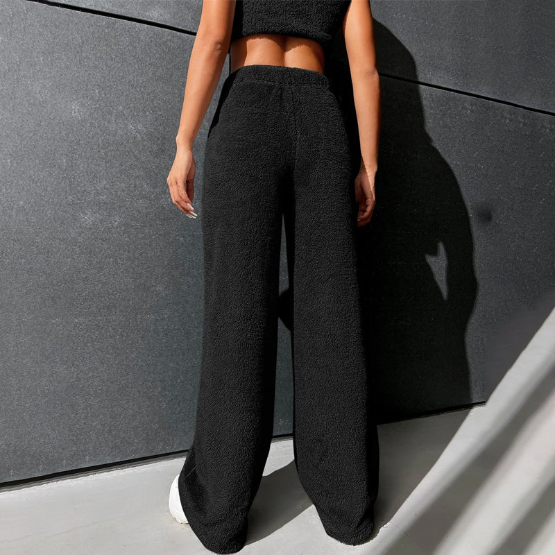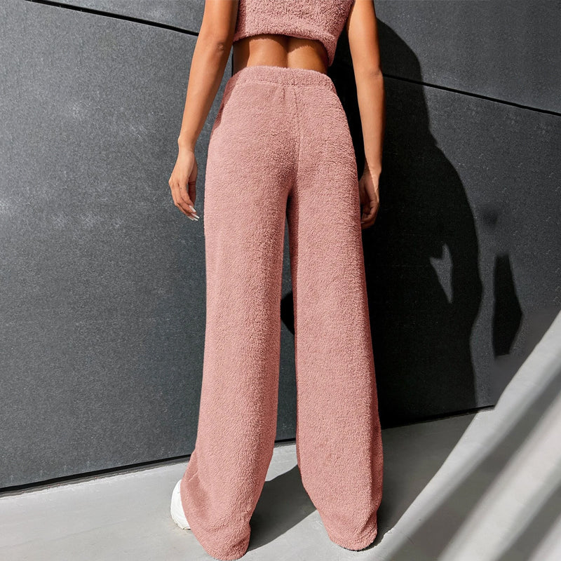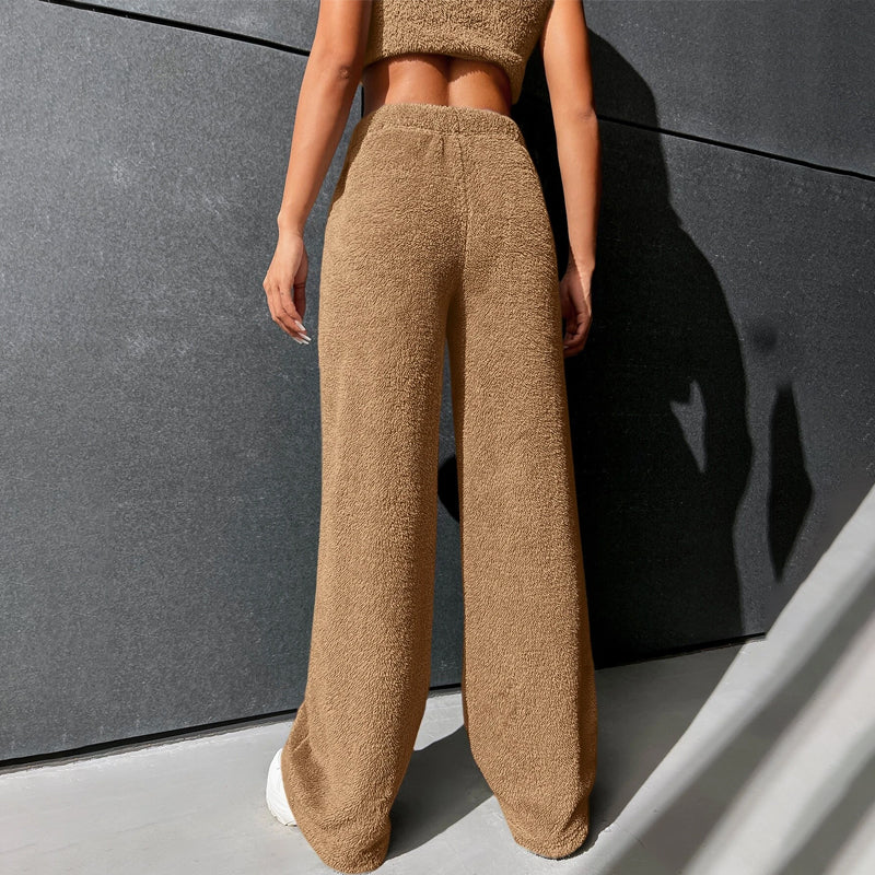 Fur High Waist Straight Leg Pants