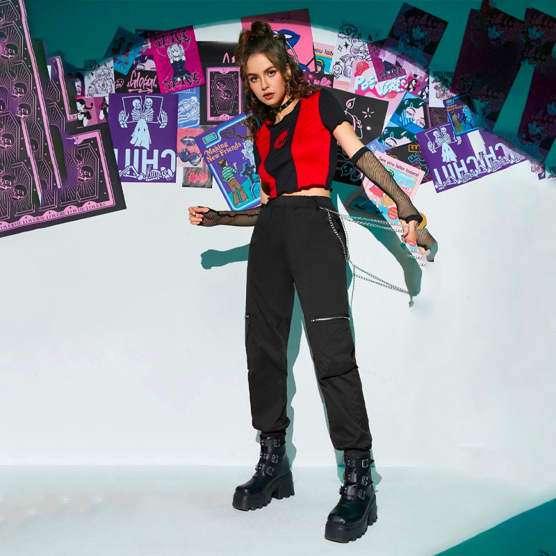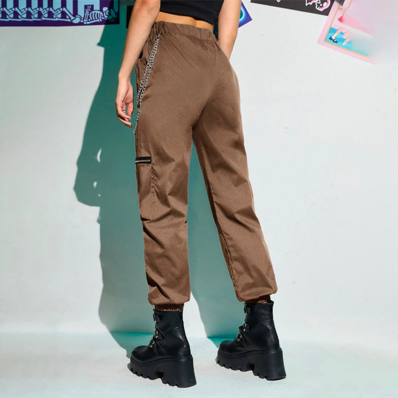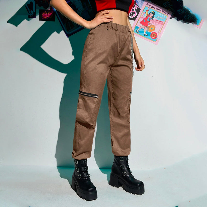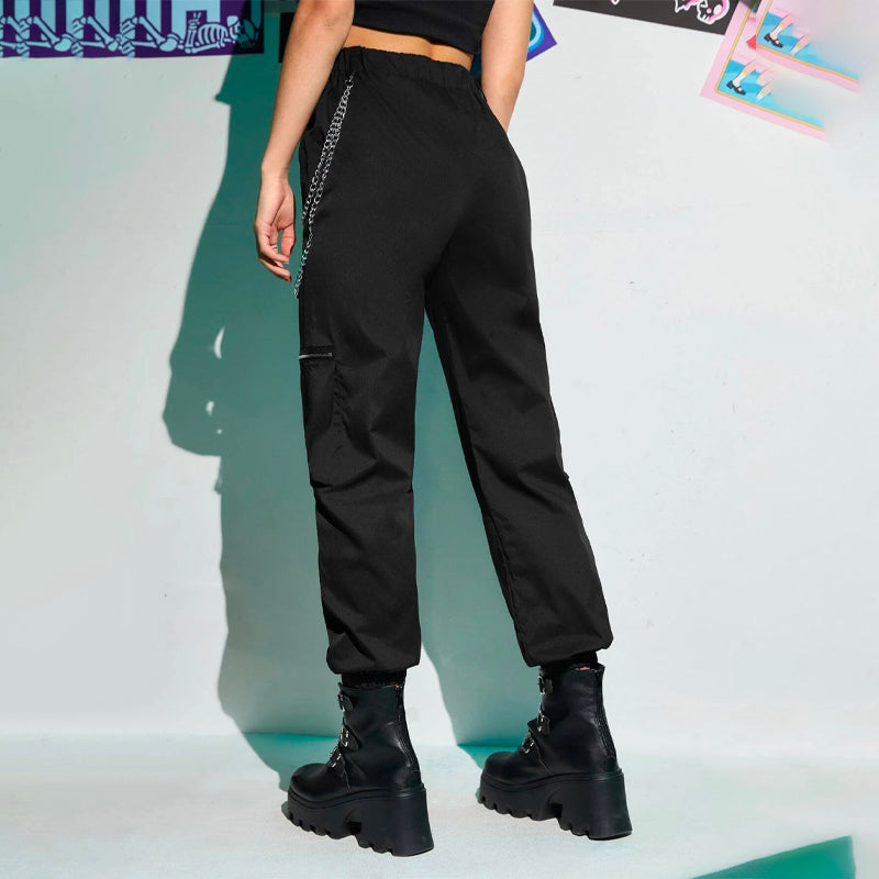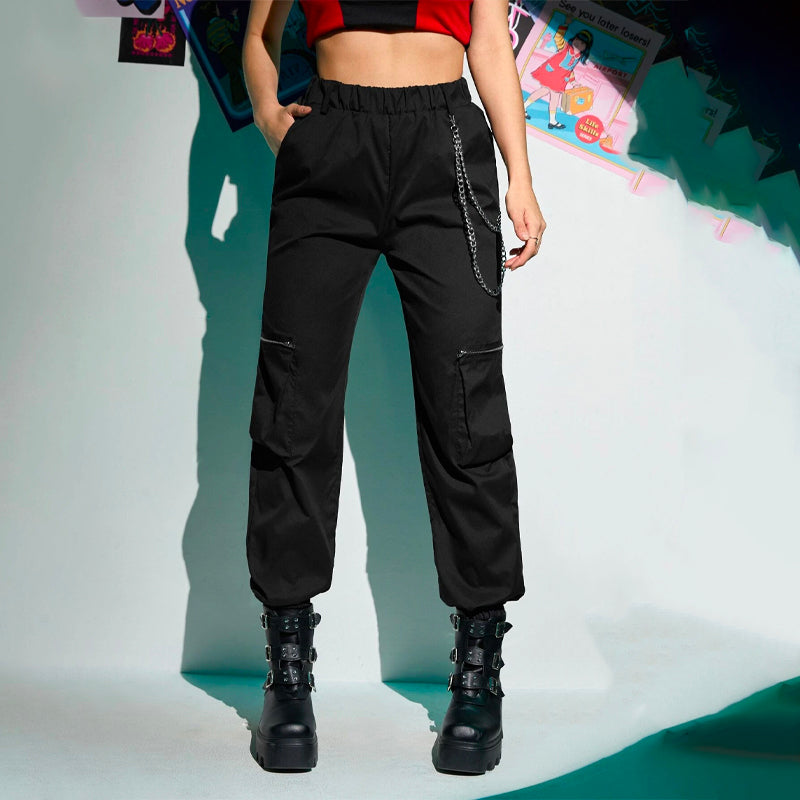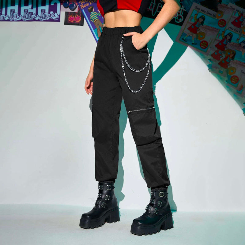 Grunge Punk Zipper Flap Pocket Cargo Pants