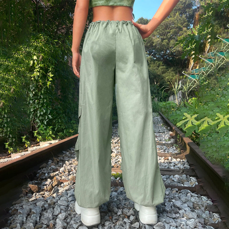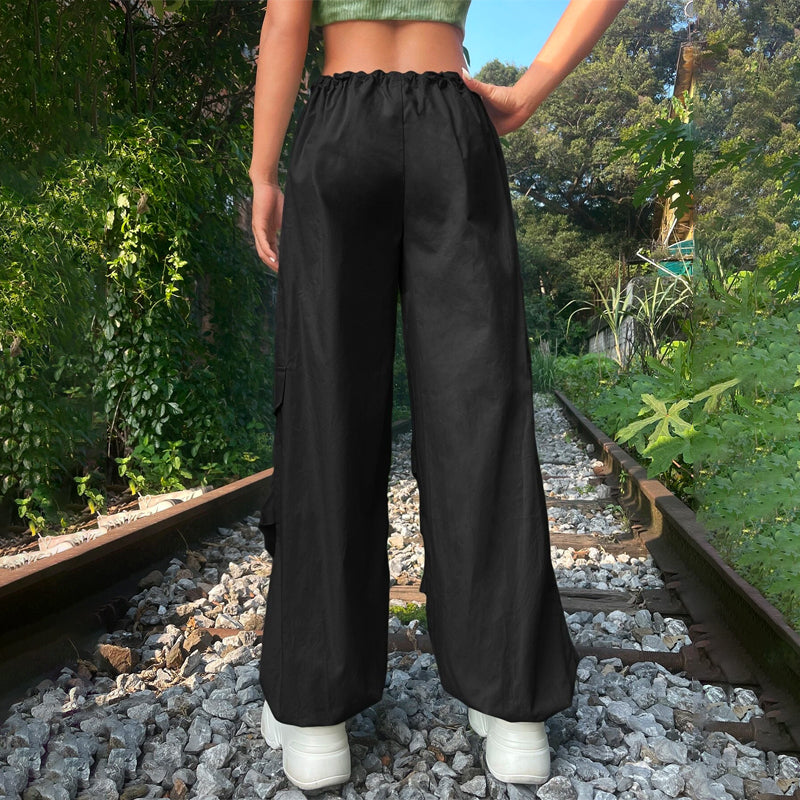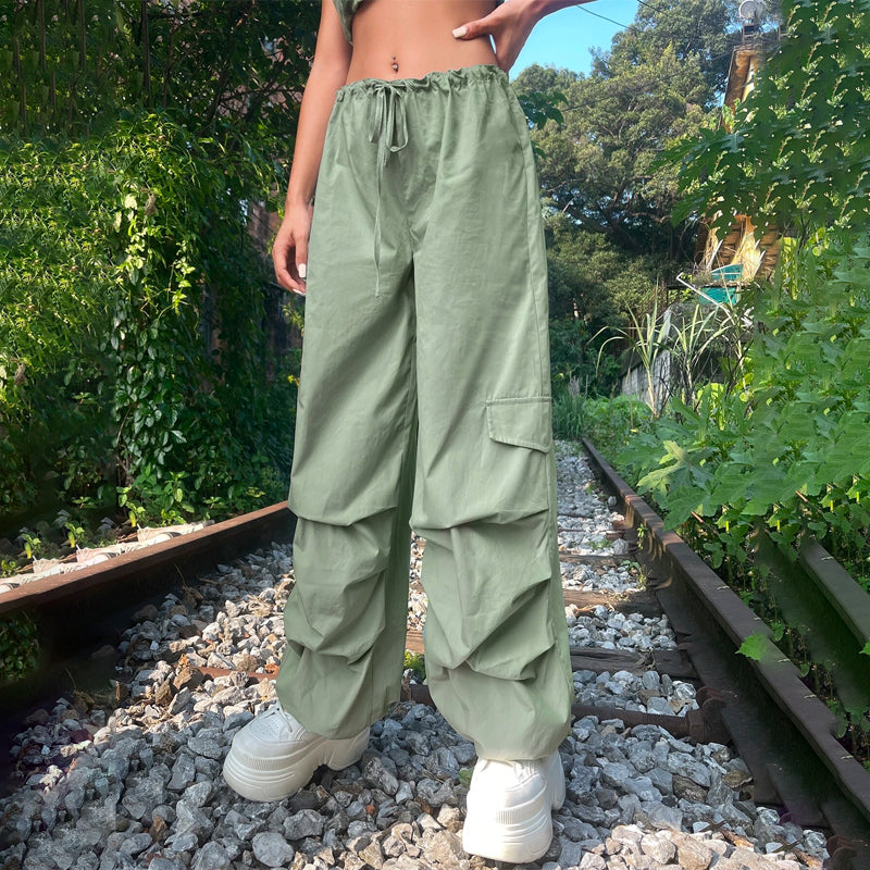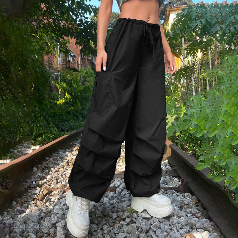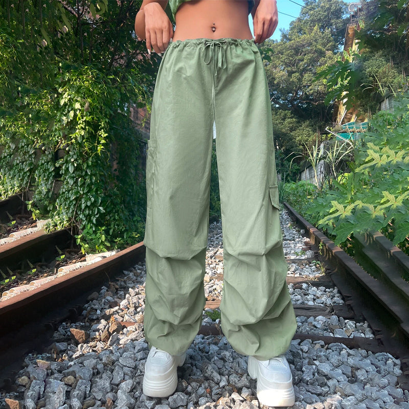 Grunge Solid Drawstring Waist Cargo Parachute Pants