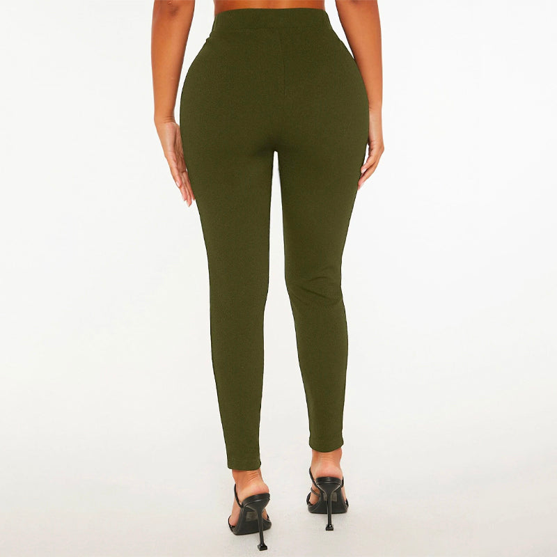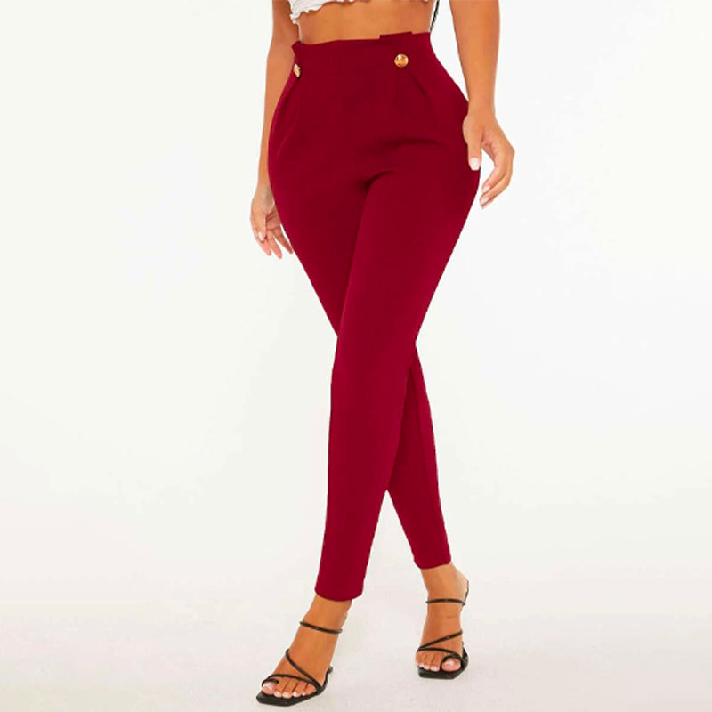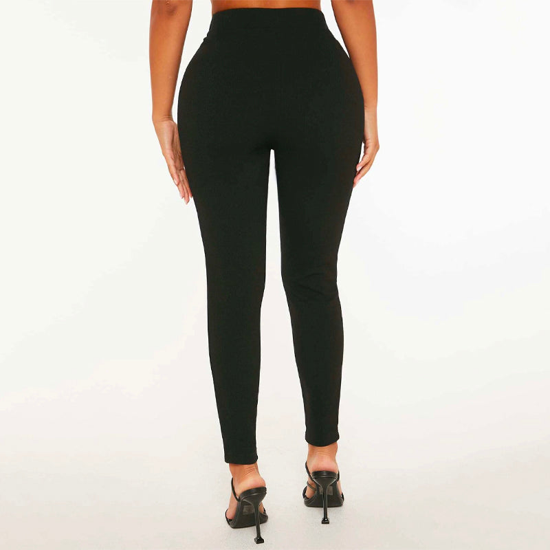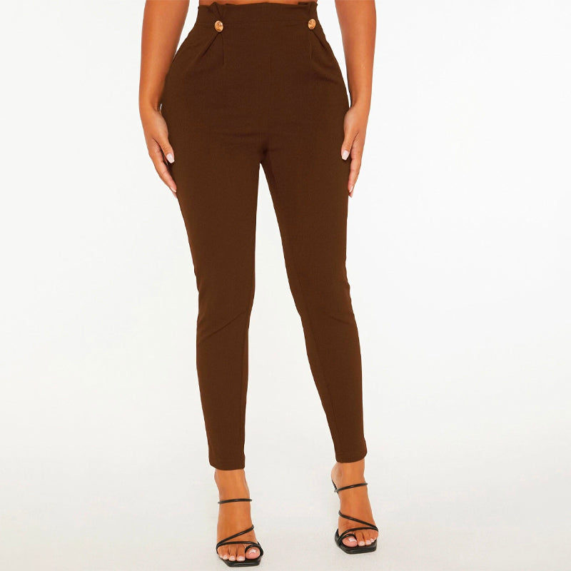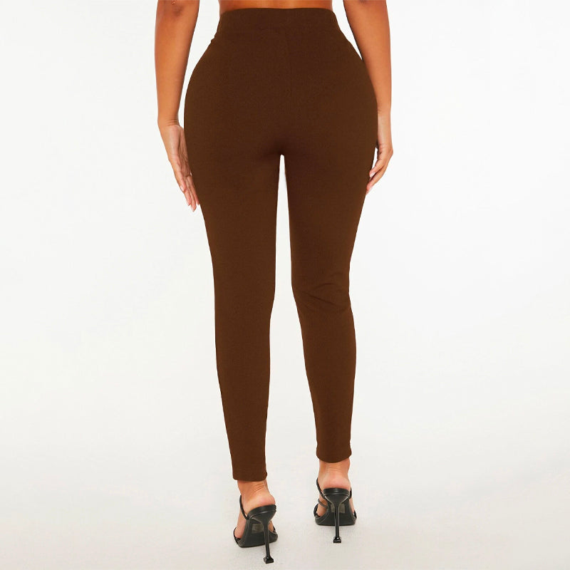 High Waist Button Skinny Pants are super-soft, stretchy skinny pants designed for everyday comfort. These pants are made with knitted fabric and a 5% elastane content, these lightweight pants will be your new favorite. Featuring a button waistband, adjustable drawstring, and elastic ankles, these pants are a perfect fit.