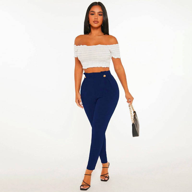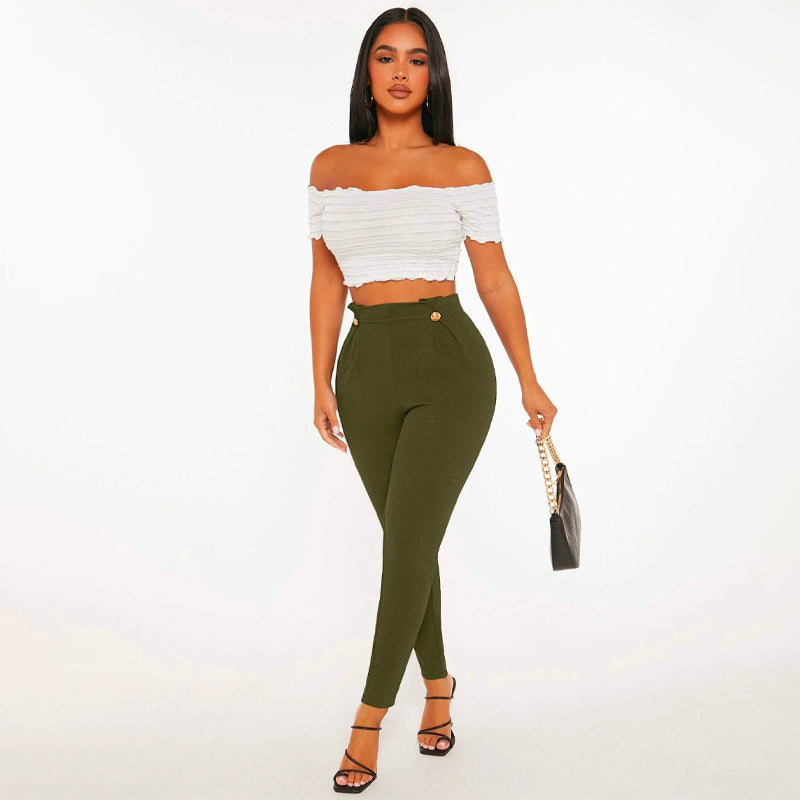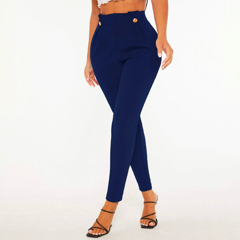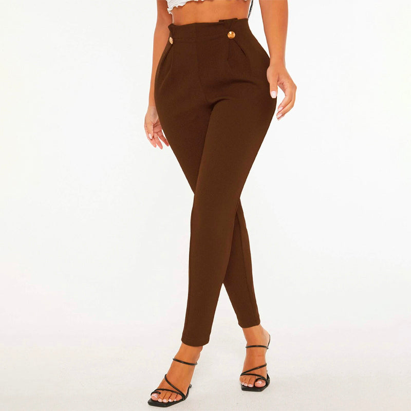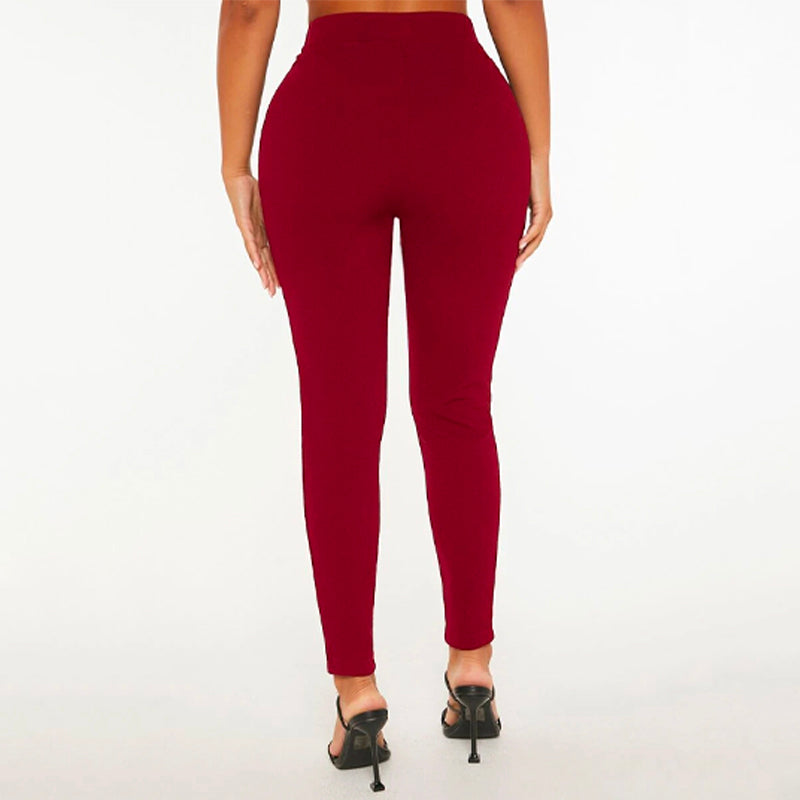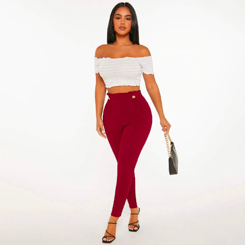 High Waist Button Skinny Pants are super-soft, stretchy skinny pants designed for everyday comfort. These pants are made with knitted fabric and a 5% elastane content, these lightweight pants will be your new favorite. Featuring a button waistband, adjustable drawstring, and elastic ankles, these pants are a perfect fit.
