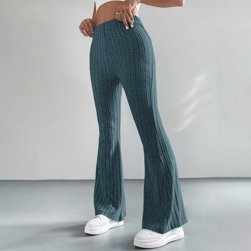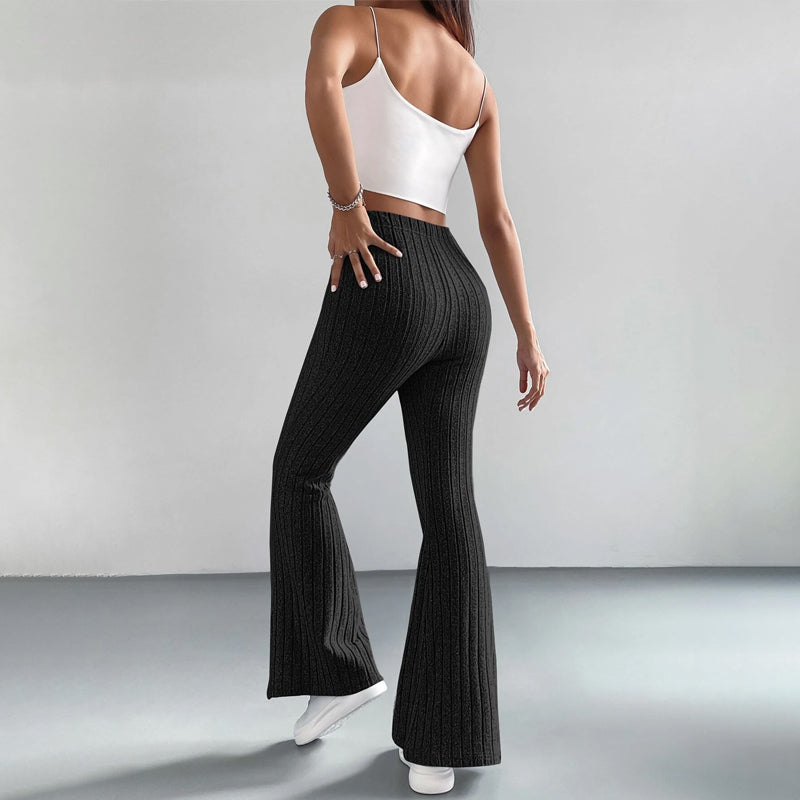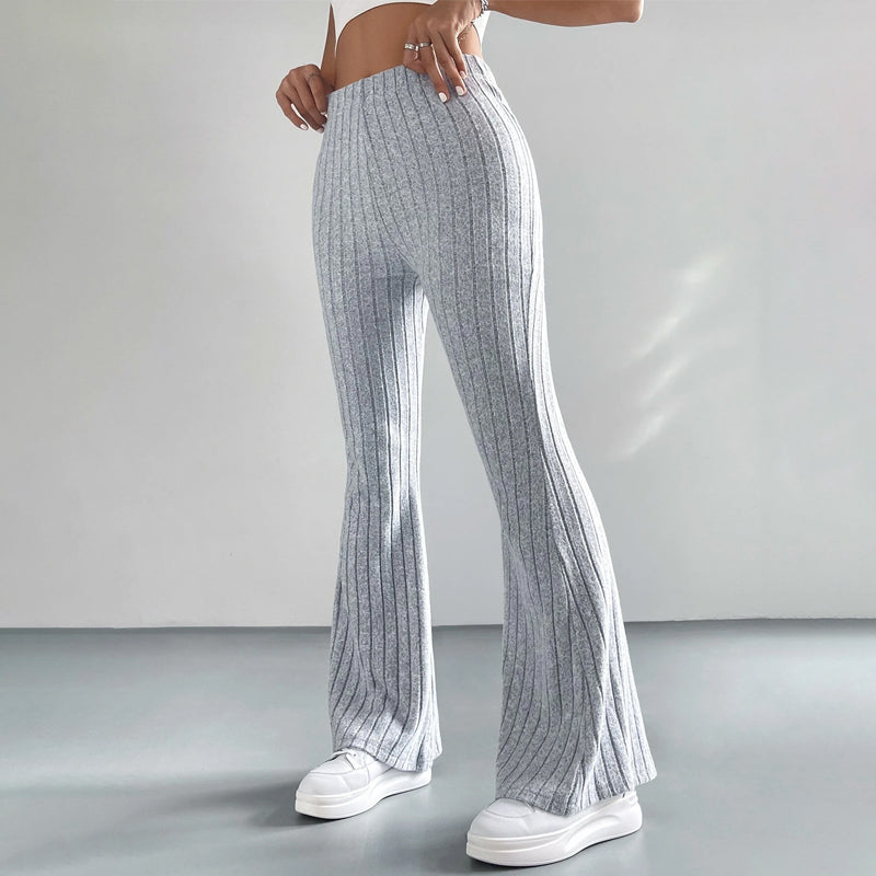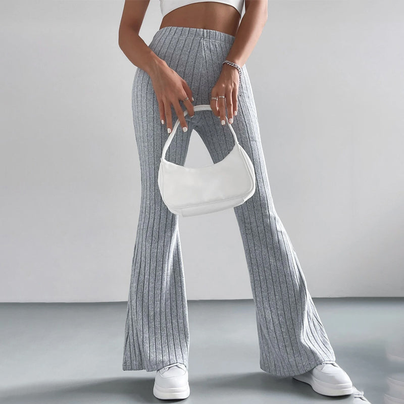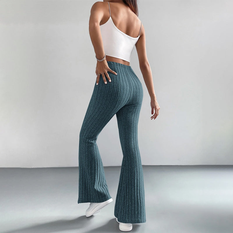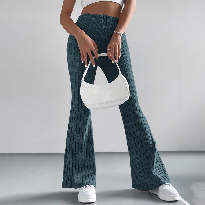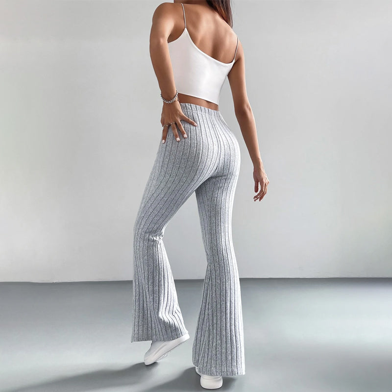 High Waist Casual Rib Knit Pants are comfortable, casual cargo pants that are ready to last in any situation. The high waist and fit are perfect for everyday wear, while the elastic waistband keeps them secure around your waist. The flare leg and plain design make these pants functional and stylish.