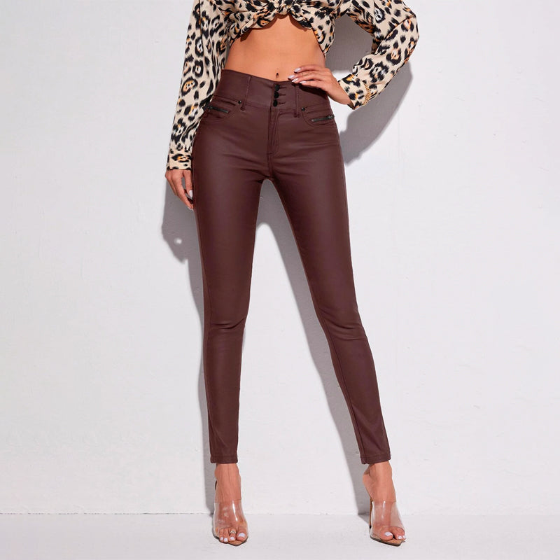 Functional and stylish, the High Waist Coated Leather Look Skinny Jeans have all the features you expect from a pair of jeans. The stretchy fabric provides comfort, ease, and longevity. It is designed with premium cotton denim and made with high-quality material construction.