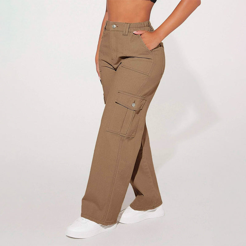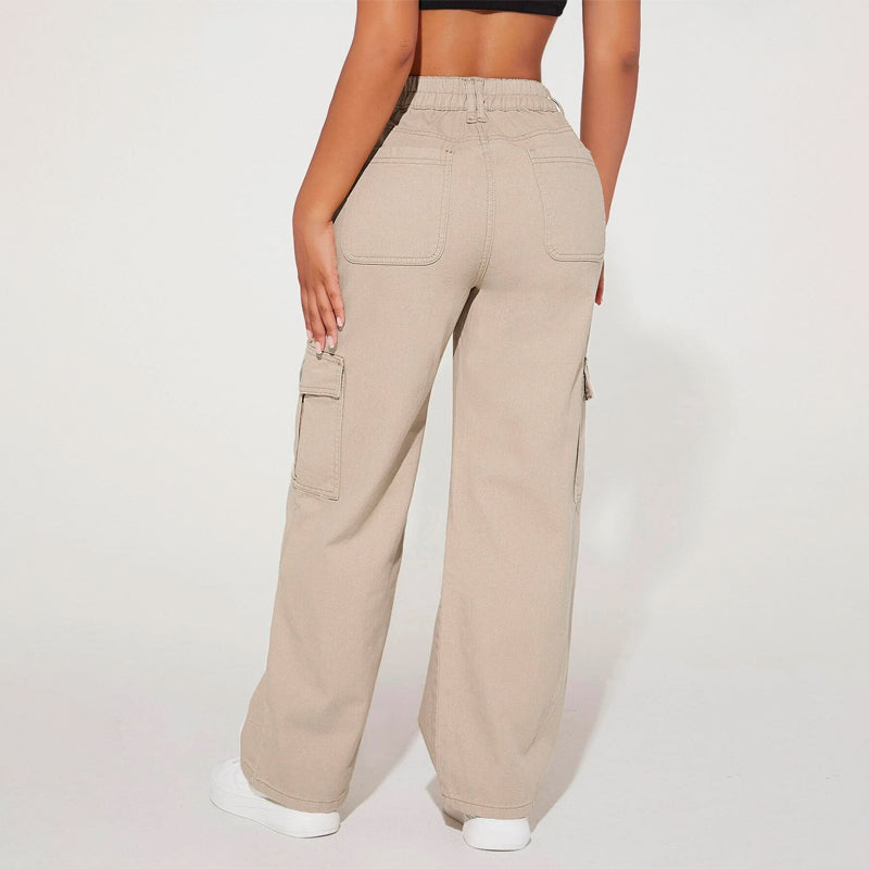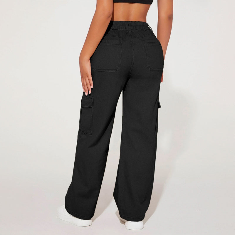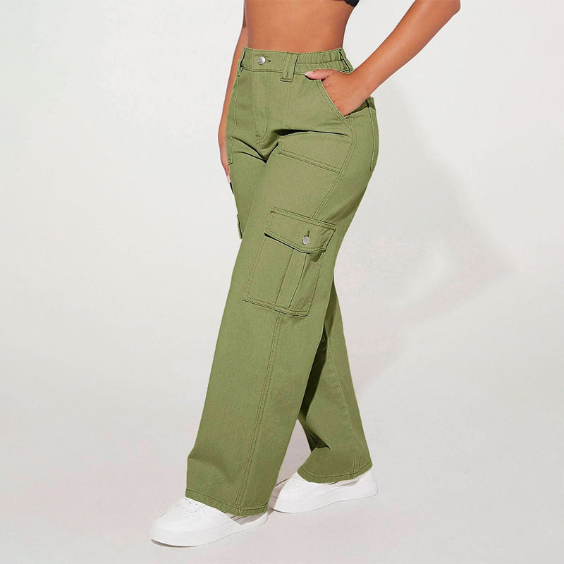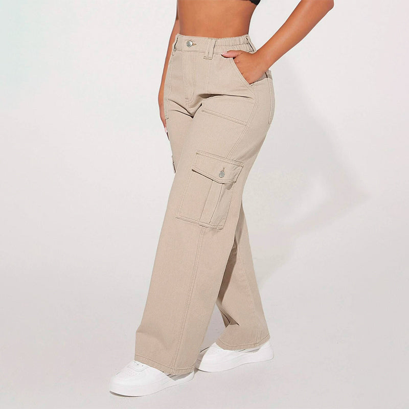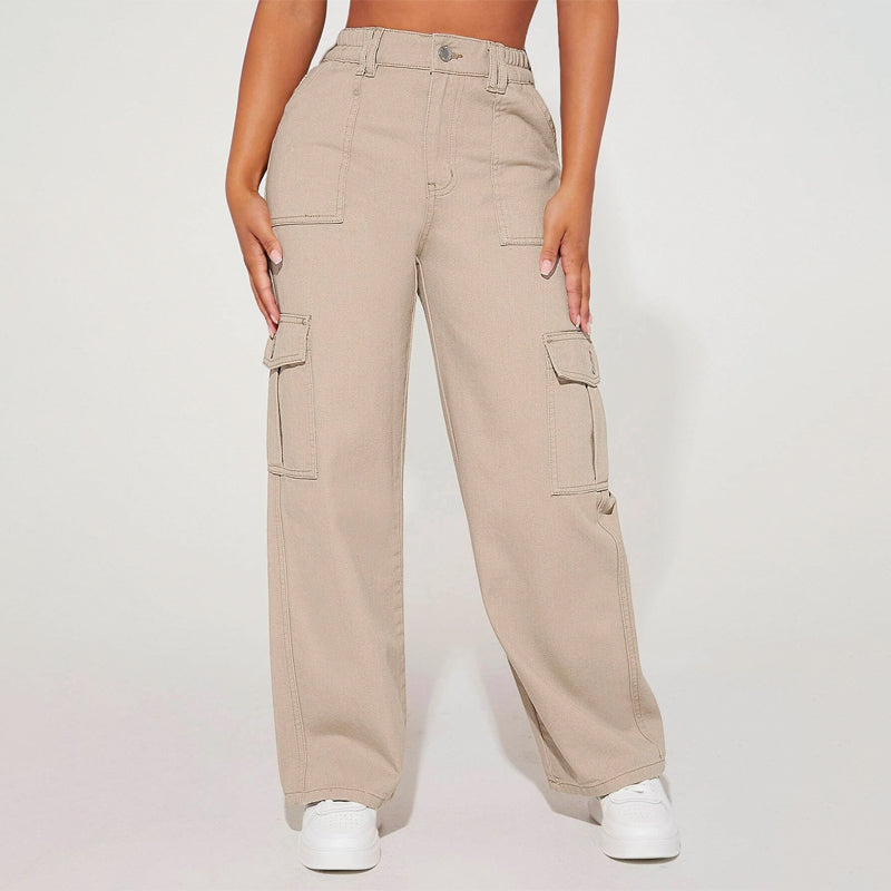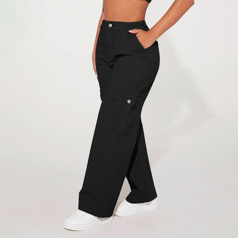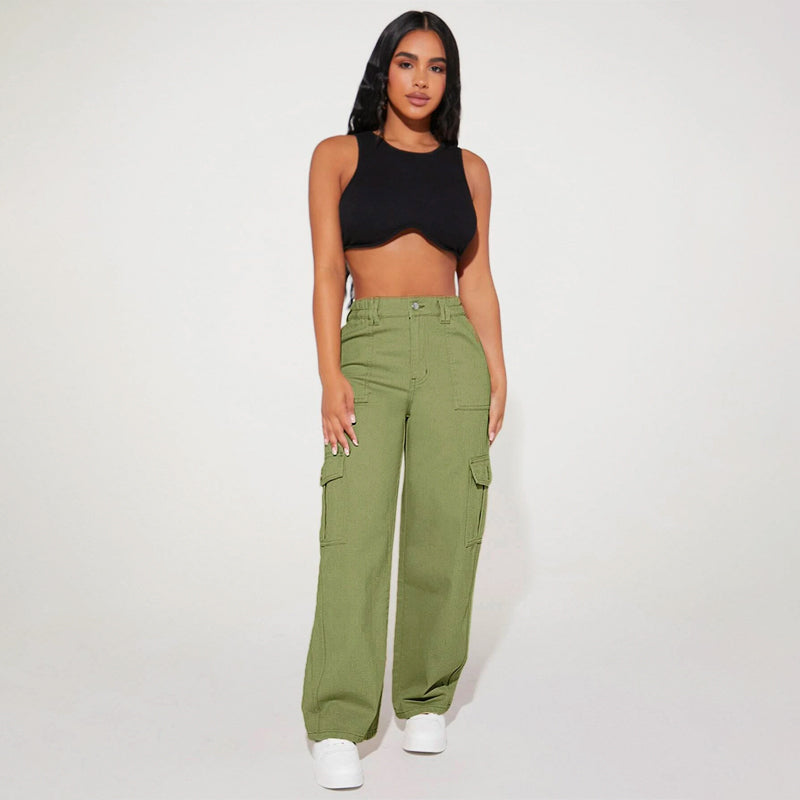 High Waist Flap Pocket Cargo Jeans have a non-stretch fabric and offer a loose fit type. These pocket cargo pants are made of pure cotton and can be easily washed in the machine. It also features buttons, pockets, and zippers making it very convenient to wear anywhere you go.