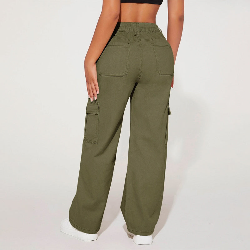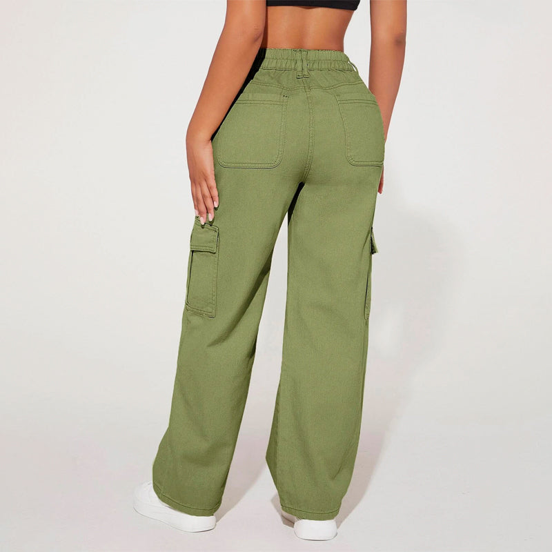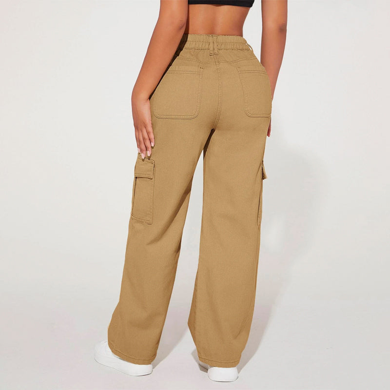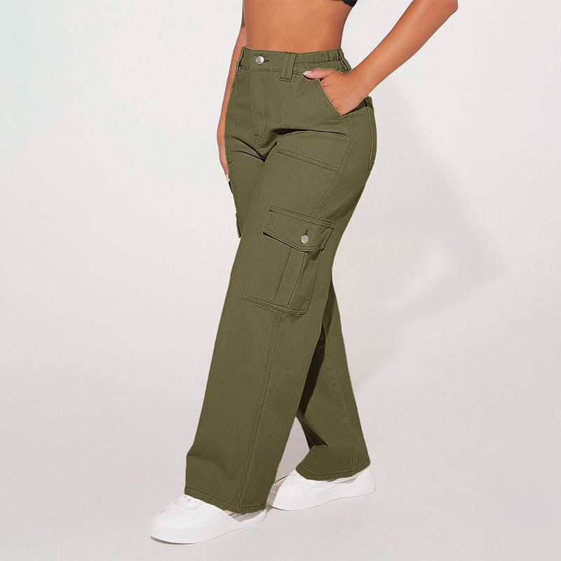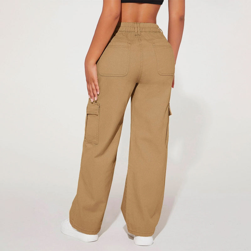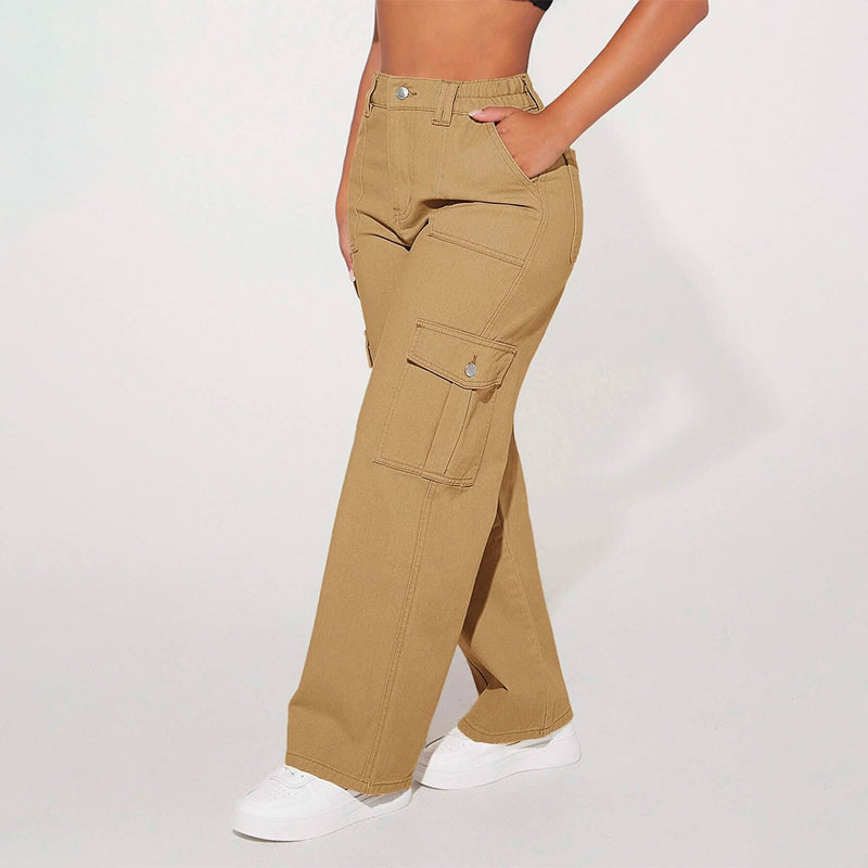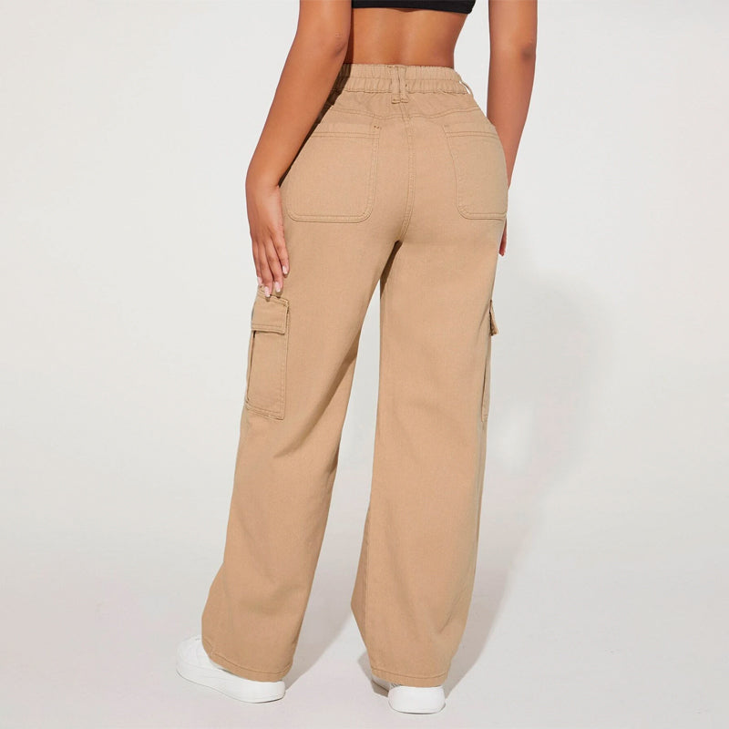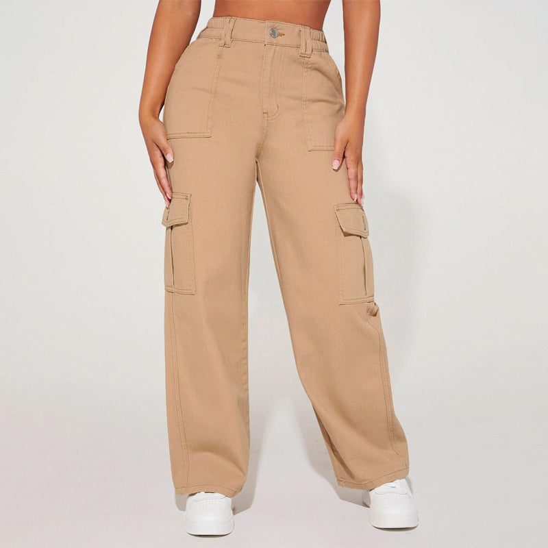 High Waist Flap Pocket Cargo Jeans have a non-stretch fabric and offer a loose fit type. These pocket cargo pants are made of pure cotton and can be easily washed in the machine. It also features buttons, pockets, and zippers making it very convenient to wear anywhere you go.