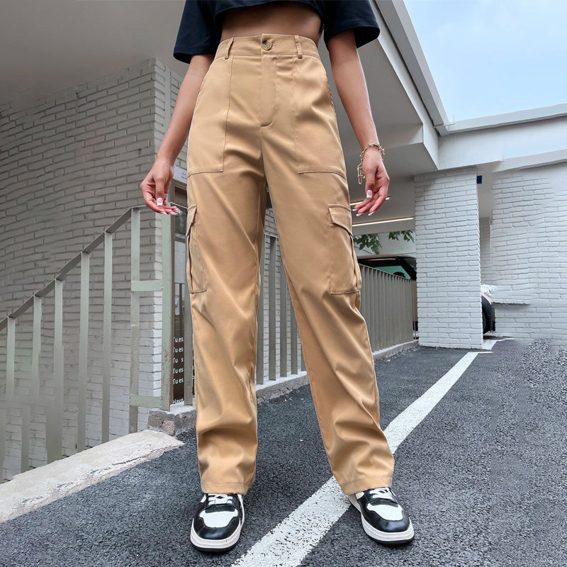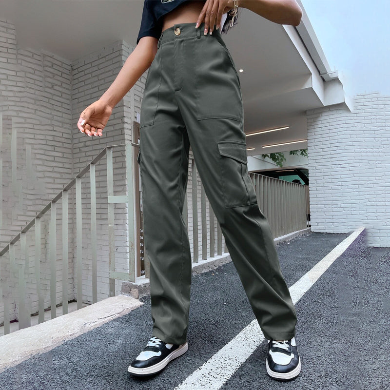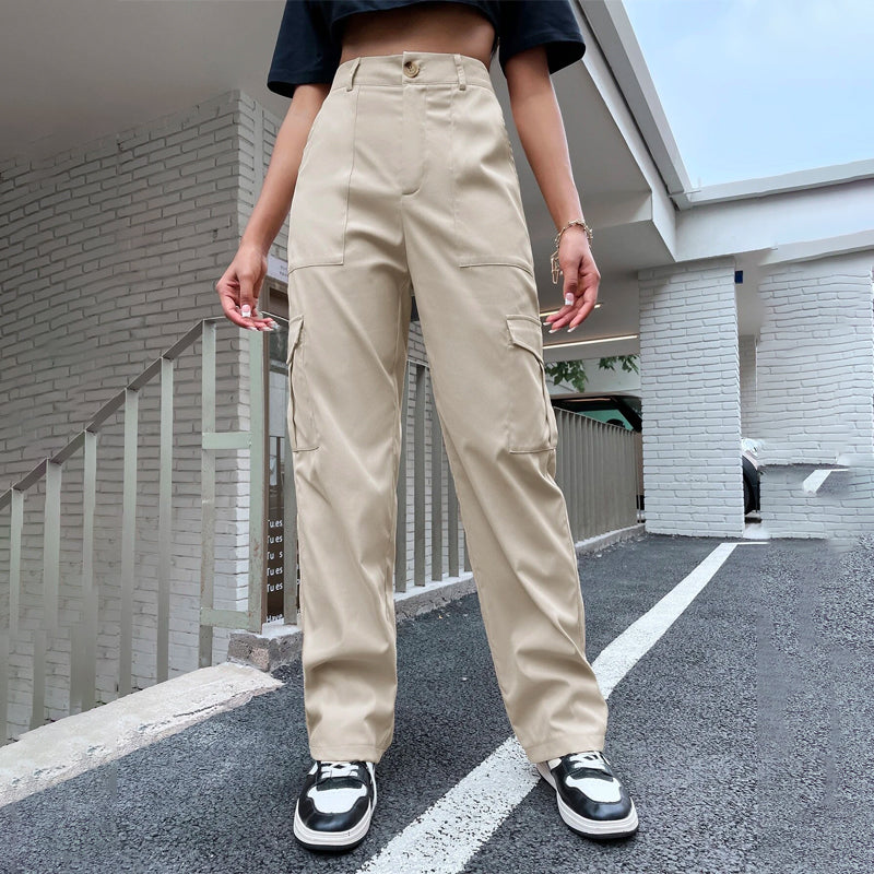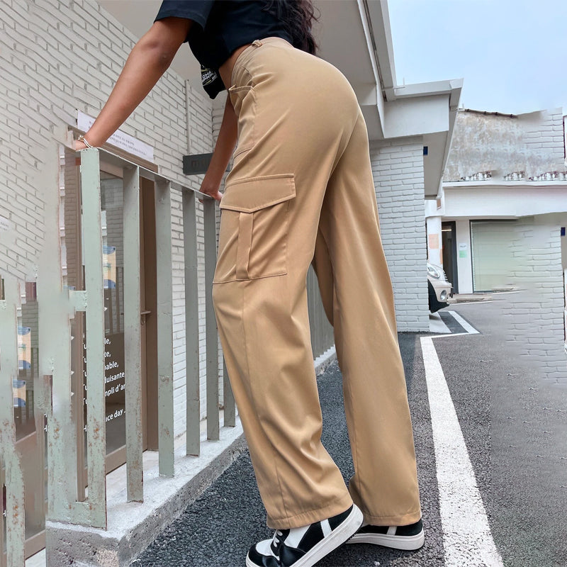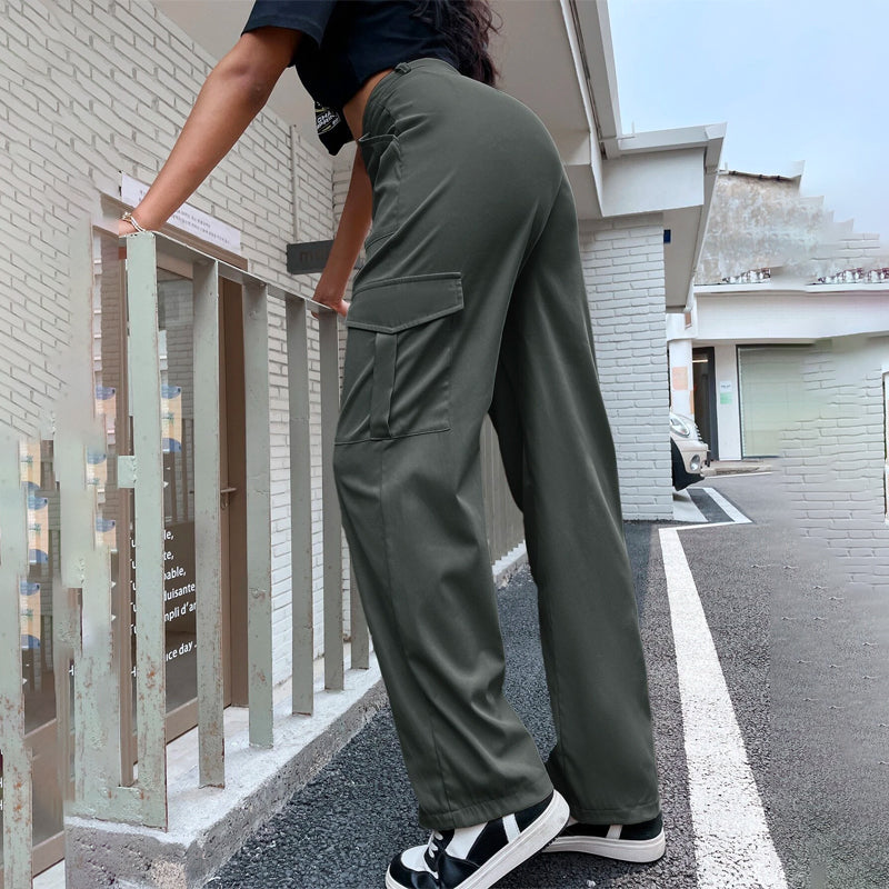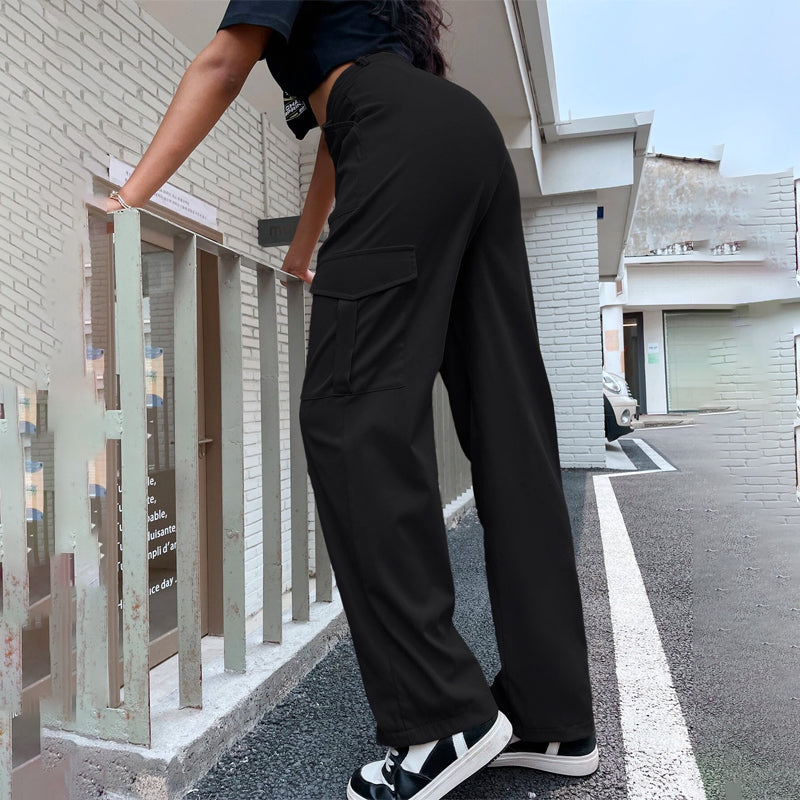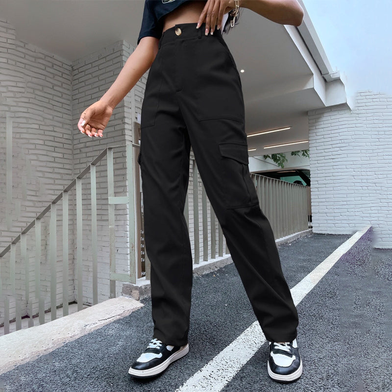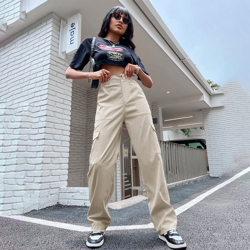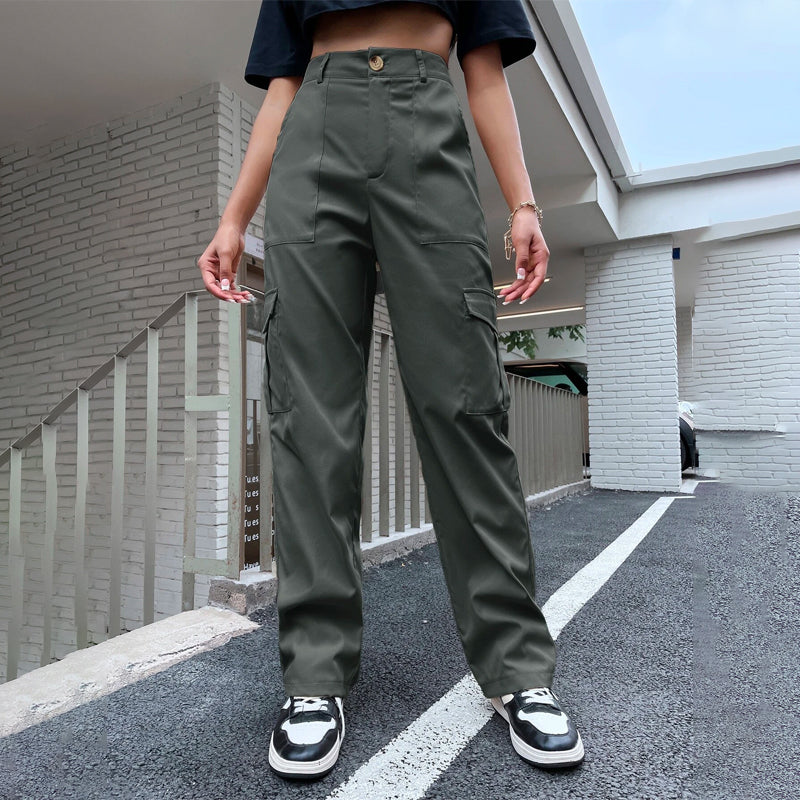 High Waist Flap Pocket Side Cargo Pants