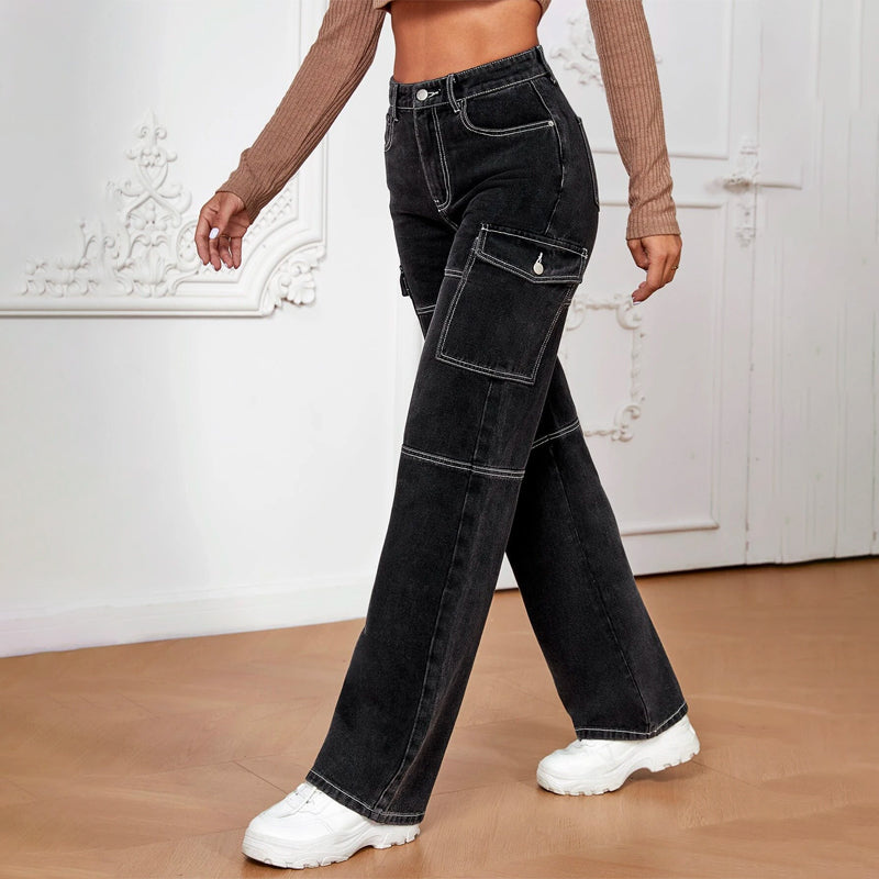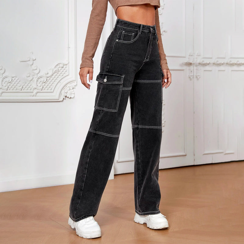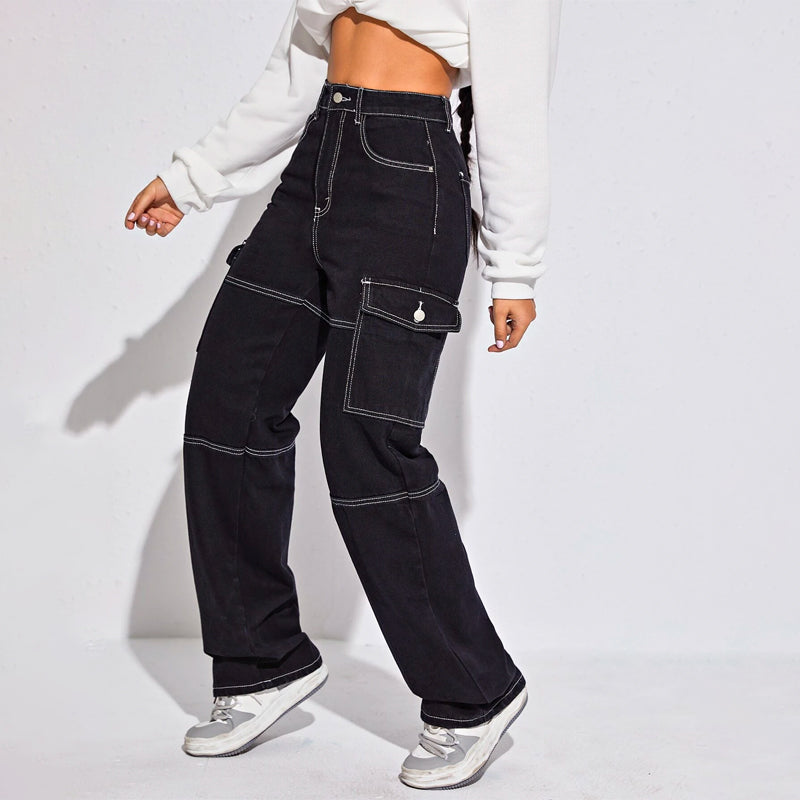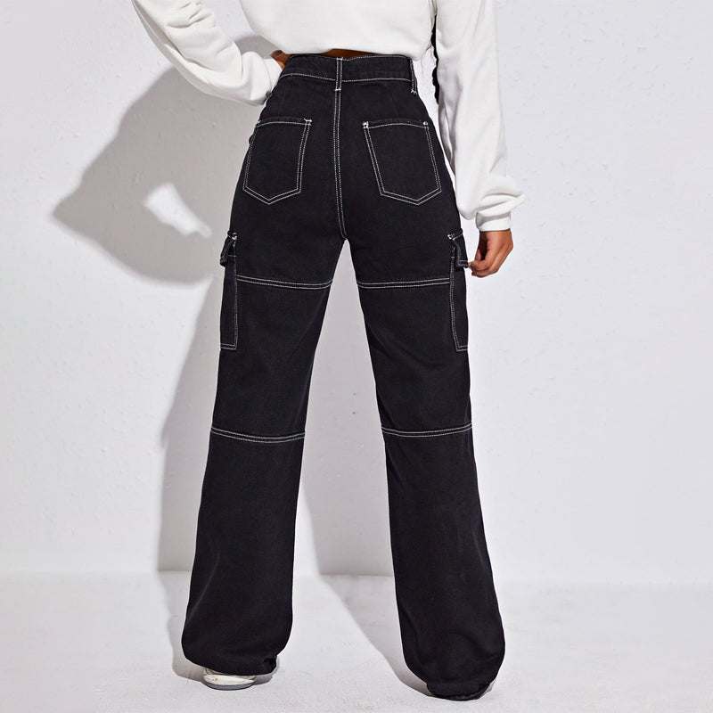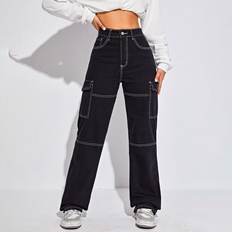 High Waist Flap Pocket Whip Stitch Jeans have a plain pattern and are made up of denim material giving them a very classy look. It features buttons, pockets, zippers, and a contrast binding. These jeans are made with a composition of cotton, polyester, and viscose giving them the finest texture.