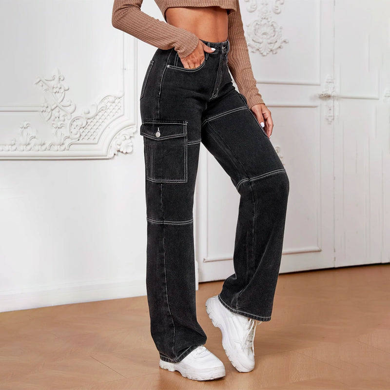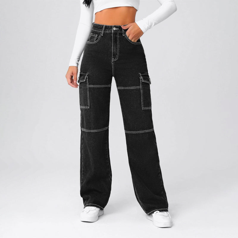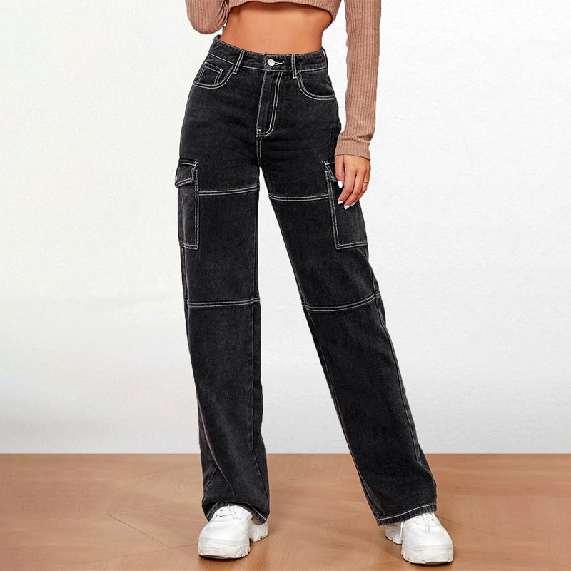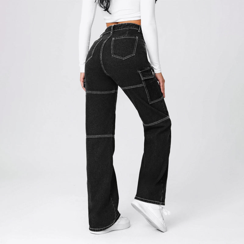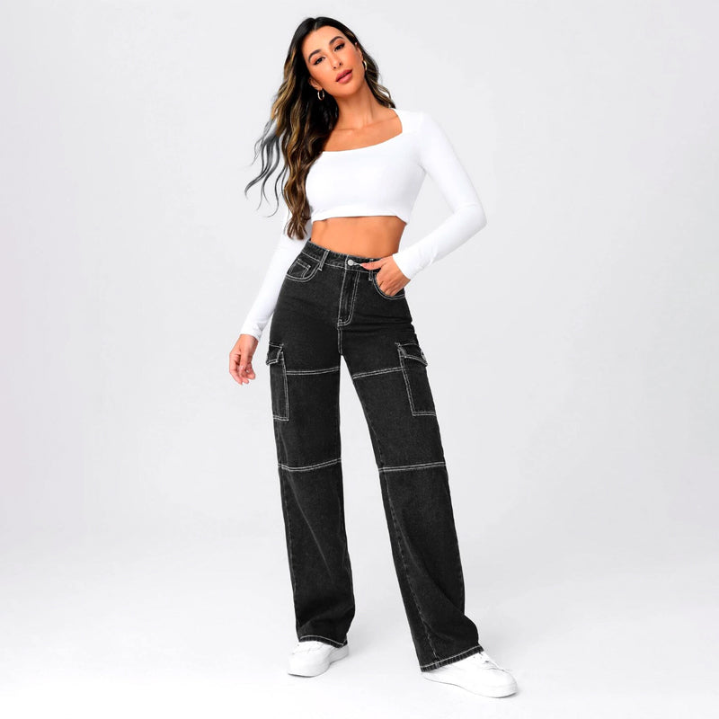 High Waist Flap Pocket Whip Stitch Jeans have a plain pattern and are made up of denim material giving them a very classy look. It features buttons, pockets, zippers, and a contrast binding. These jeans are made with a composition of cotton, polyester, and viscose giving them the finest texture.
