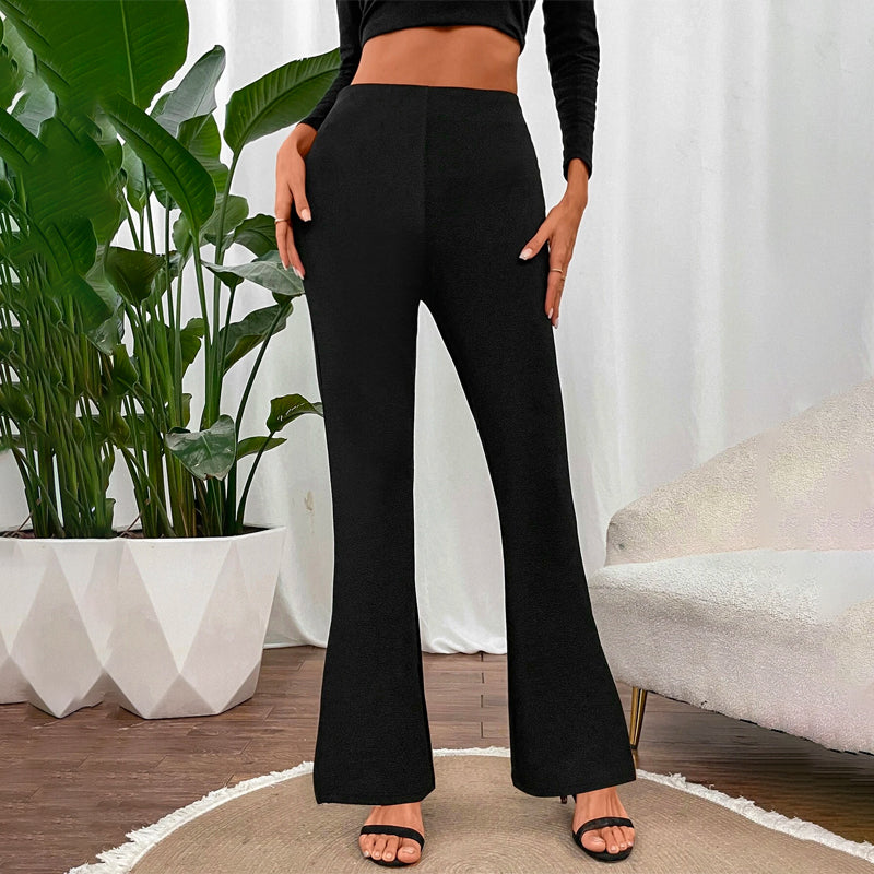 High Waist Flare Leg Pants are sure to have you looking and feeling amazing this season. Featuring flattering stretch fabric, they feature elastic waistbands and flare legs. Complete with a super snappy silhouette, these pants are ready for anything! The knitted fabric assures that along with giving you a flattering look these pants also give you a comfortable fit.