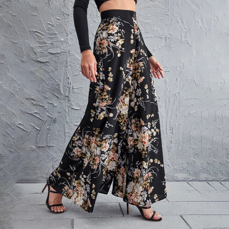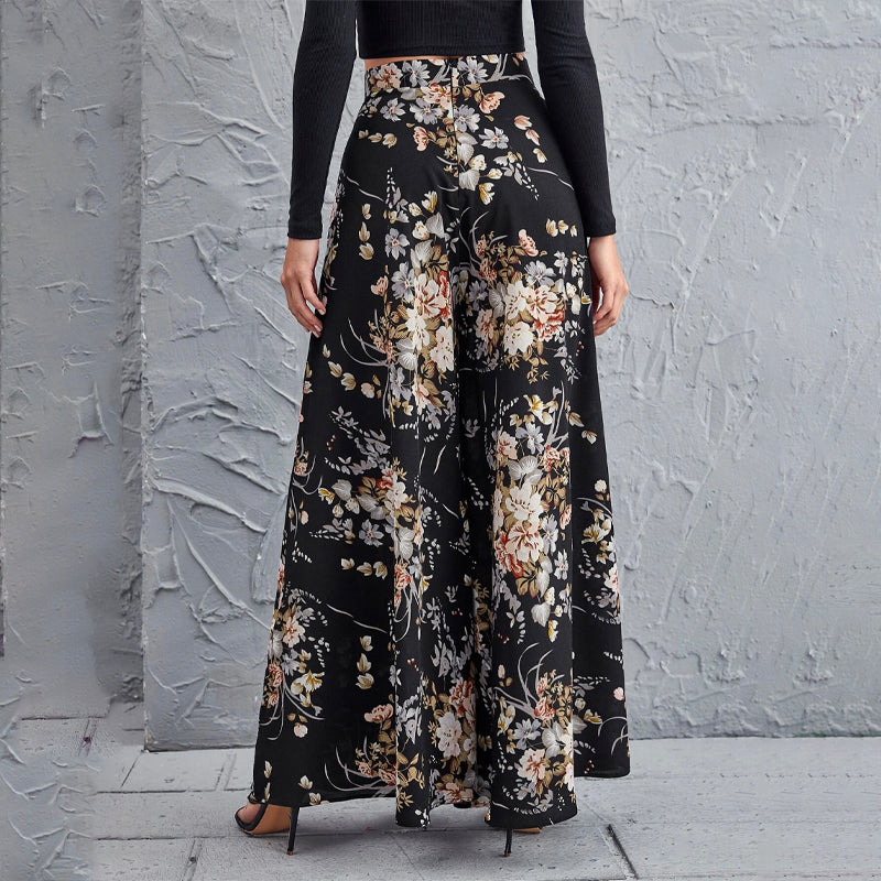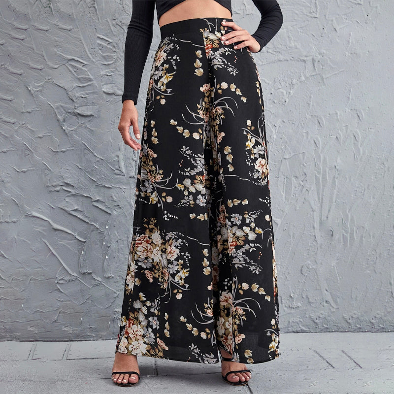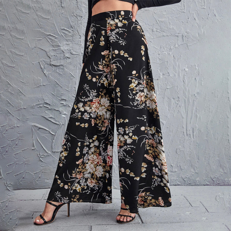 High Waist Floral Wide Leg Pants