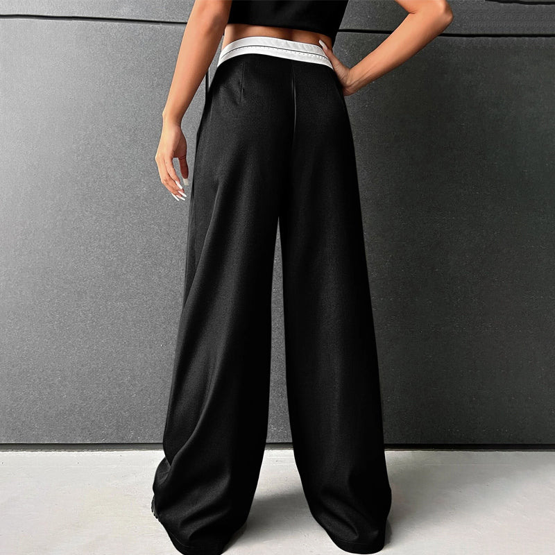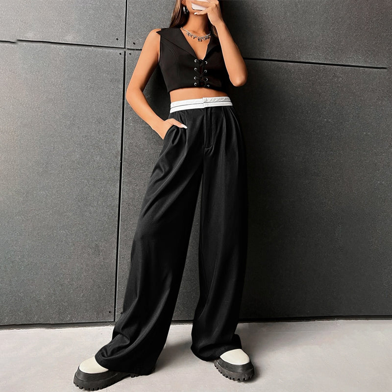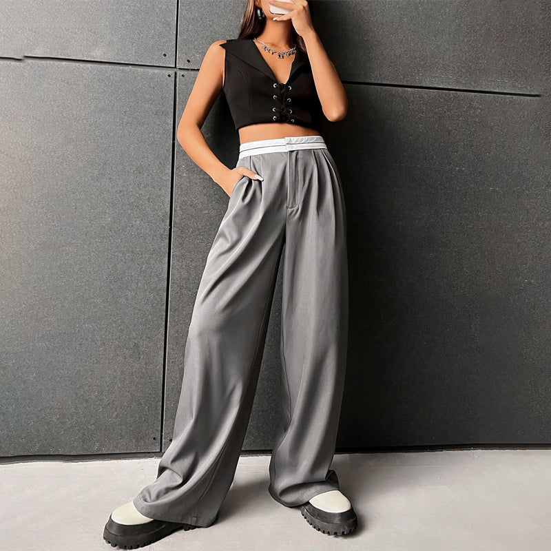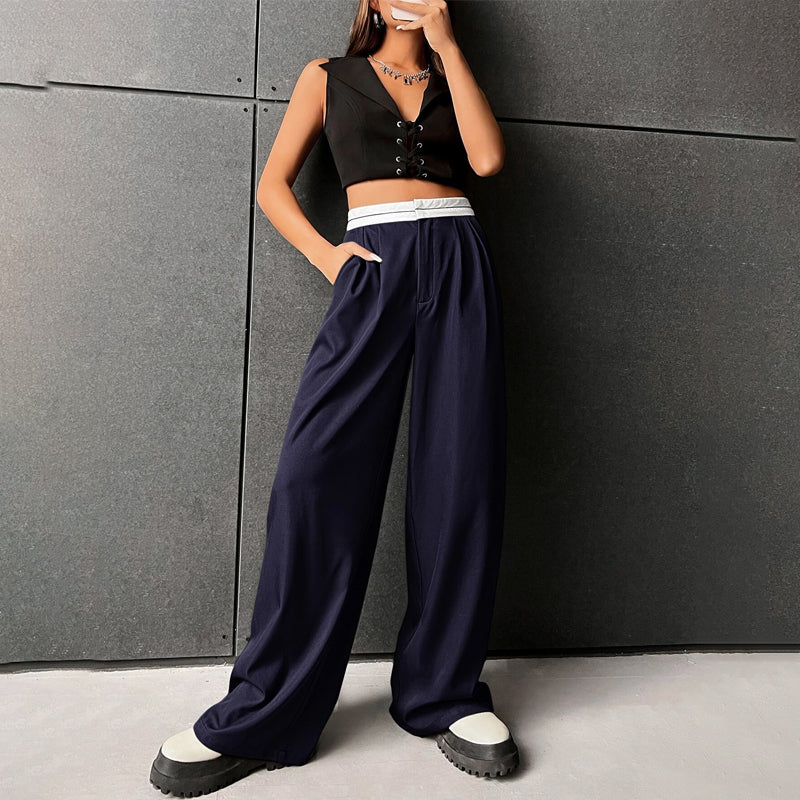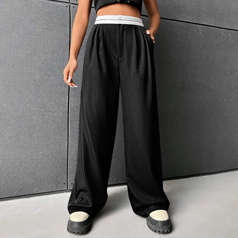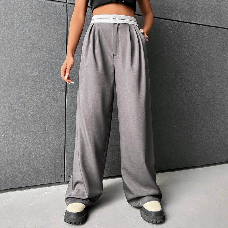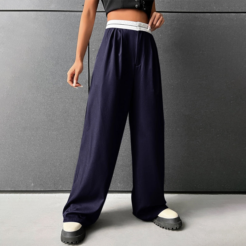High Waist Fold Pleated Colorblock Pants are made of polyester that is light and breathable, making them perfect for warm weather. These loose-fitting, long jeans are designed to hug the body from top to bottom, so you’ll feel incredibly comfortable wherever you decide to wear them.