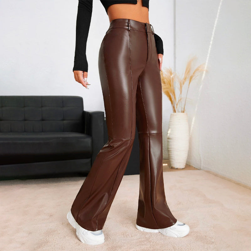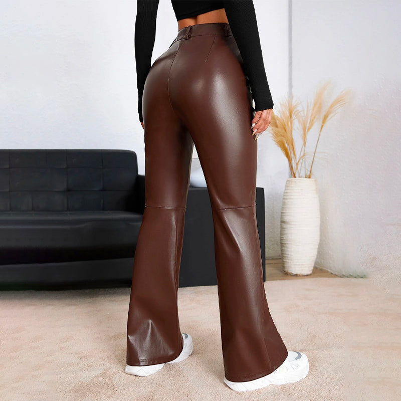 High Waist Leather Flare Leg Pants