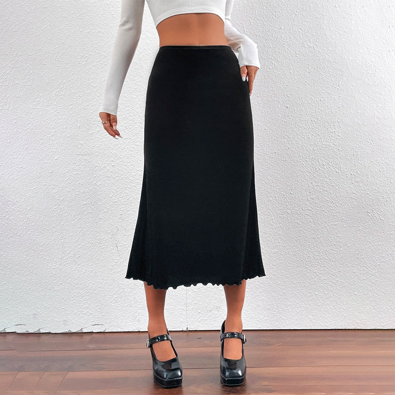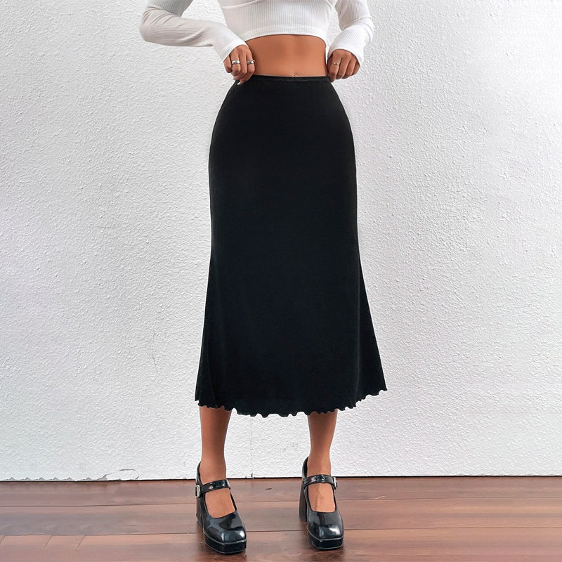 This High Waist Lettuce Trim Skirt is the perfect balance of girly and sophisticated. The high waistline and A-line silhouette create a flattering shape for any figure. The lettuce trim adds a fun and flirty touch to the skirt, while the lightweight fabric ensures comfort and breathability. This skirt is perfect for those days when you want to look put-together and stylish. Wear it with a simple top and sandals for an effortless summer look.