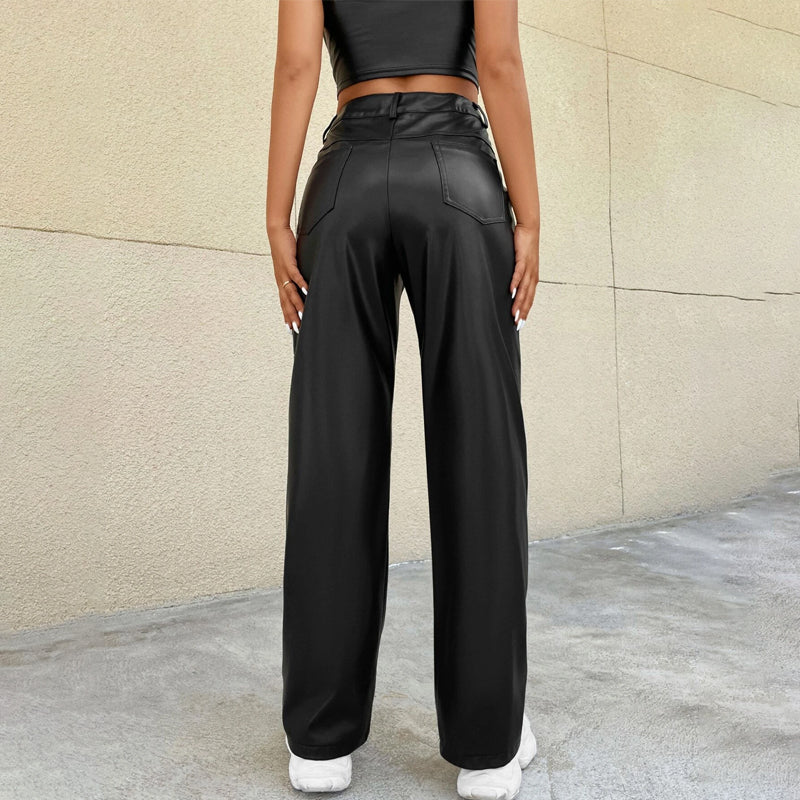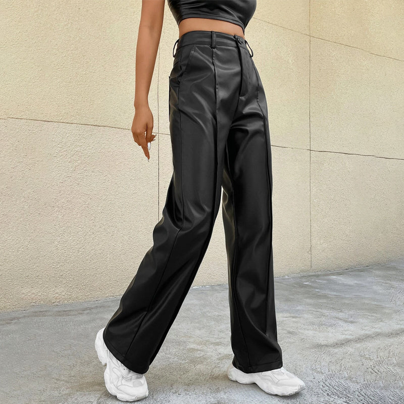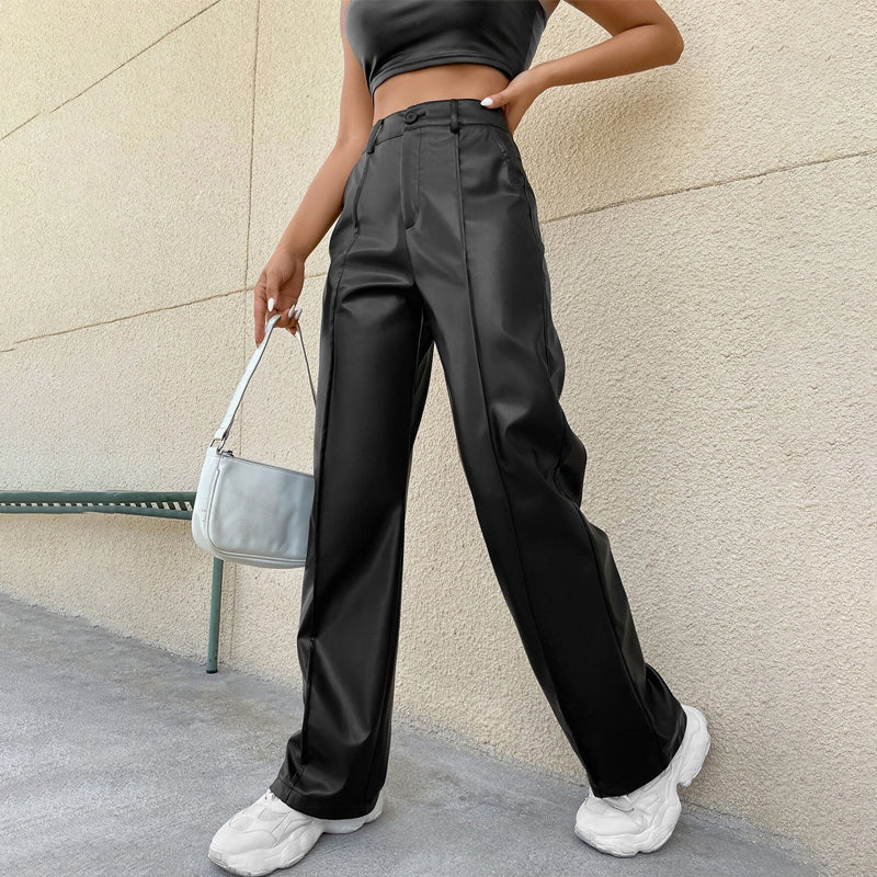 High Waist PU Regular Fit Straight Leg Pants