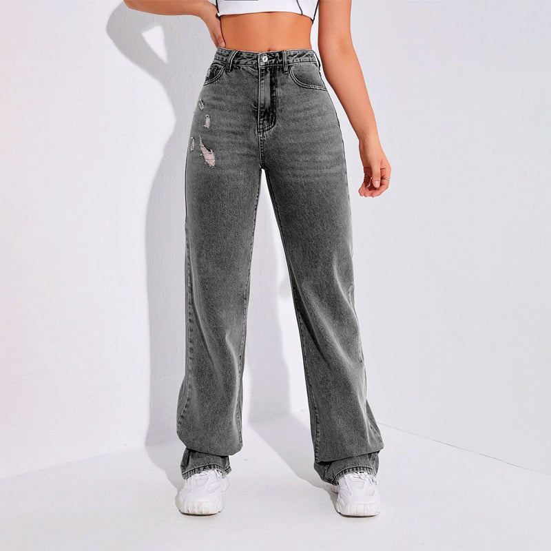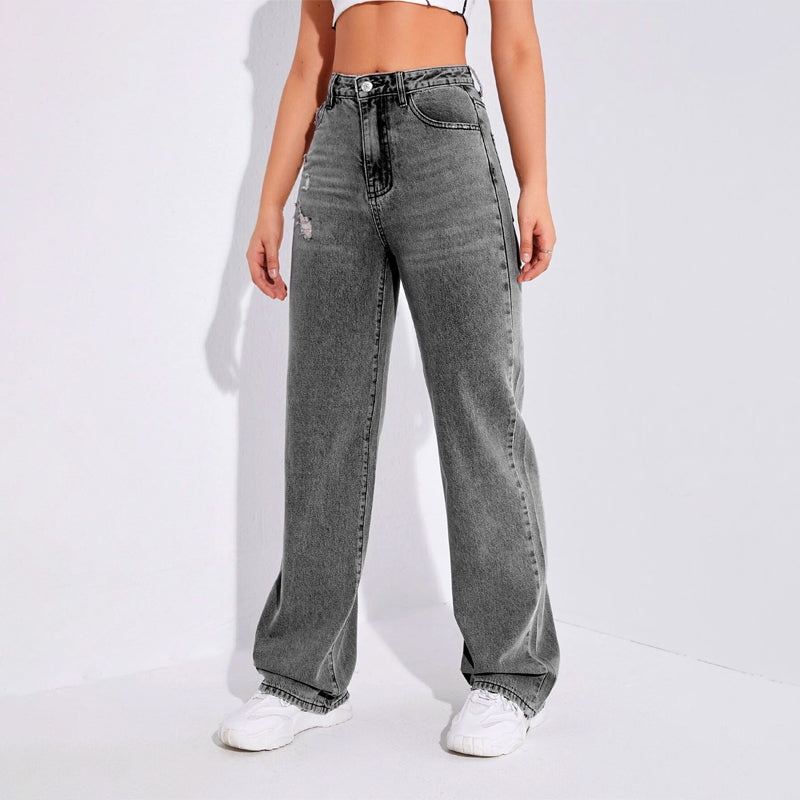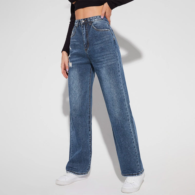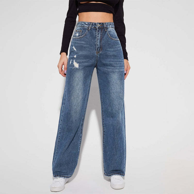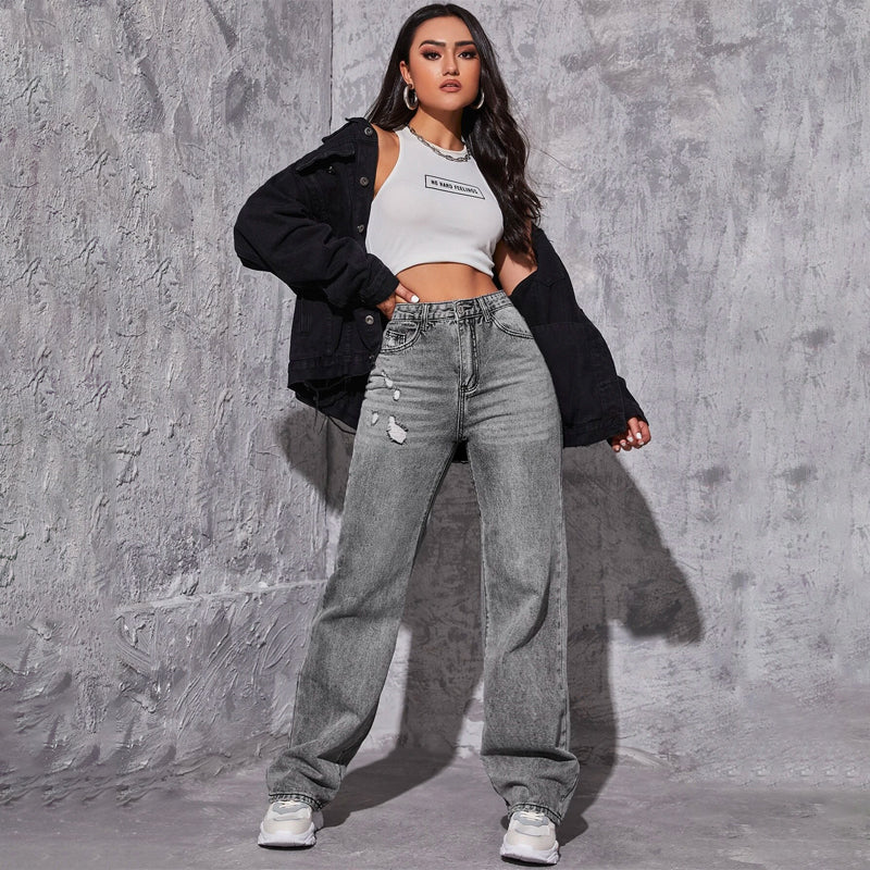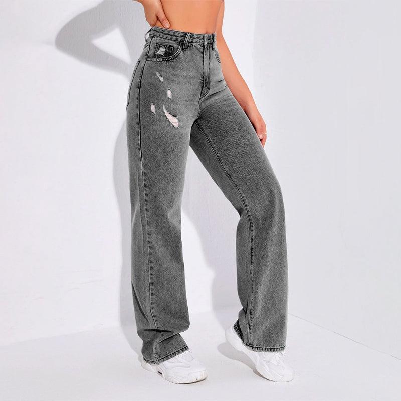 High Waist Ripped Long Jeans feature buttons, pockets, and zippers giving them a very casual but classy look. It has a waistline and a non-stretch fabric that makes it go well with anything you wear. It is easy to maintain, you can wash it in the machine without worrying about the color getting damaged.