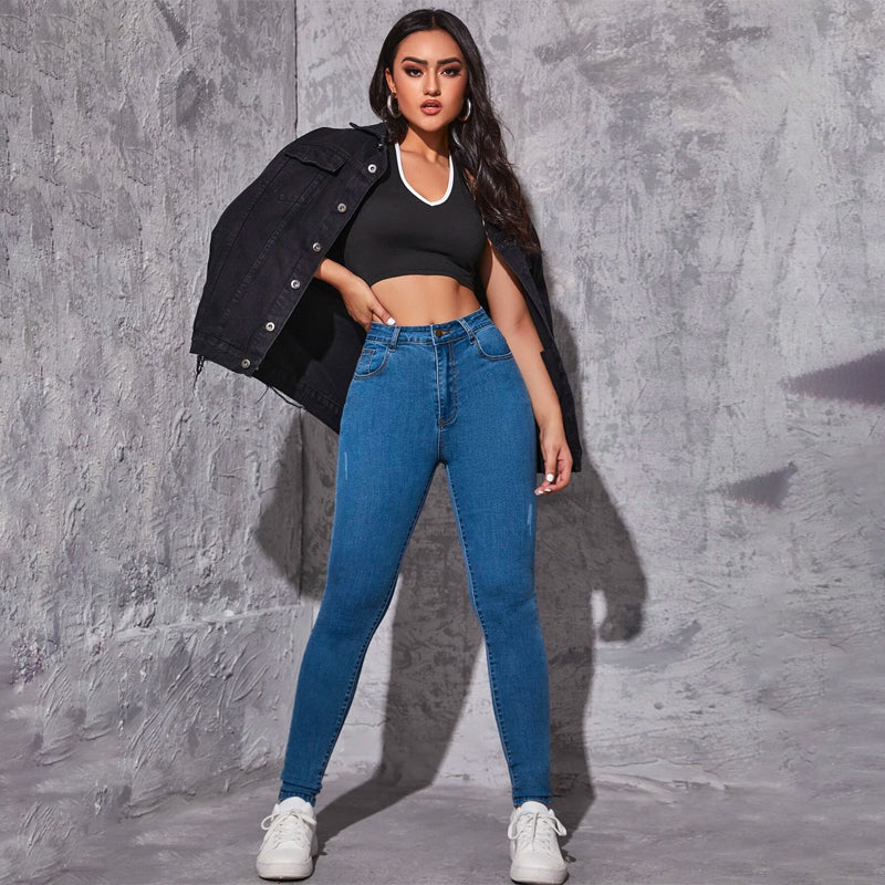 High Waist Ripped Skinny Jeans feature buttons, pockets, and zippers making them very convenient to wear. The cotton, polyester, and elastane composition give the jeans a fine texture. It is very easy to maintain, you can wash it easily in the machine while maintaining its quality.
