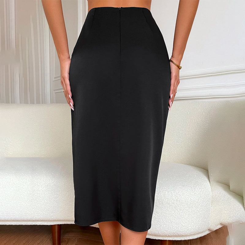 High Waist Ruched Asymmetrical Hem Skirt
