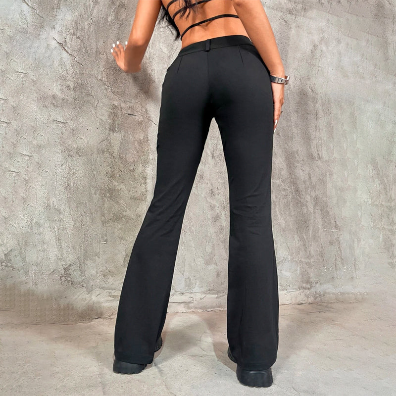 Looking for a stylish and comfortable pair of pants? The High Waist Seam Front Flare Leg Pants are a great option. The wide leg makes it easy to move in, while the button and zipper fly offer easy dressing. The zipper fly and drop waist add a unique look to these pants along with giving them comfort.