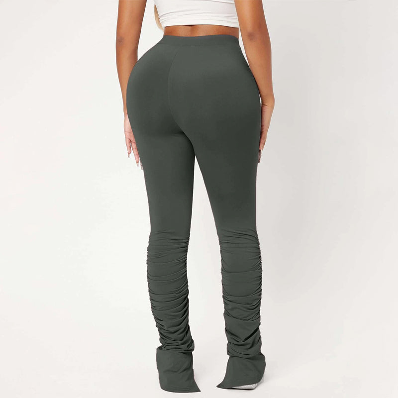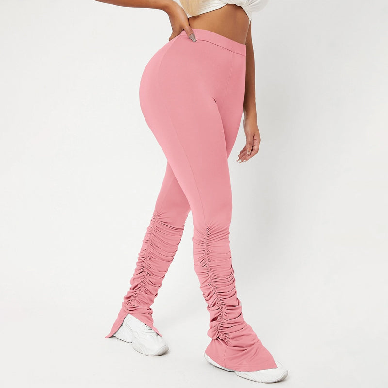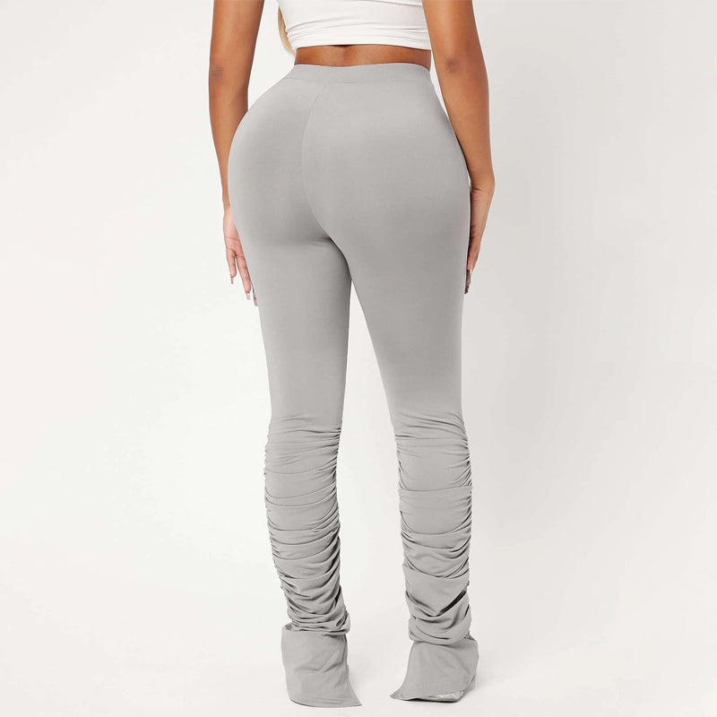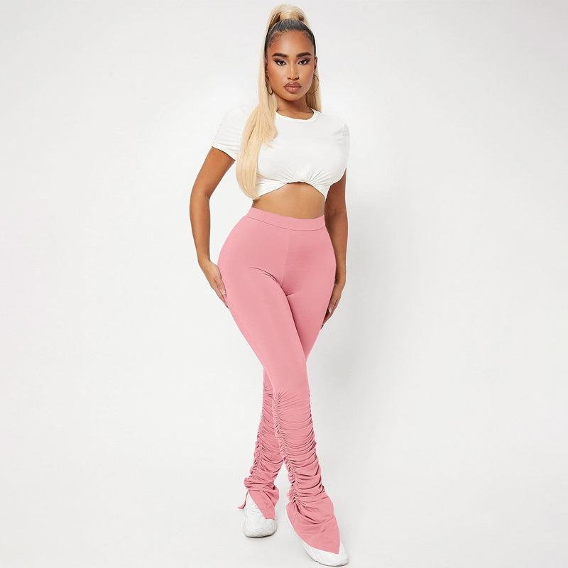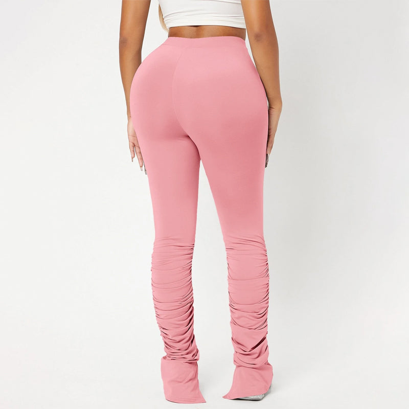 High Waist Skinny Stacked Pants are made from a lightweight, stretch fabric that feels comfortable and thermal. The high-waist pants give you a great style as they're versatile enough to be worn with shoes or boots. They also have an elastic waistband that provides an adjustable fit and ruched details which adds flare to these pants.