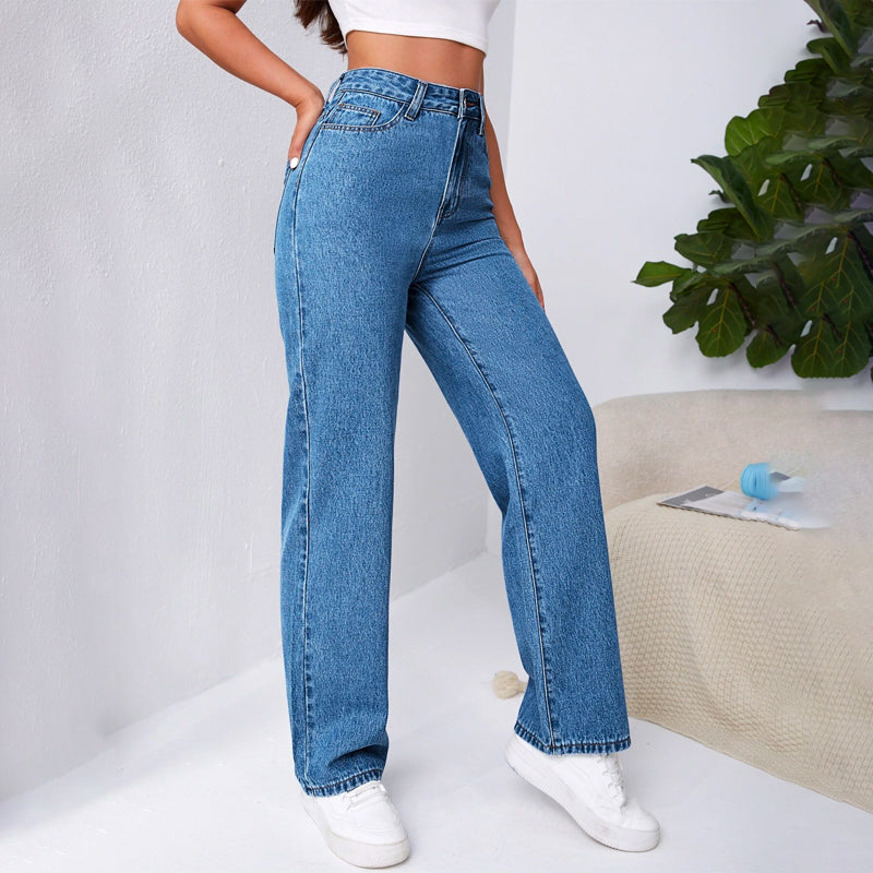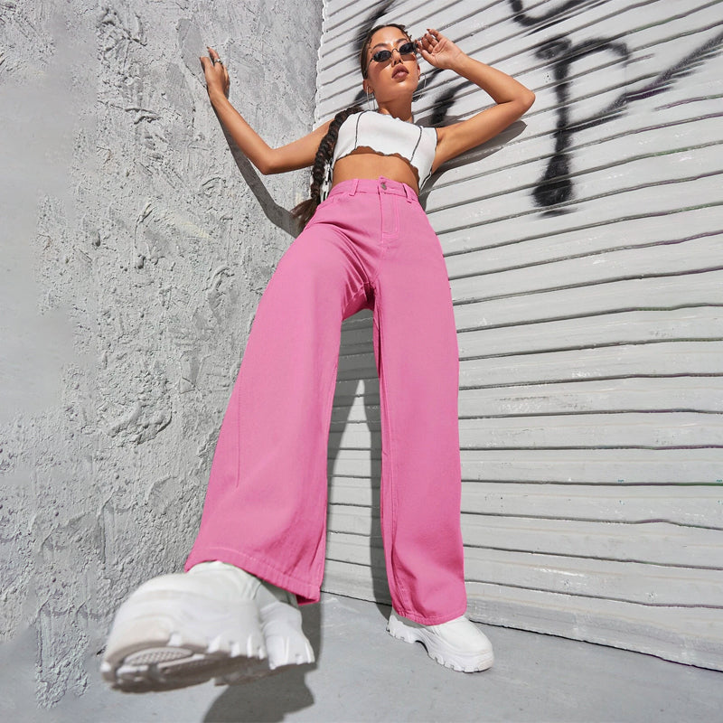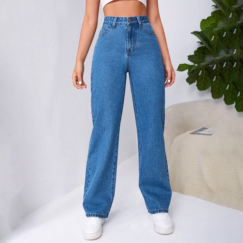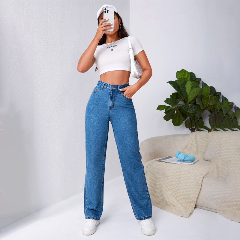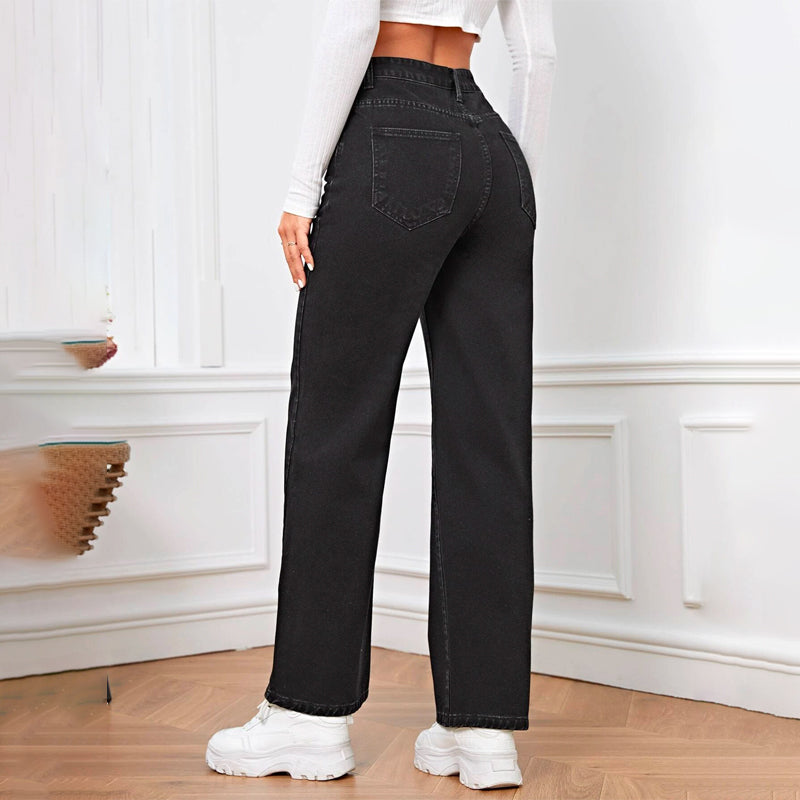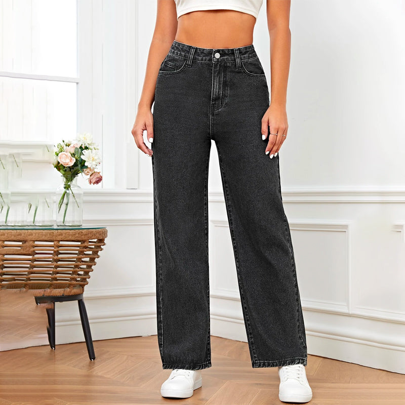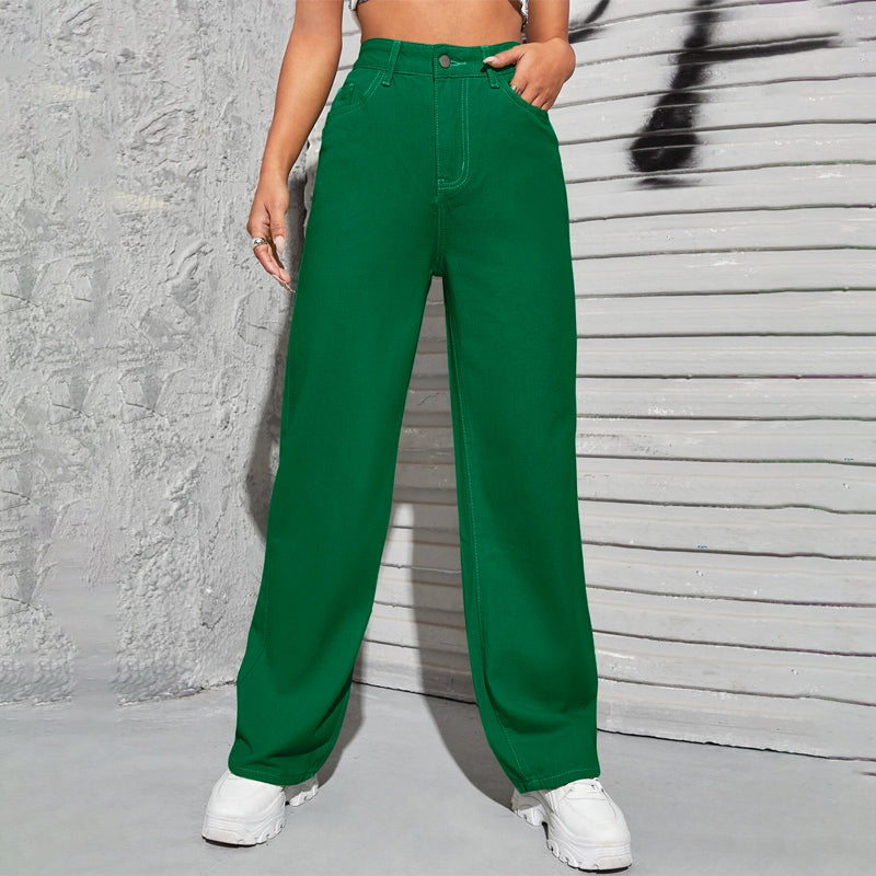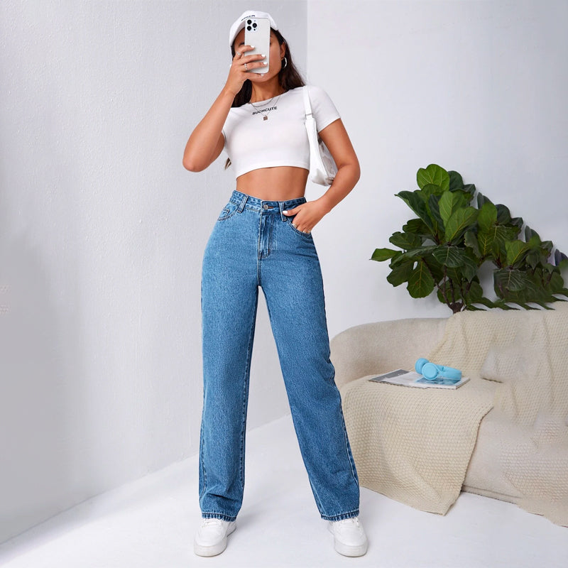 High Waist Slant Pocket Easy Wear Jeans have a plain pattern and a high waistline. It can be maintained very easily, you just need to wash it in the machine. The composition of cotton, polyester, and viscose gives it a fine texture. These jeans go well with anything of your choice.
