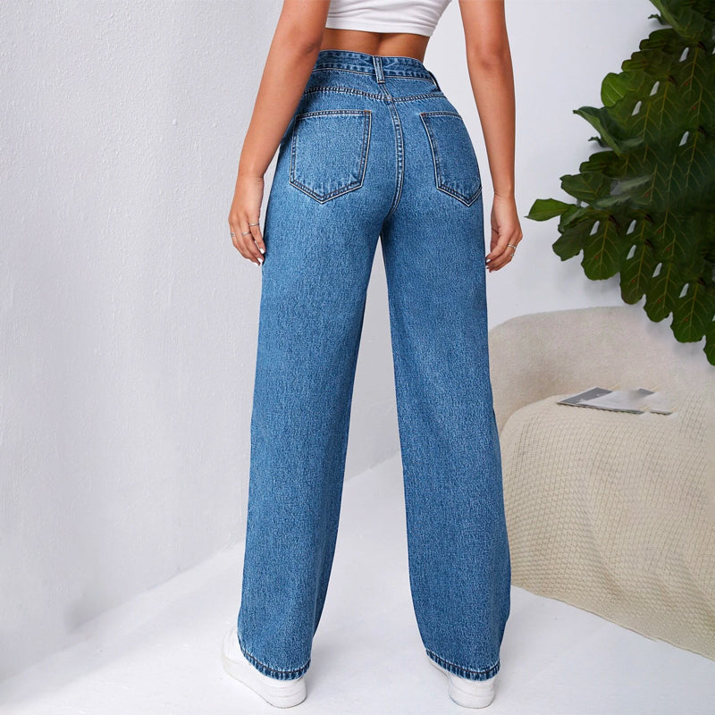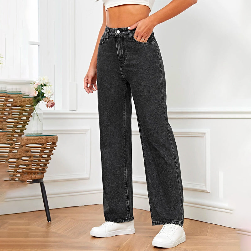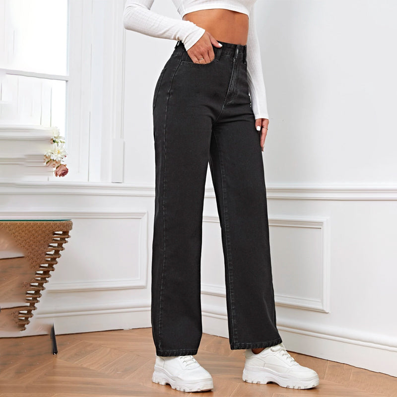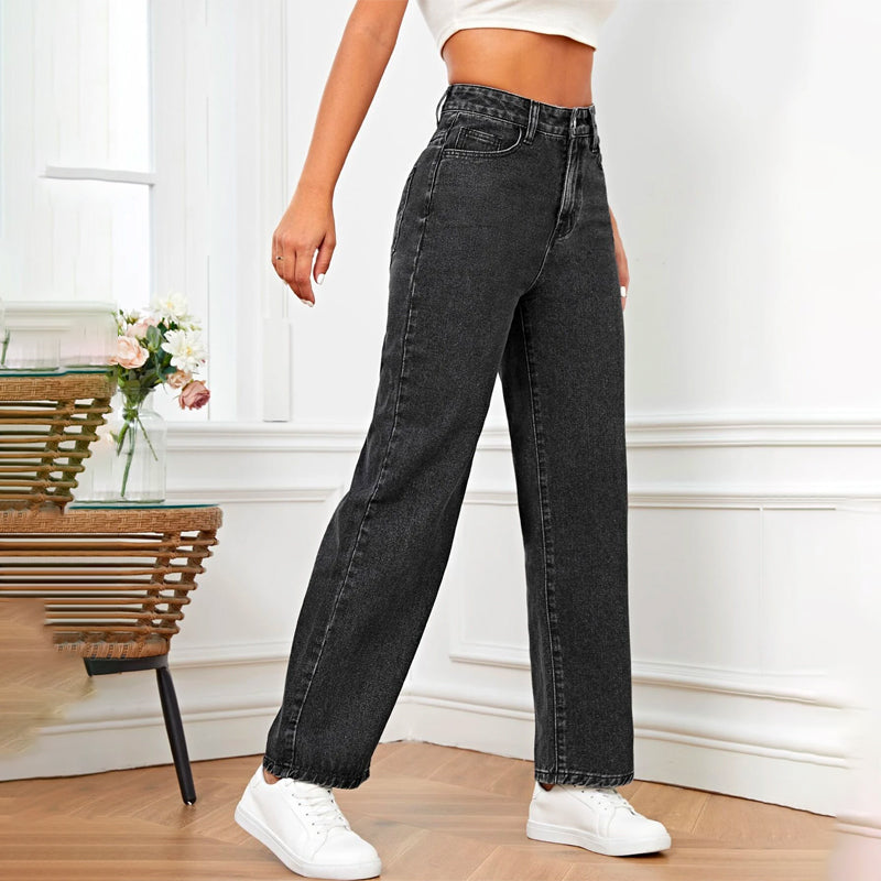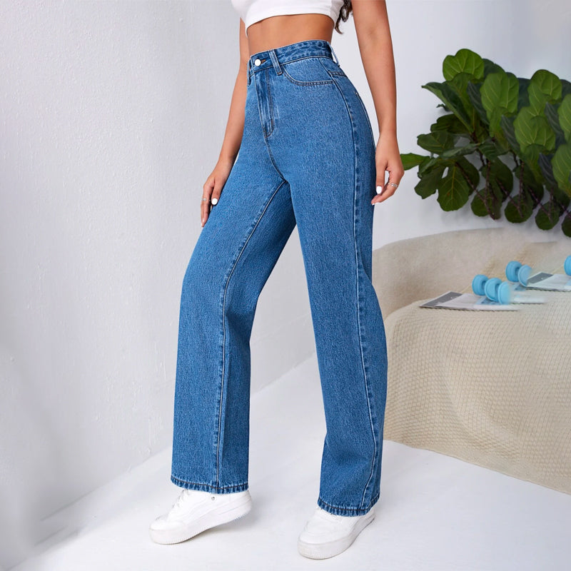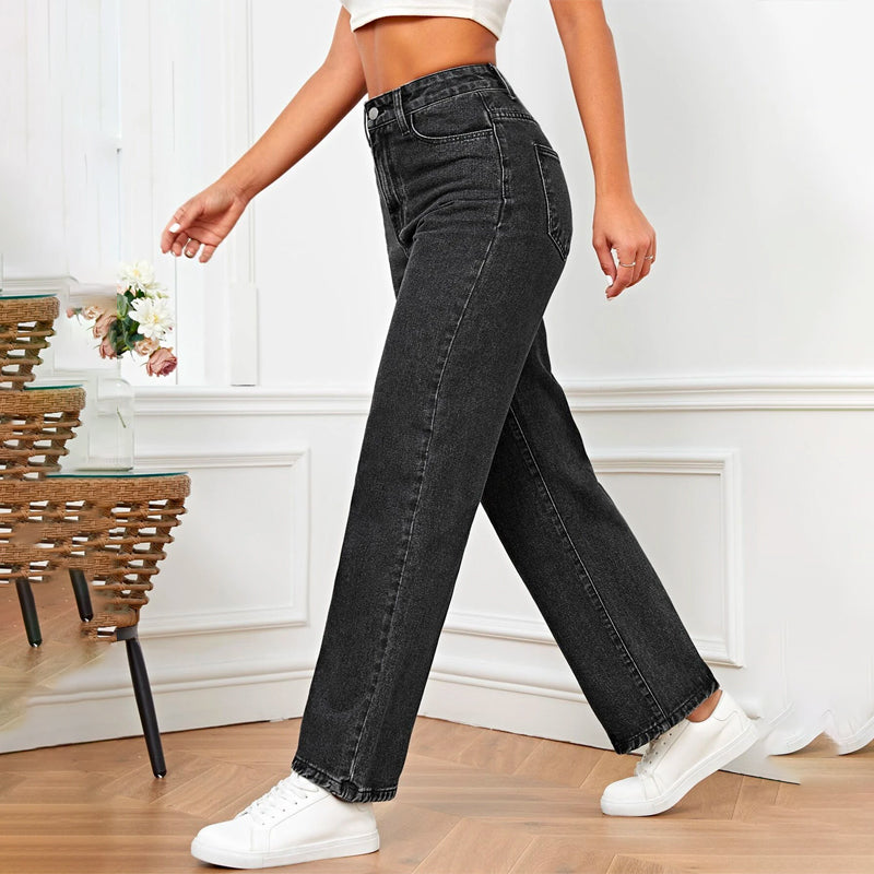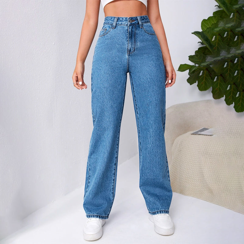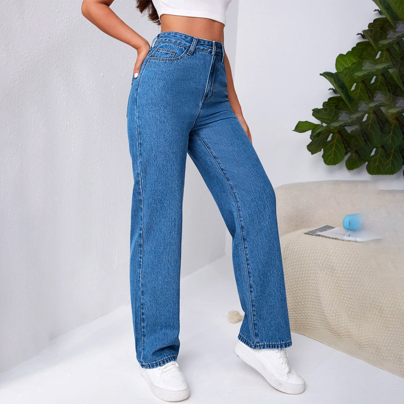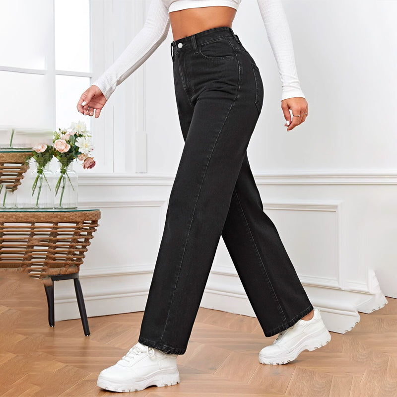 High Waist Slant Pocket Easy Wear Jeans have a plain pattern and a high waistline. It can be maintained very easily, you just need to wash it in the machine. The composition of cotton, polyester, and viscose gives it a fine texture. These jeans go well with anything of your choice.