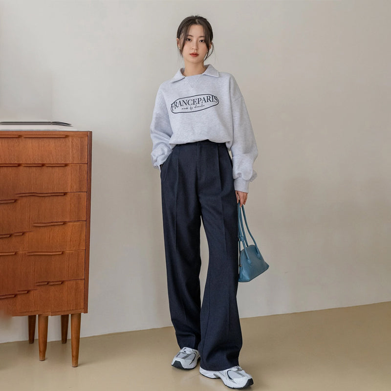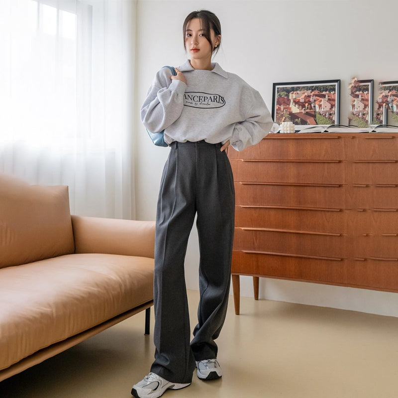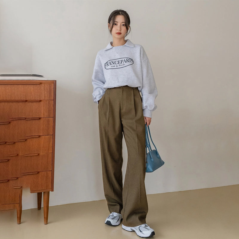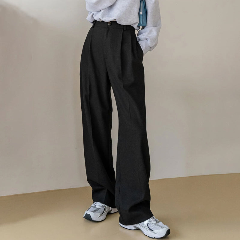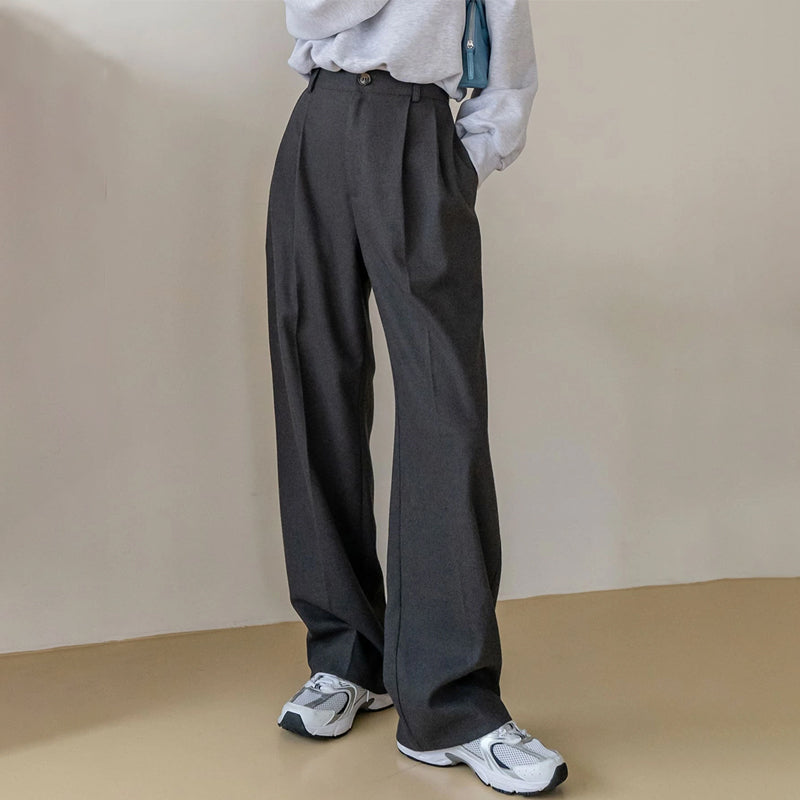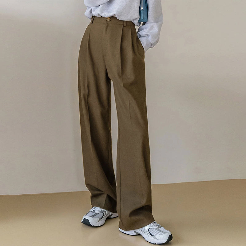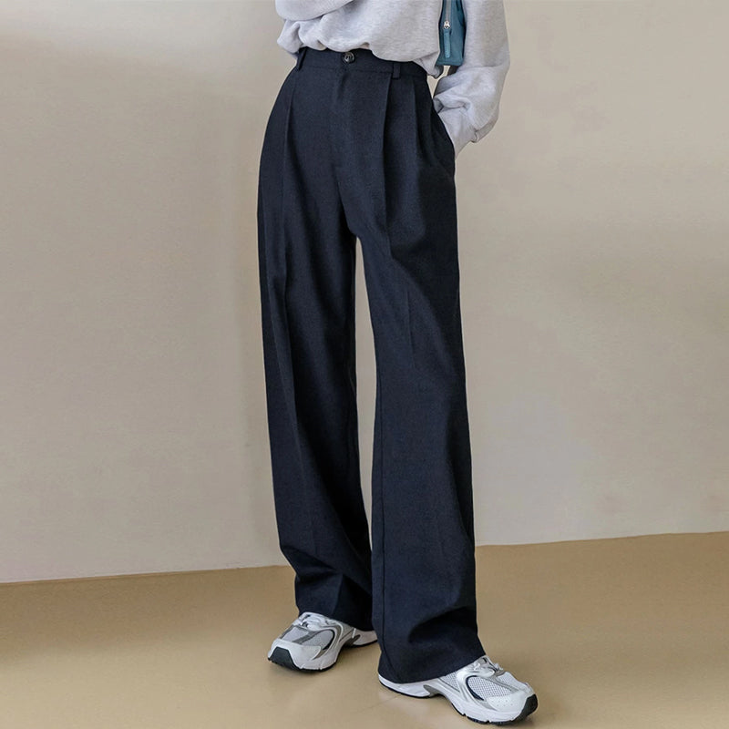 High Waist Slant Pocket Fold Pleated Pants