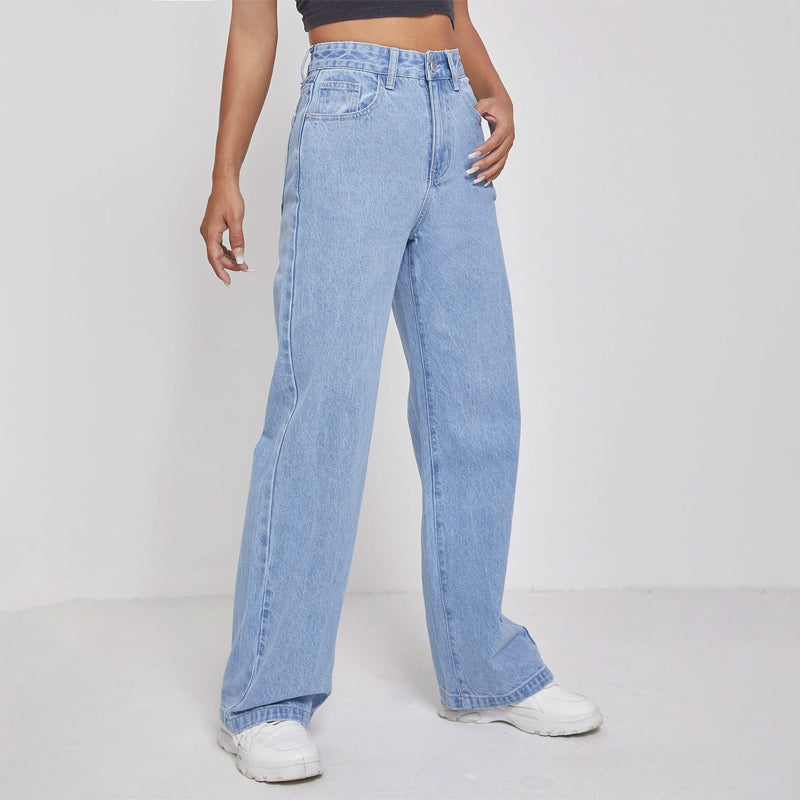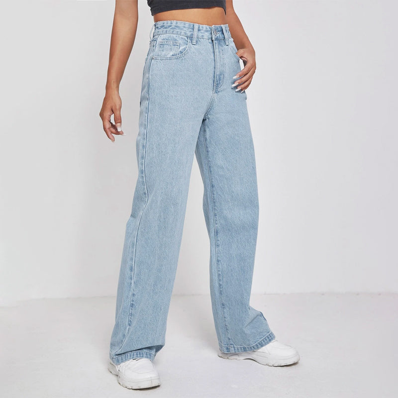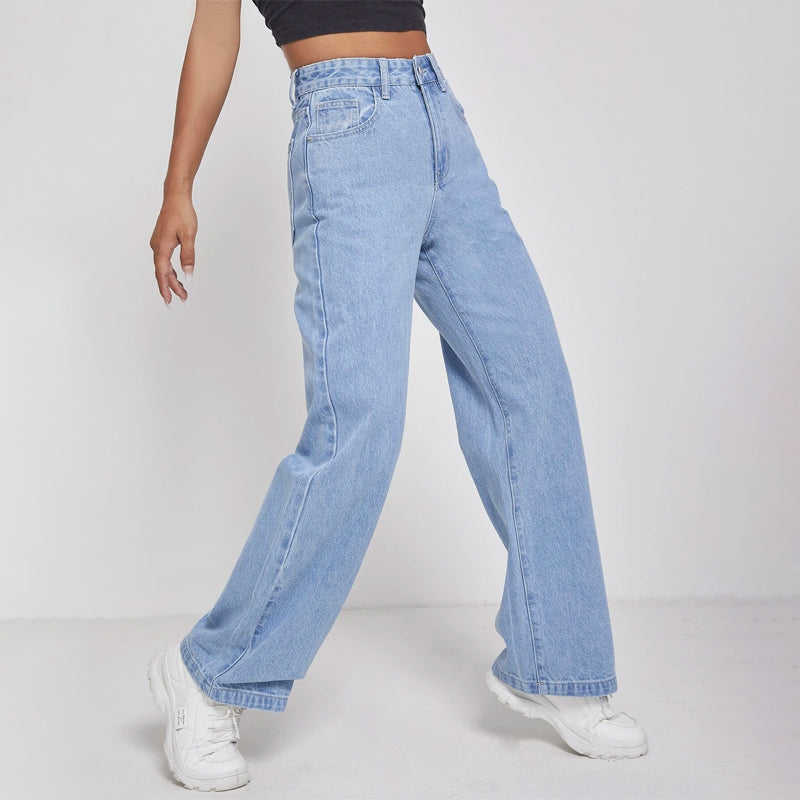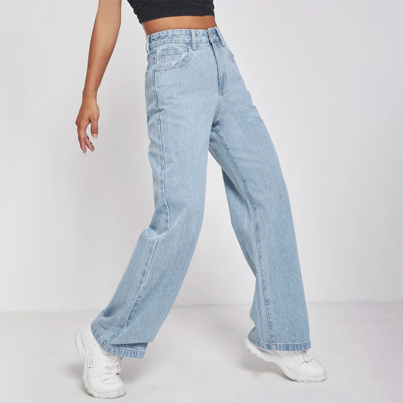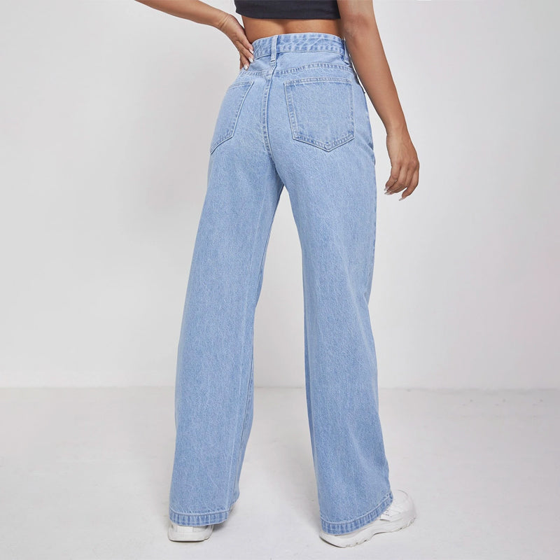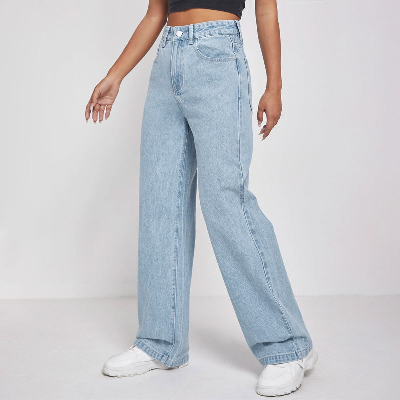High Waisted Zip Fly Wide Leg Jeans