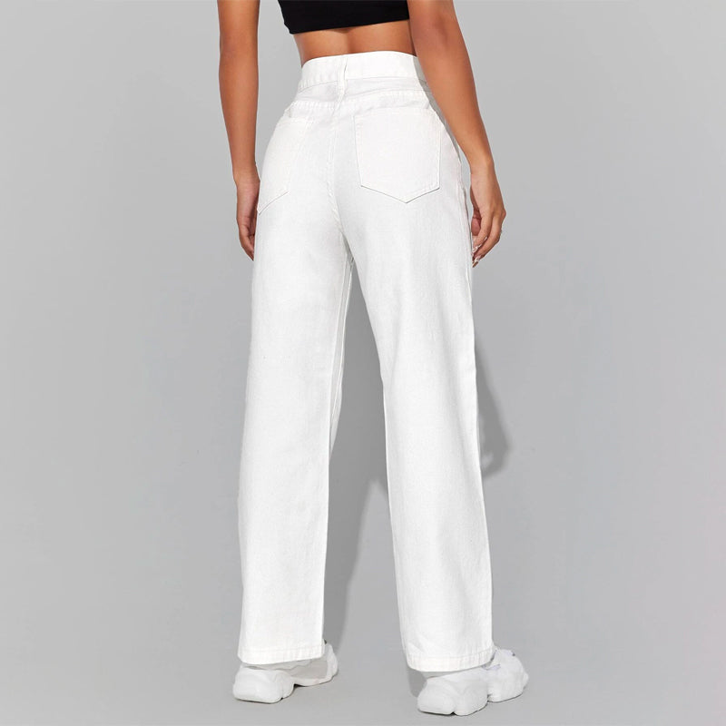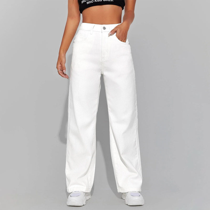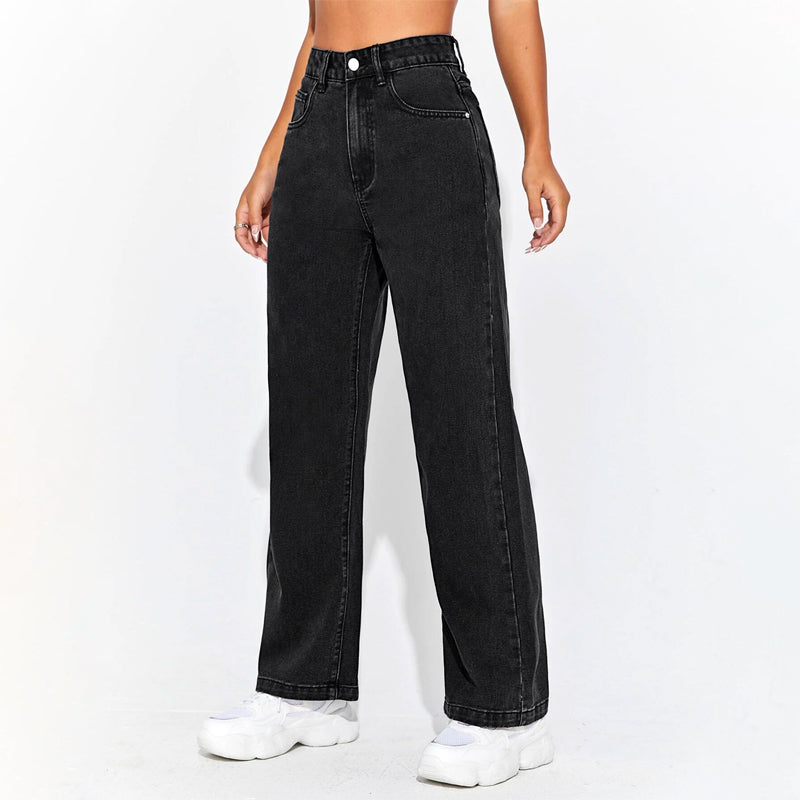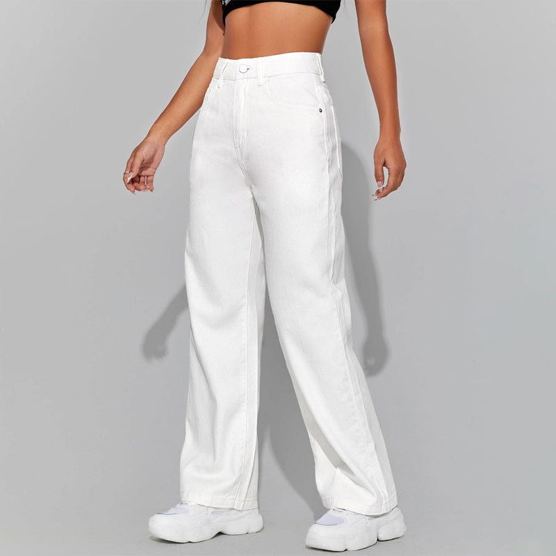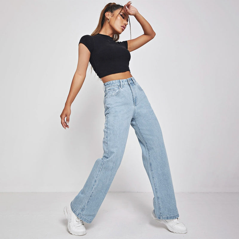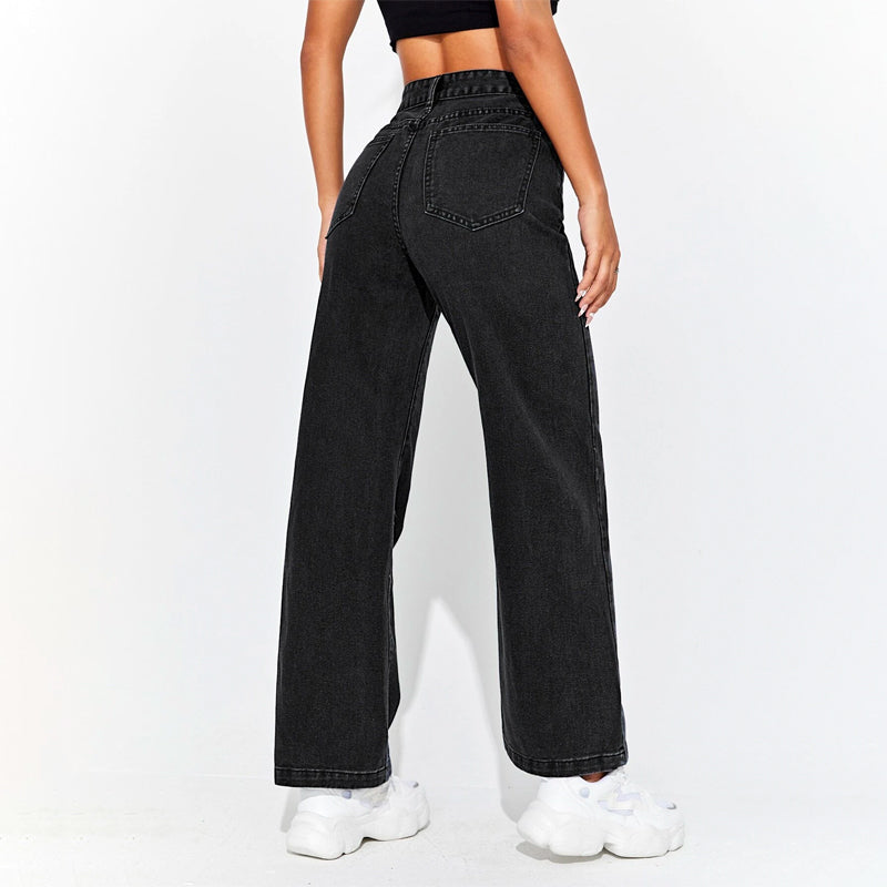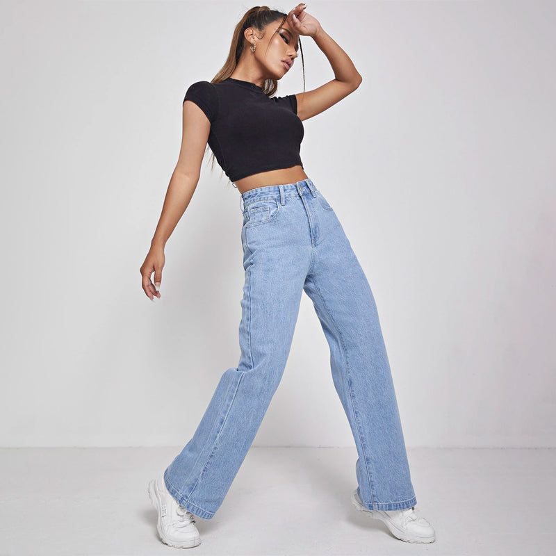 High Waisted Zip Fly Wide Leg Jeans