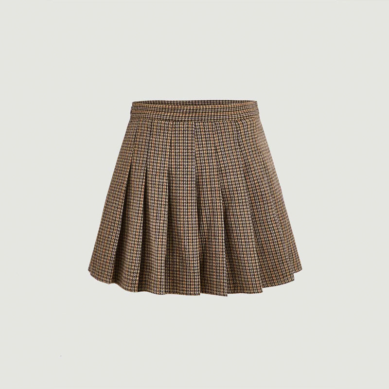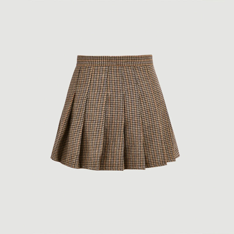 Houndstooth Pleated Skirt