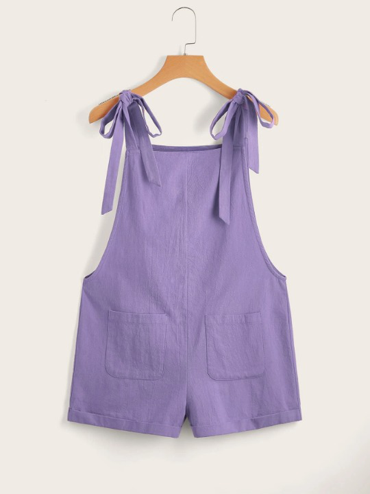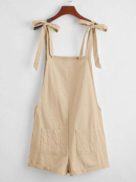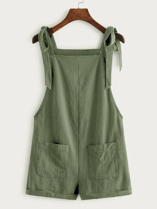 Knot Strap Pocket Patched Pinafore Romper