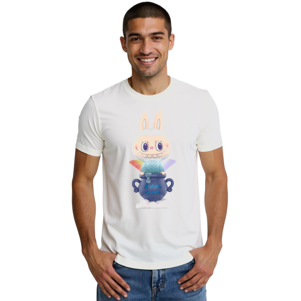 The Labubu Graphic T Shirt with Aquarius Bunny in Cauldron with Aquarius Bunny in Cauldron captures visual storytelling through a whimsical layout. It blends a inspired scene with symbolic star details, turning daily style into subtle expression. With soft clouds, a structured cauldron, and radiant wings, this piece presents a layered design full of character and visual variety.