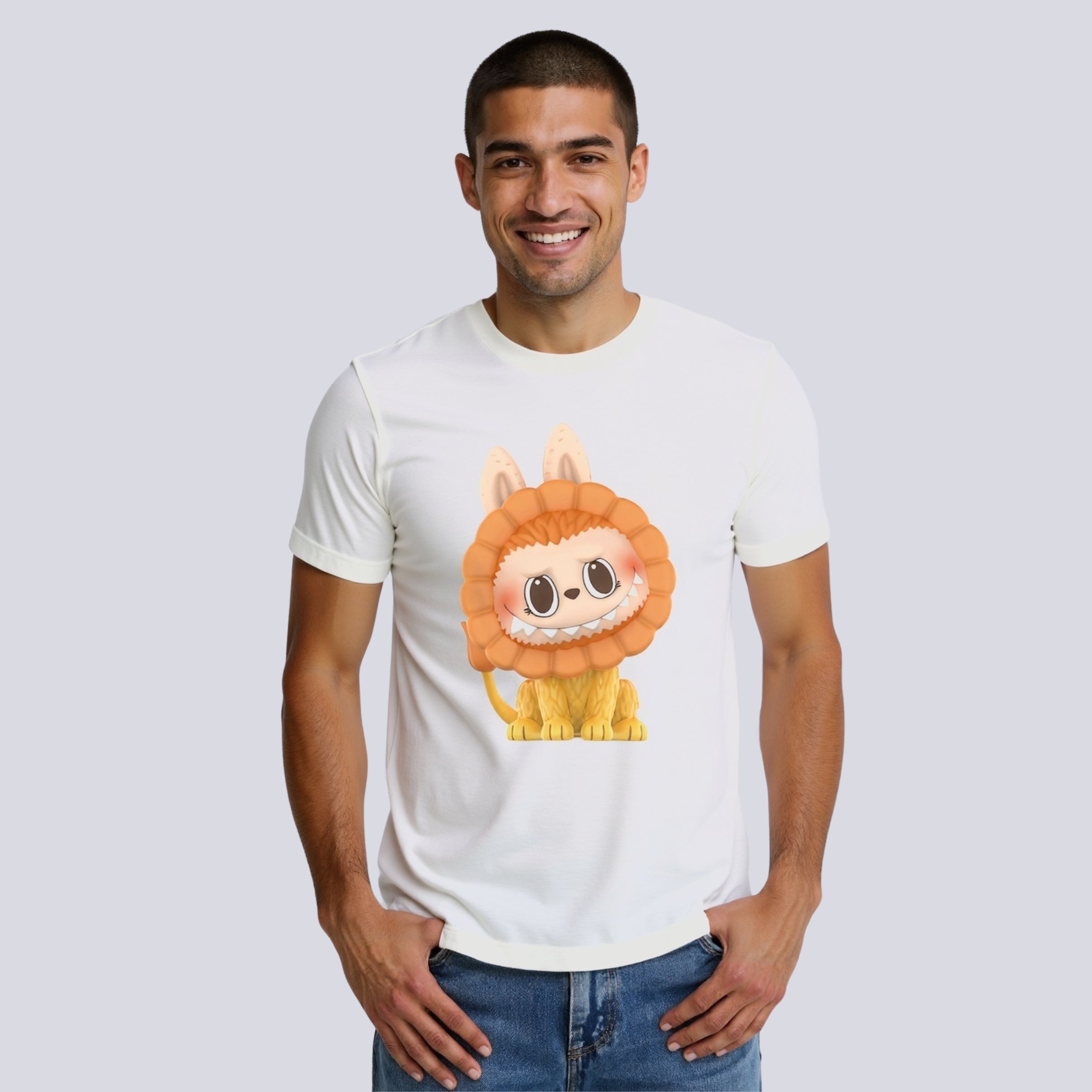 The Labubu Bunny Lion Tshirt adds imagination to your daily look. It features a bunny wearing a lion suit, shown in mid-moment with rounded paws and an upright stance. This central print carries a quiet story and strong visual presence. It’s built for fans of Fable character shirts. The print stands out while the structure supports all-day casual wear. Whether indoors or heading out, this shirt adds personality without added layers.