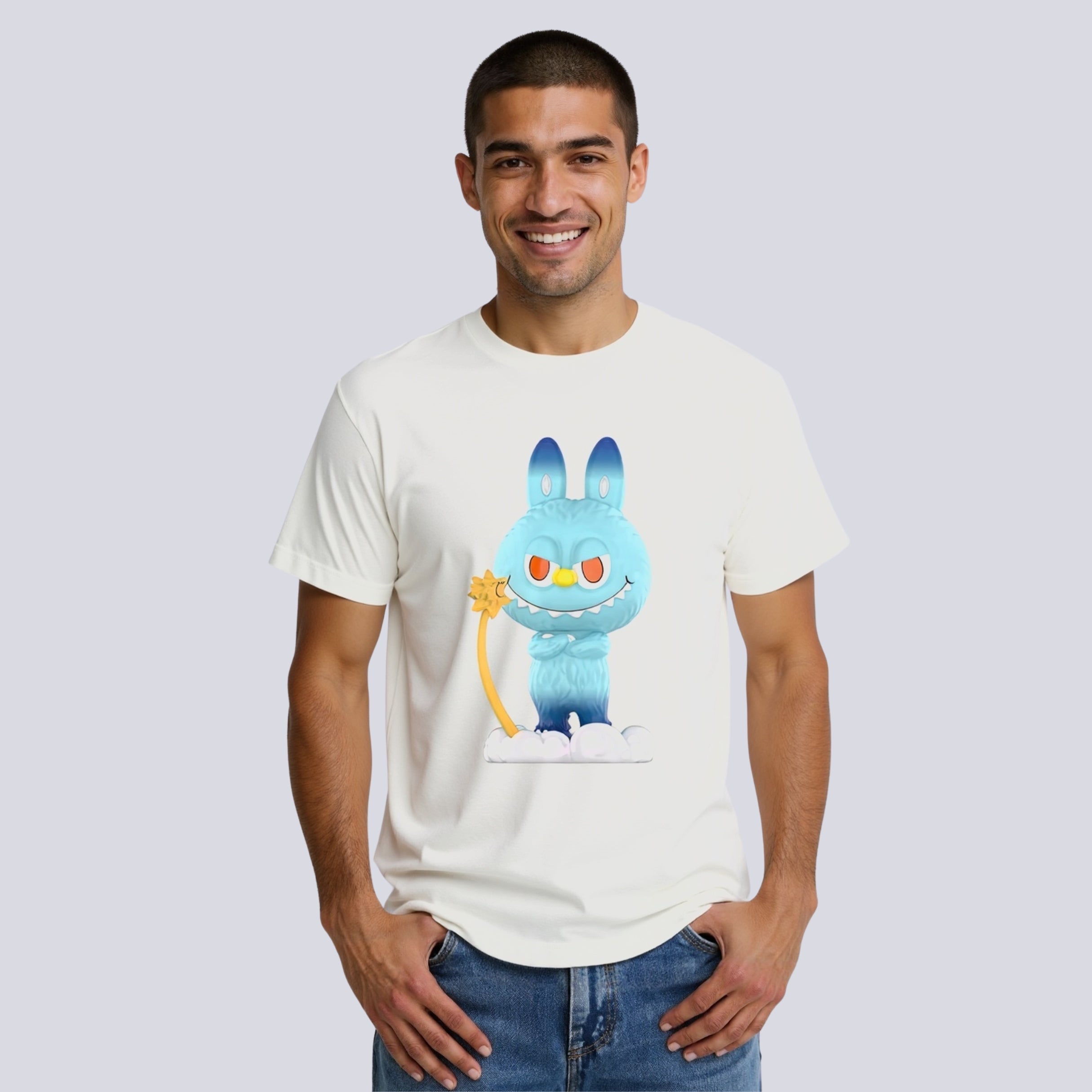 The Labubu Cloud Bunny T-Shirt is where style meets storytelling. From the character’s clever stance to the cloud base and playful wand, each detail is drawn with purpose—bringing humor, charm, and design together. This is more than a printed shirt—it’s wearable character art.